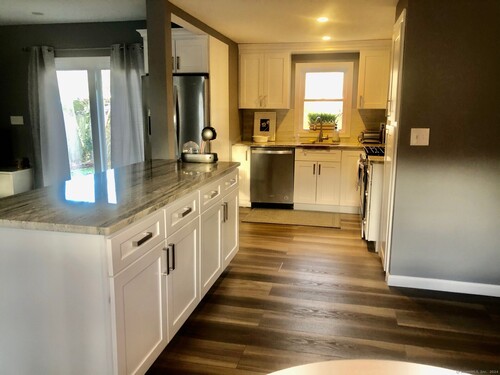 Pride of ownership in quiet Candlewood Lake community setting. This ranch style home is on a level lot with several parking spaces on a paved driveway. Newer White Kitchen cabinets and all stainless steel appliances as well as a kitchen island and all vinyl plank flooring. The home has 1.5 bathrooms, a washer and dryer and a wall unit air conditioner. The bedrooms are fully carpeted. The yard has a concrete patio and a rich relaxing lawn to enjoy at your leisure. Additionally, there are two sheds available. Property is located very close to shopping, restaurants and Danbury hospital Close to Federal Road and I 84 as well.