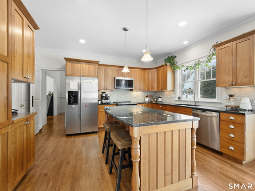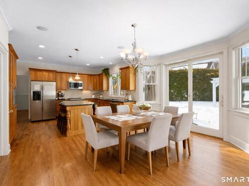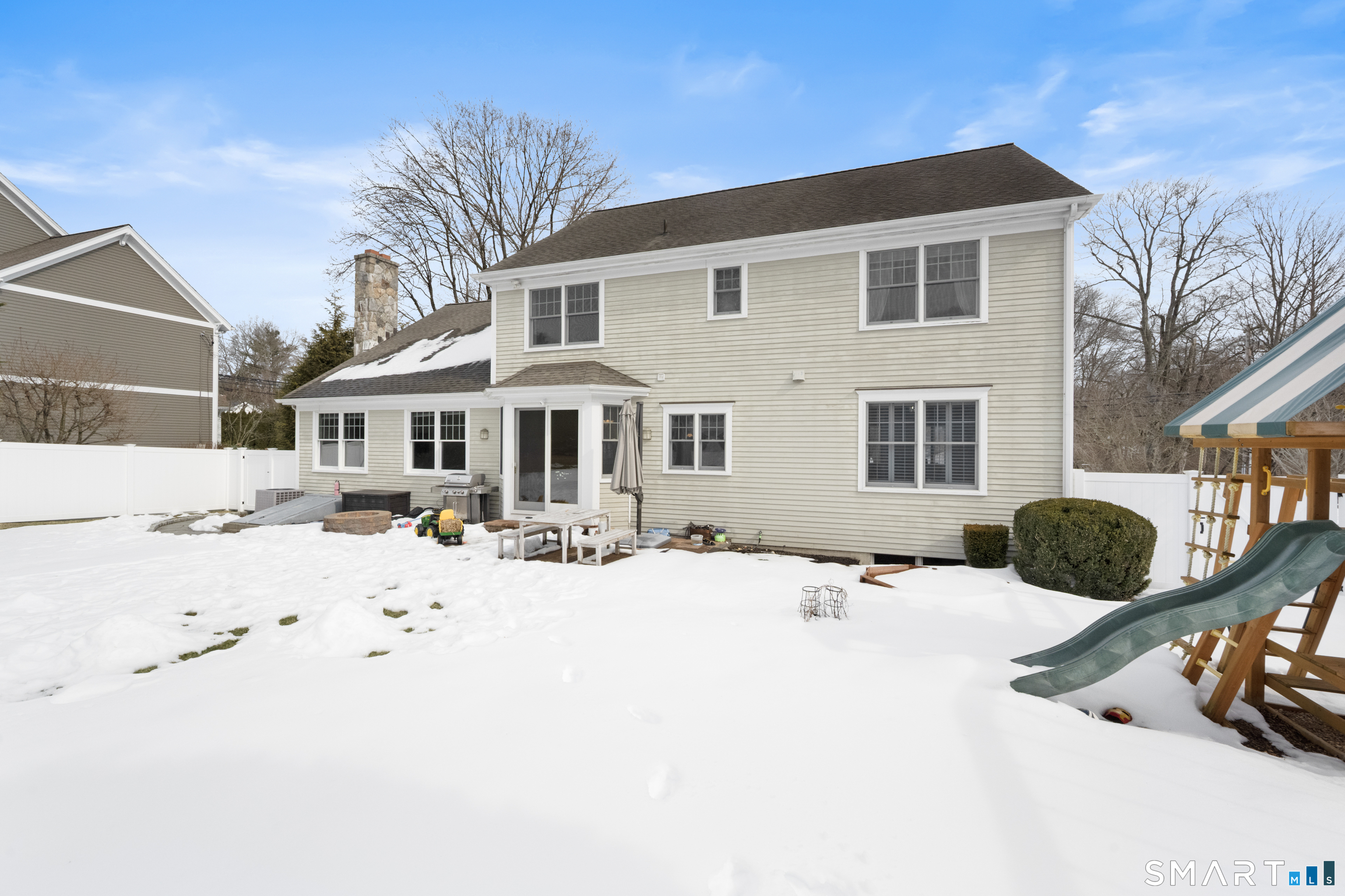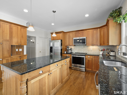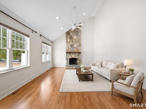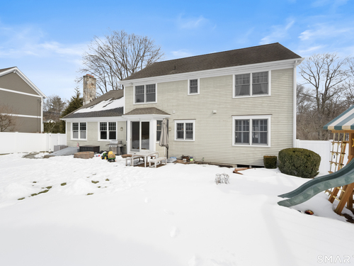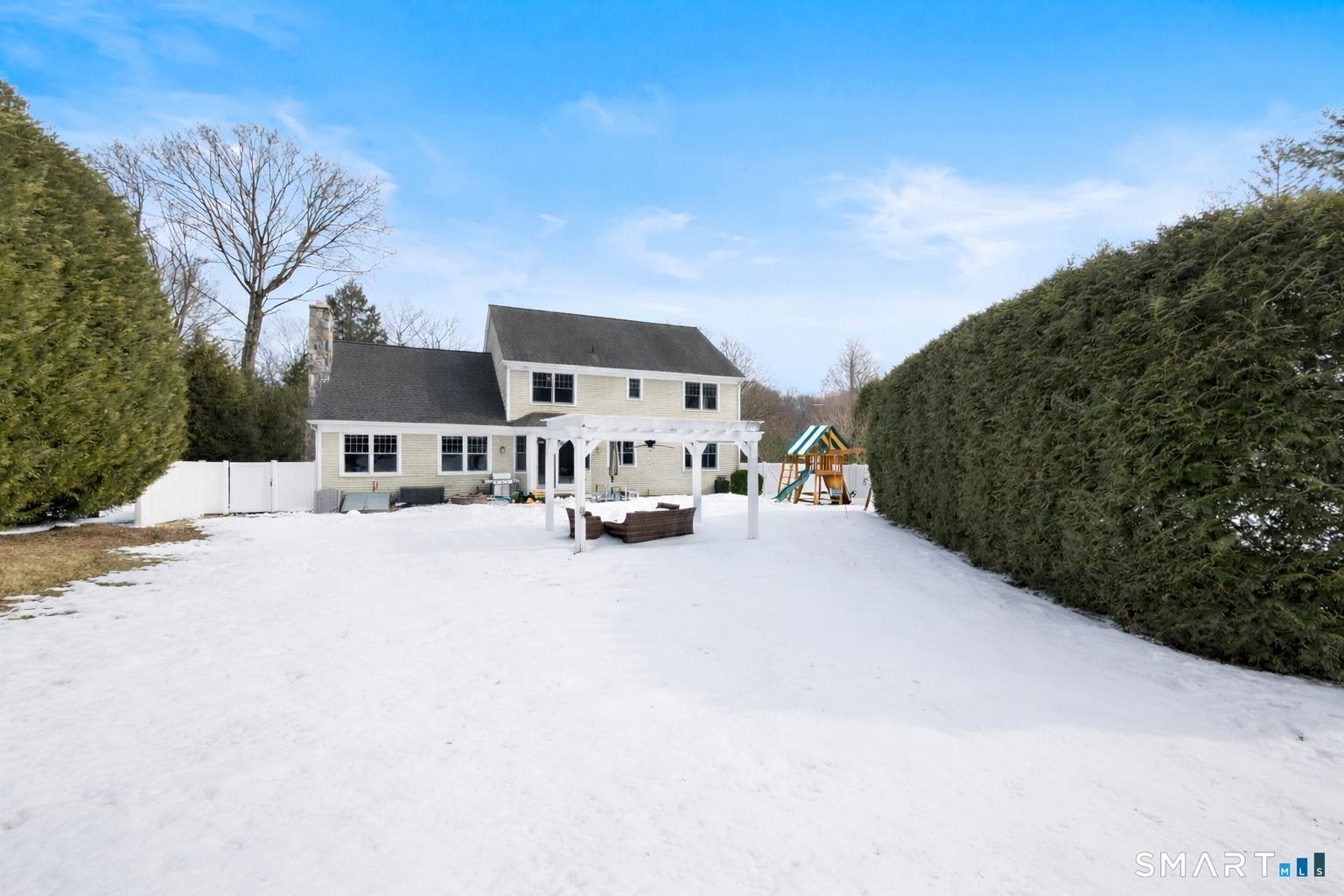 Turnkey quality and exceptional craftsmanship define this beautifully appointed Colonial in the heart of the Silvermine neighborhood-known for its serene setting, natural beauty, and timeless charm-just minutes from New Canaan and Wilton town centers, I-95, the Merritt Parkway, and Route 7. Designed for both everyday living and effortless entertaining, the main level offers formal living and dining rooms, a dedicated office or study, and an open-concept living area anchored by a gourmet kitchen with center island, stainless steel appliances, and a sunlit breakfast area. The kitchen flows seamlessly into a spacious family room featuring a dramatic floor-to-ceiling stone fireplace. Upstairs, the serene primary suite includes a walk-in closet and a luxurious spa-like bath, complemented by three additional generously sized bedrooms and a full hall bath. The beautifully finished lower level adds approximately 1,000 square feet of versatile living space-ideal for a playroom, home office, fitness area, or guest retreat. Outdoors, the fully fenced backyard offers a private, family-friendly setting with a dedicated play set and a beautiful pergola ideal for effortless entertaining, al fresco dining, and everyday enjoyment. Additional highlights include a walk-up attic with potential for future expansion, sprinkler system, custom blinds, and professionally landscaped grounds.