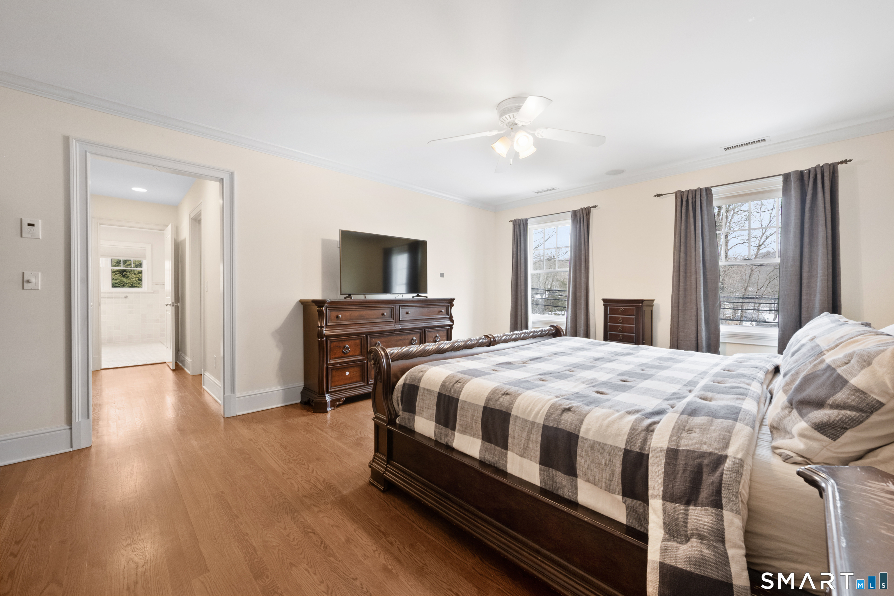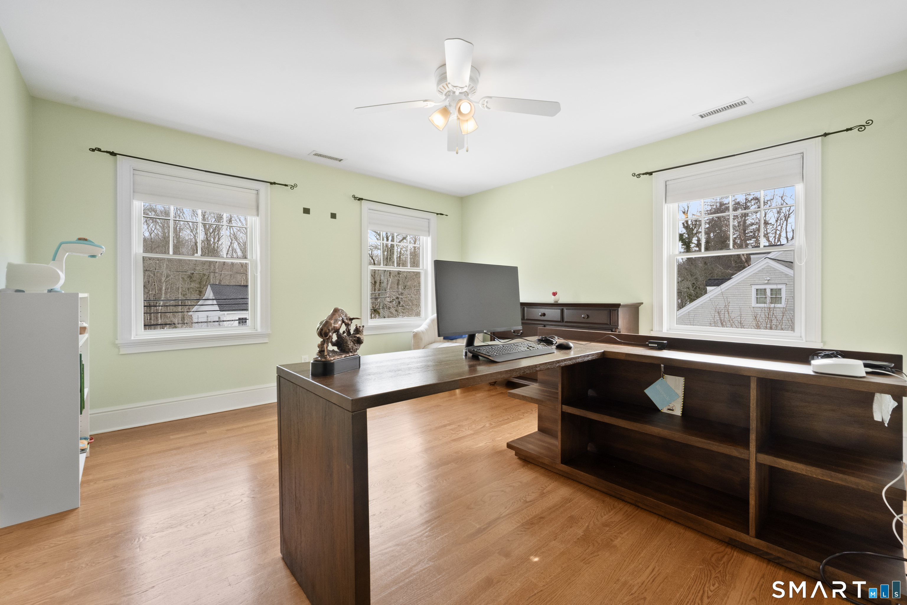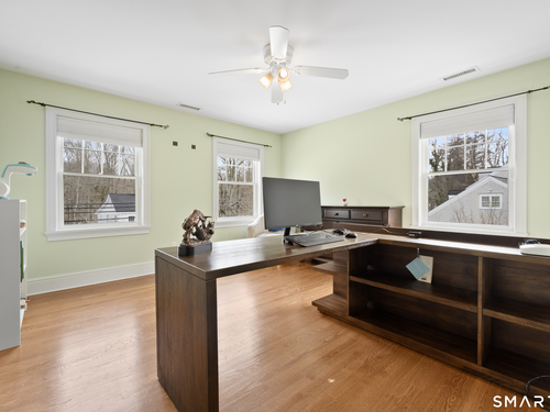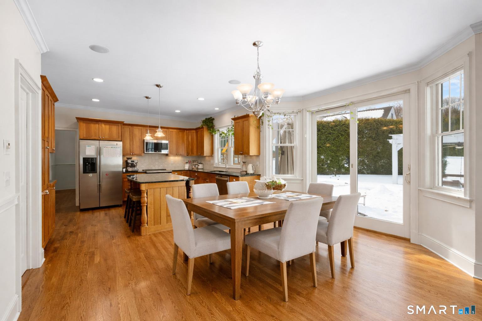 Turnkey quality and exceptional craftsmanship define this beautifully appointed Colonial in the heart of the Silvermine neighborhood-known for its serene setting, natural beauty, and timeless charm-just minutes from New Canaan and Wilton town centers, I-95, the Merritt Parkway, and Route 7. Designed for both everyday living and effortless entertaining, the main level offers formal living and dining rooms, a dedicated office or study, and an open-concept living area anchored by a gourmet kitchen with center island, stainless steel appliances, and a sunlit breakfast area. The kitchen flows seamlessly into a spacious family room featuring a dramatic floor-to-ceiling stone fireplace. Upstairs, the serene primary suite includes a walk-in closet and a luxurious spa-like bath, complemented by three additional generously sized bedrooms and a full hall bath. The beautifully finished lower level adds approximately 1,000 square feet of versatile living space-ideal for a playroom, home office, fitness area, or guest retreat. Outdoors, the fully fenced backyard offers a private, family-friendly setting with a dedicated play set and a beautiful pergola ideal for effortless entertaining, al fresco dining, and everyday enjoyment. Additional highlights include a walk-up attic with potential for future expansion, sprinkler system, custom blinds, and professionally landscaped grounds.