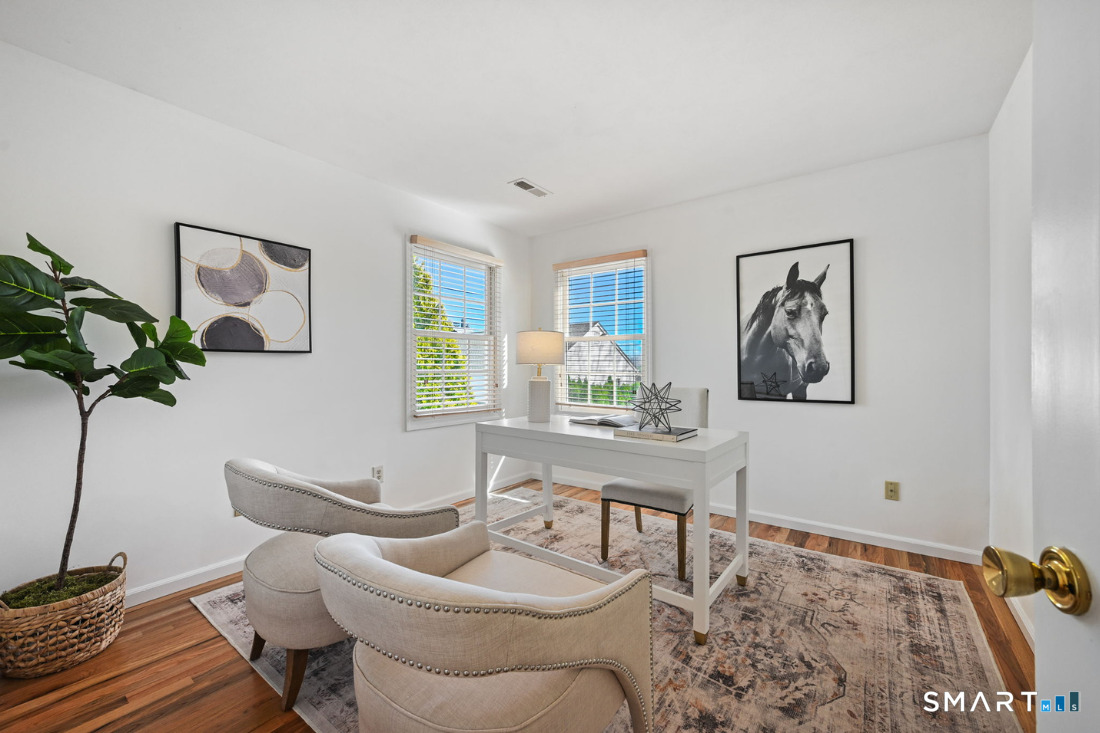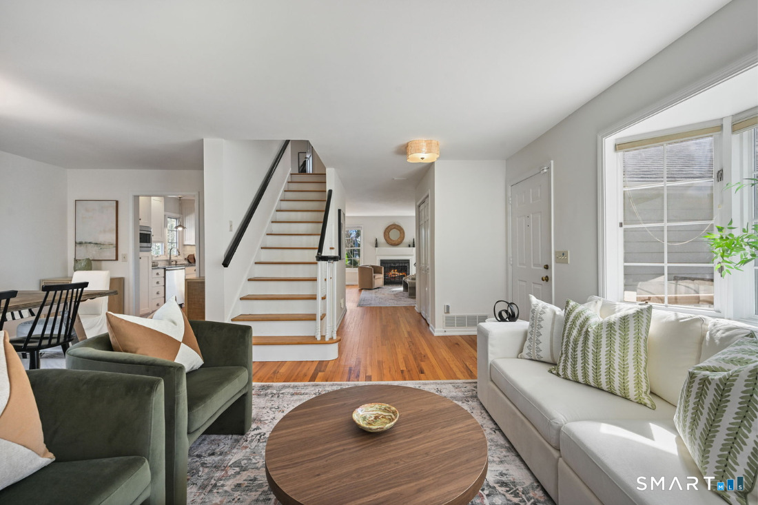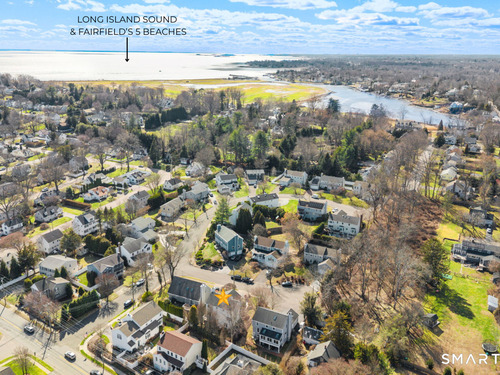 The rarest of rare opportunities to be in the beach area, very close to town, Pine Creek Beach & the 3-Par! Just imagine being located on a private cul de sac of ONLY 5 homes, NOT IN A FLOOD ZONE. This colonial is flooded with natural light, set on a professionally landscaped lot, with an open floor plan, hardwoods throughout, freshly painted interior, updated kitchen, completely refreshed and renewed. The main level greets you with a sunlit living room open to the dining room, flowing easily into the kitchen. The kitchen offers an eat-in area overlooking the outdoor rear deck, granite countertops, stainless steel GE Monogram refrigerator, DCS gas range, Bosch dishwasher, GE Monogram built-in microwave and stainless undermount sink with white shaker style cabinetry and nickel hardware. The family room is centered by a wood-burning fireplace and accesses the kitchen, half bath, garage and foyer. Truly great flow on both finished living levels. Once upstairs, you find all new hardwood flooring with a spacious primary suite, featuring an oversized primary bath and walk-in closet. An additional two guest bedrooms with great closet space, additional full bathroom, laundry room and a flex/office space. A special feature to note is the ability to expand without changing the footprint of the home. The full walk-out lower level can easily be finished featuring access to the rear yard, as well as additional bonus space above the TWO BAY GARAGE that can be a BR, office, studio.
