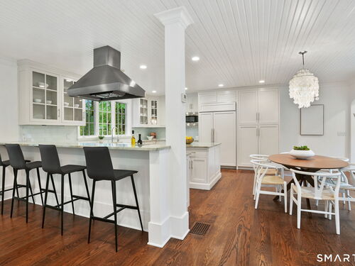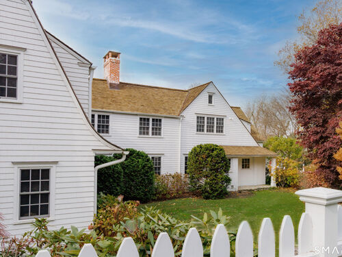 Rare opportunity to live on one of Westport's most desirable Compo Beach cul-de-sacs. Beautifully restored and reimagined for today's lifestyle, this character filled 1925 Colonial features beamed ceilings, exposed stone, four fireplaces and more. Grand entertaining spaces include an expansive Dining Rm/Living Rm with 10' ceilings and two FPLS, a bright modern Kitchen and Family Rm w/FPL, a relaxing Sunroom and an inspired glass-enclosed Office for working from home. Five Bedrooms on the second floor include Primary Suite and second BR, each with vaulted ceiling, three add'l spacious BRs, a laundry rm plus a Second Office/Study Rm. Fin LL has Playroom/Gym. Set on over half an acre with old stone walls, mature trees and gardens, the home's outdoor amenities include an 18'x 38' Gunite Pool with Spa and Safety Cover, an award-winning Pool House with bath, changing rm and outdoor shower, patio w/pergola and built-in BBQ, a wood-burning fire pit and a fenced vegetable/cutting garden. Walking distance on sidewalks to the beach, train and restaurants at Saugatuck, Compo Pkwy is a quiet cul-de-sac just across the street from Westport's Longshore Club, with 18-hole golf course, tennis, pickle, sailing school and ice skating rink in the Winter months. At the beach, yet with privacy and property, this home offers the best of both worlds -beach and country living- in a premium Westport location.