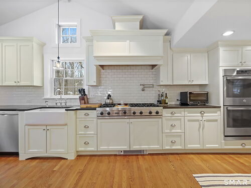 Welcome to 25 Cherry Lane ~ This charming 3 bedroom, 2 1/2 bathroom expanded ranch is filled with timeless appeal. Old-world charm greets you the moment you step inside the beautifully appointed living room with a wood burning fireplace creating a cozy and welcoming gathering space. The gourmet eat-in kitchen with vaulted ceiling is bathed in natural light and is truly the heart of the home with its welcoming design that makes cooking and entertaining a joy. The loft is ideal for a home office, reading nook, or creative space tailored to your lifestyle. Additionally, the family room and dining room both with built-ins complete this rare opportunity in South Wilton. Thoughtful details and tasteful finishes throughout plus easy one floor living makes this home move in ready. This property also offers an exceptional opportunity for gardening enthusiasts. It features a fully fenced-in garden creating an optimal environment for nurturing a wide range of plants, making it the perfect spot for anyone who enjoys spending time outdoors and tending to their garden.