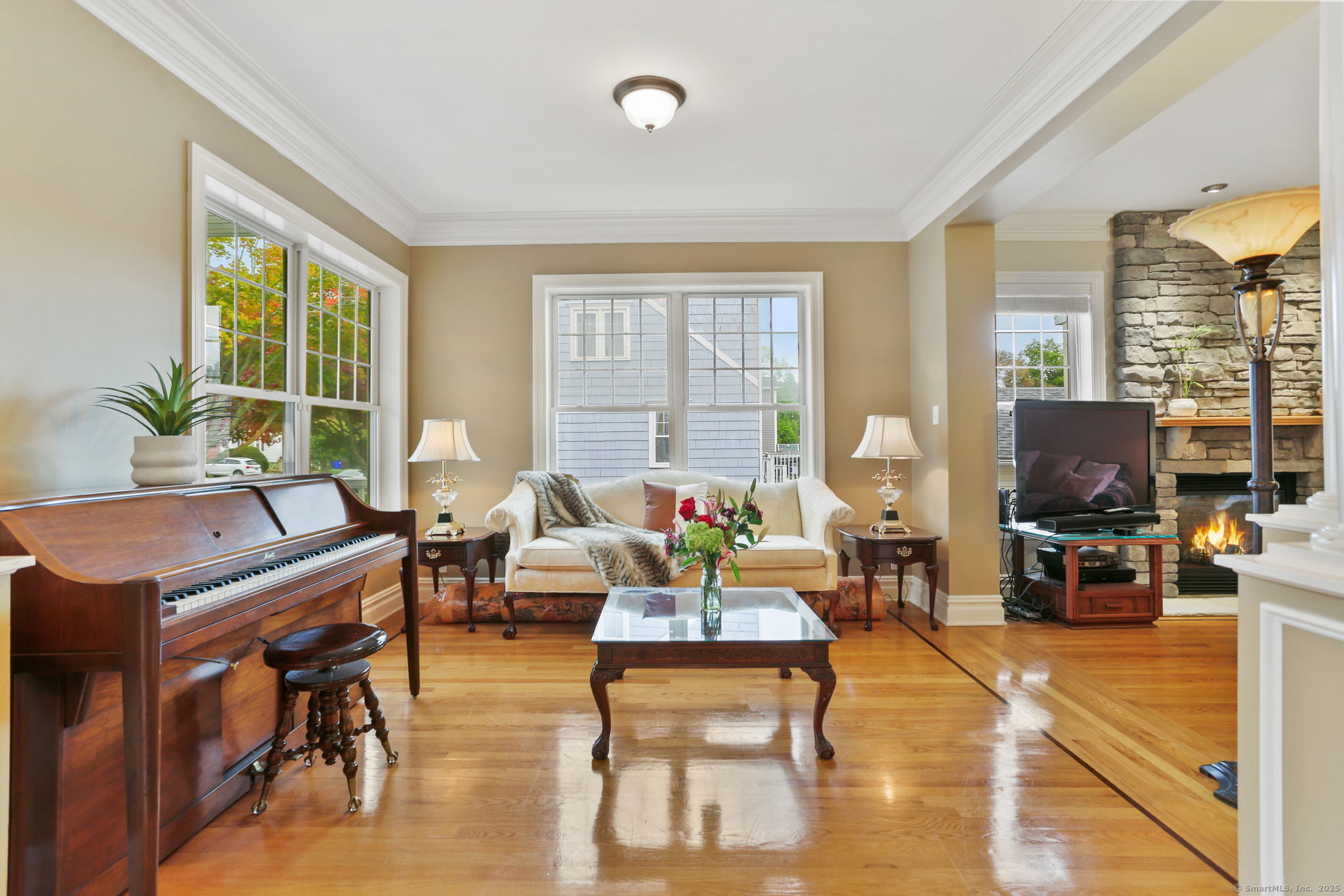 Welcome to 25 Country Road, an extremely well crafted duplex-townhome in one of Fairfield's most convenient locations. Offering the perfect blend of elegance & modern comfort, this 3 Bedroom & 2.5 Bath w/ a bonus 4th on the lower level. Made up of 2,170 SF across the 1st & 2nd floors w/ an additional 580 finished lower level SF for a total of 2,750 SF of living space set on a.21-acre lot: Built in 2006: HOA is $225/month which covers exterior maint. & insurance (shared w/ neighbor @ 27). Step into the grand foyer, where 9-foot ceilings, custom millwork, & rich crown moldings create a sense of spacious sophistication. The sun-filled eat-in kitchen features custom maple cabinetry, granite countertops, & stainless steel appliances, including a new convection oven/air fryer microwave, refrigerator, & gas cooktop. The living room is anchored by a stone-clad fireplace w/ a natural wood mantel, setting the tone for both everyday comfort & elegant entertaining. Upstairs, the primary suite offers a serene escape w/ a large walk-in closet, additional storage, & a spa-inspired ensuite complete w/ Jacuzzi whirlpool tub & custom cabinetry. The finished lower level provides exceptional versatility-perfect for a home gym, studio, pantry, wine storage, or creative space-w/ abundant storage throughout. Two-car garage offers direct entry into the home for added ease & convenience. Natural gas, forced air heat, hot water, & central air conditioning. A home that delivers on all fronts!