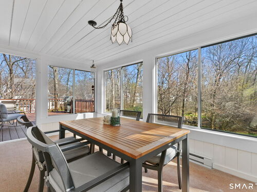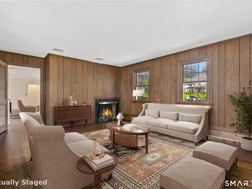 Classic Ranch on Expansive Park-Like Acre+ in one of Darien's Most Sought-after Neighborhoods. Nestled on a prime 1.08-acre property, this home offers the perfect backdrop for your dream lifestyle. The light-filled formal living room, highlighted by a wood-burning fireplace and custom built-ins, flows seamlessly into the inviting family room with rich wood paneling and a second wood-burning fireplace, ideal for both relaxing and entertaining. The spacious eat-in kitchen features a center island with granite countertops and casual dining area, opening to the formal dining room or the bright sunroom and rear deck, perfect for dining al fresco overlooking the expansive private property. The primary suite provides a true santuary, complete with walk-in closets and primary bath. Three additional spacious bedrooms, all with hardwood floors, share a well-appointed hall bath with double sink vanity and tub/shower. The walk-out lower level features a generous recreation room with bay window and full bath, opening to a back patio for endless options and hours of fun. A workshop, mudroom and abundant storage areas provide exceptional flexibility and opportunity for additional finished space. Two-car attached garage, new HVAC (2023/2024), and a full house generator. Opportunities abound to renovate, expand, or build the home of your dreams on this exceptional property. Close to schools, trains, Great Island, beaches, clubs, downtown, shopping/dining, golf courses.