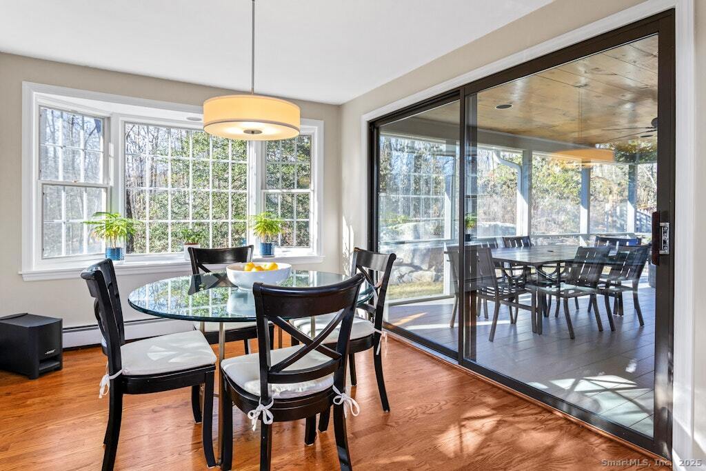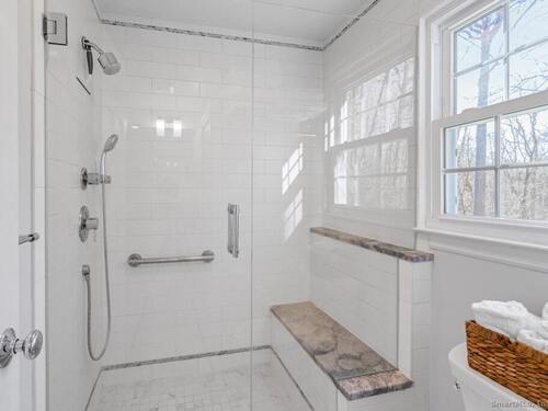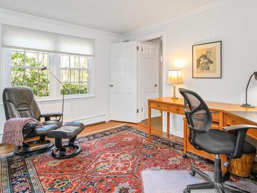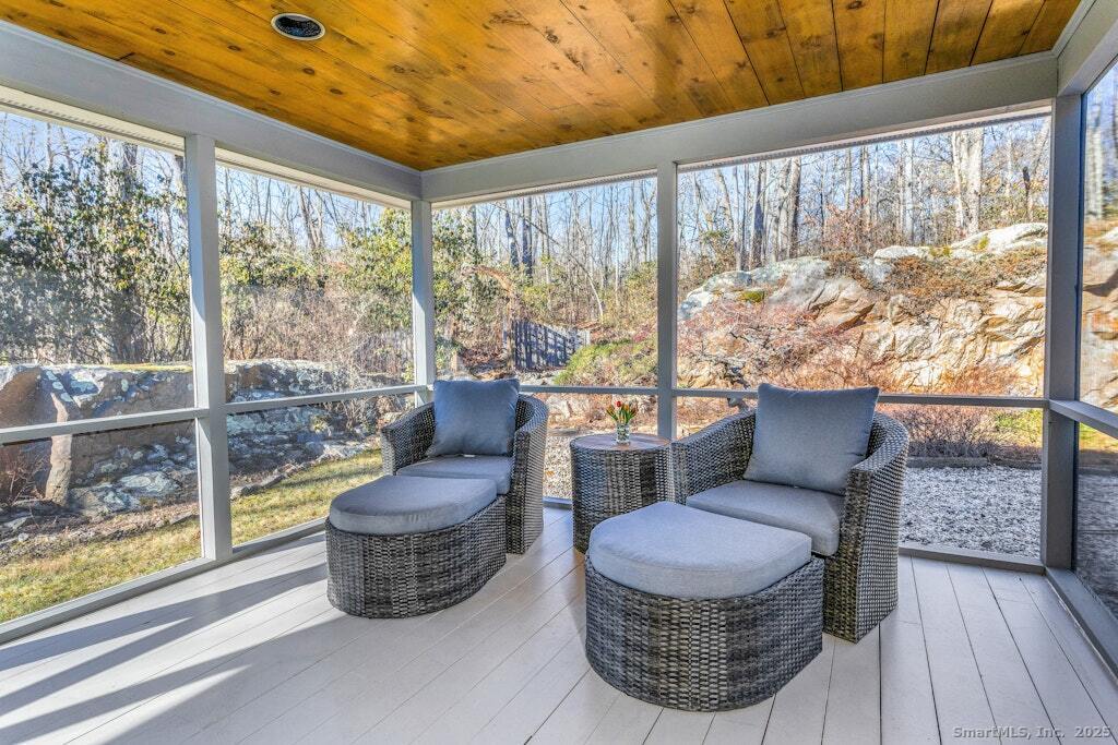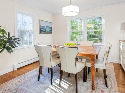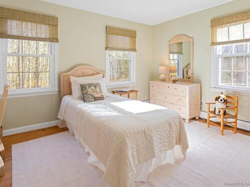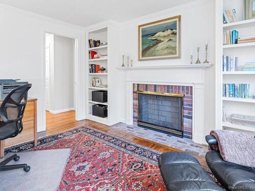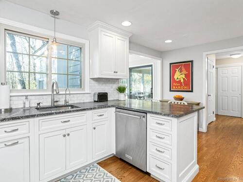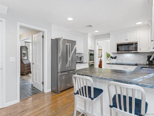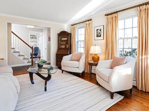 Enjoy privacy, comfort, and convenience in this exquisite four-bedroom, 2.5-bath home that beautifully blends classic elegance with modern sophistication. Step inside to discover an immaculate interior featuring hardwood floors throughout, a stunning designer kitchen, and a sunny breakfast nook. Unwind in the formal Living Room or the inviting Family Room, complete with a floor-to-ceiling brick fireplace. The charming Library/Office offers a warm and refined retreat with its own brick fireplace flanked by custom bookshelves. Indulge in the luxury of a newly remodeled primary bath, complemented by tastefully updated powder and second-floor bathrooms. The expansive screened porch-overlooking protected open space-provides a serene, private setting perfect for relaxation or hosting gatherings. Enhanced by a new driveway and a welcoming entrance framed by stone walls, the home boasts exceptional curb appeal. Ideally situated on a lovely cul-de-sac just minutes from Wilton's top-rated schools, train station, shopping, and dining, this residence offers the perfect blend of neighborhood charm and commuter convenience. Don't miss the opportunity to make this pristine home your own. .