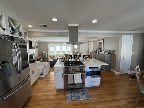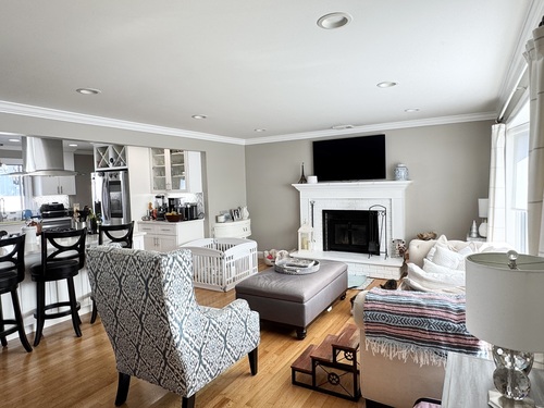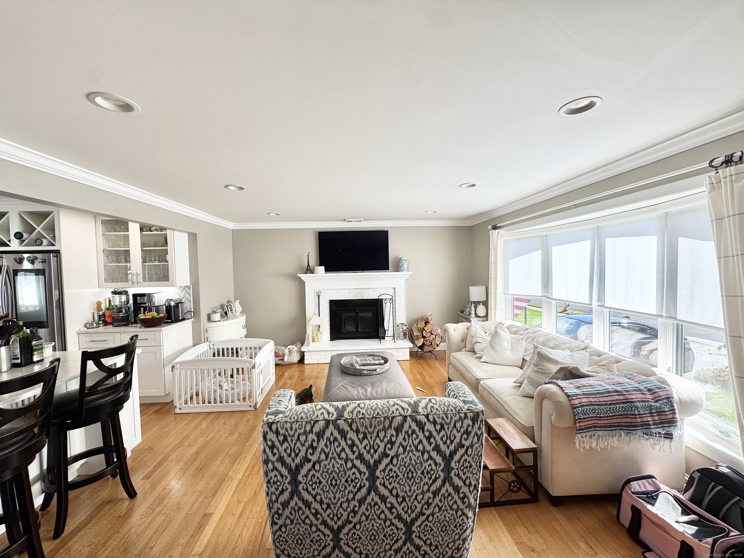*Multiple Offer Received "Highest & Best" by Tuesday at 8pm* Welcome to this inviting fully renovated ranch on a peaceful dead-end street! The open floor plan features a spacious living room with a cozy fireplace and a bright kitchen with quartz countertops, an island, top-of-the-line stainless steel appliances, and dining space. Sliders lead out to a rear deck with a retractable awning, perfect for gatherings and outdoor relaxation. A sun-filled family room with vaulted ceilings and skylights adds to the charm. The main level offers 3 bedrooms and 1.5 baths with skylights. The fully finished, heated basement with a fireplace provides even more living space. Complete with a 2-car attached garage and set on a private 1/4-acre lot, this home is the perfect blend of comfort and convenience. Subject to seller securing suitable housing; seller is actively pursuing options.
