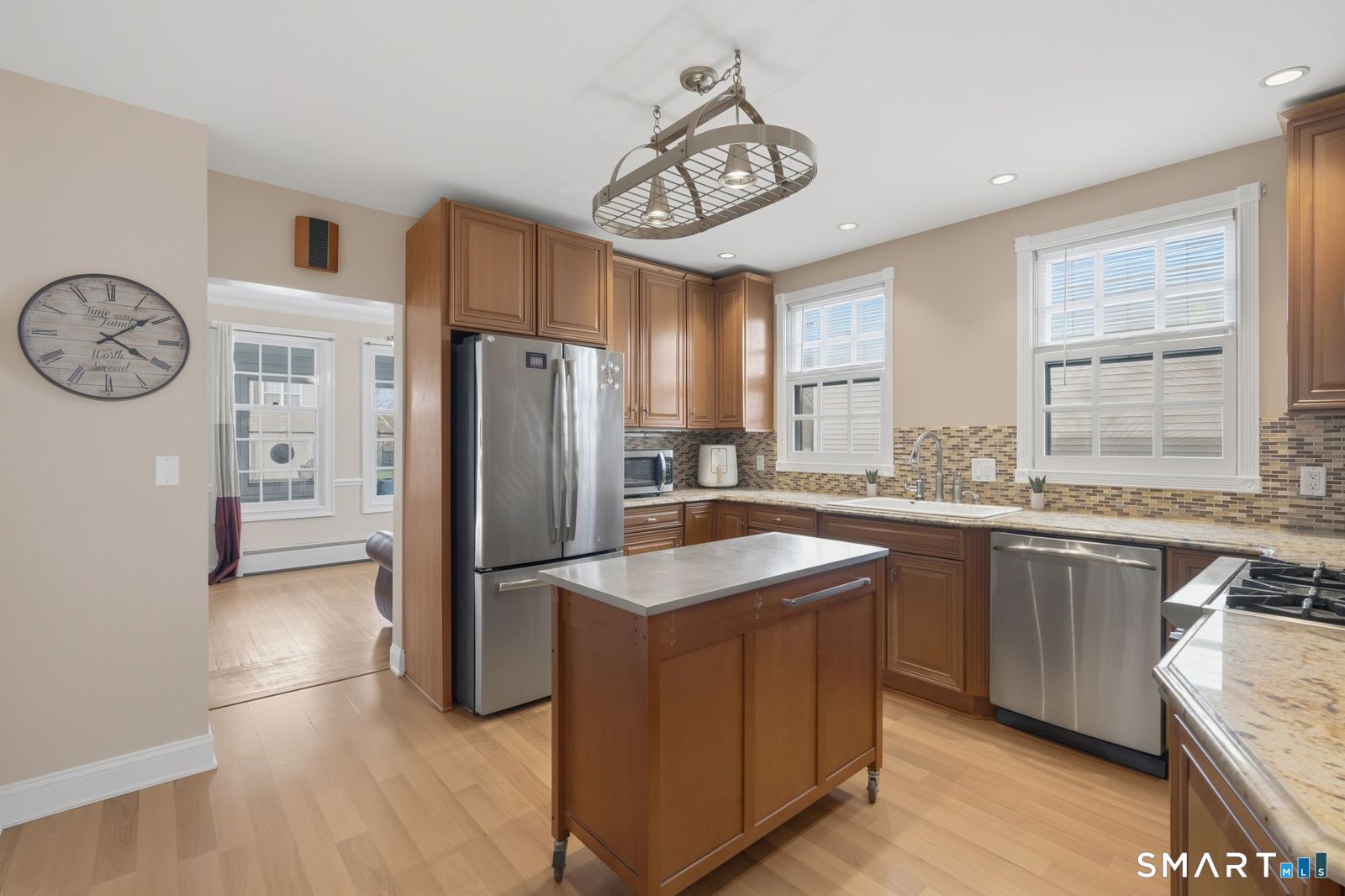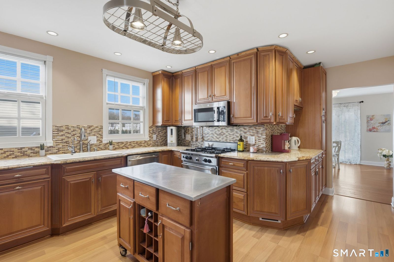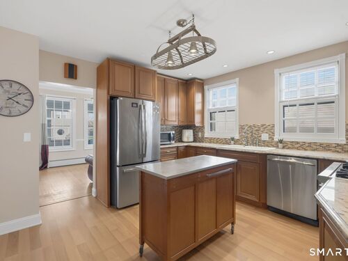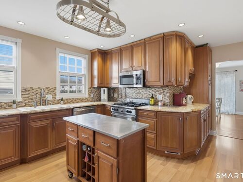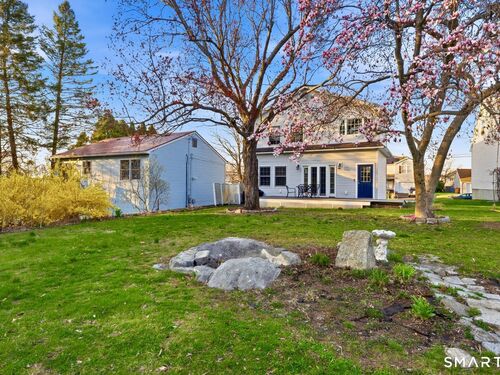 Beautifully remodeled Cape Cod on a quiet cul-de-sac in the heart of Shelton. This move-in ready home offers 3 bedrooms, 2.5 baths, over 2,000 sq ft of bright, sun-filled living space, central air, and a full basement for added storage. The main level features an updated kitchen with stainless steel appliances, beautiful flooring throughout, and a cozy living room with fireplace and French doors. A flexible main-level room is perfect for a home office or guest space. Upstairs includes a private primary suite with full bath, double sinks, and hydro tub, plus two additional bedrooms and a full bath. A skylit loft area at the top of the stairs offers the perfect space for a home office or sitting area. Enjoy a spacious backyard with a fire pit and large shed for extra storage. Conveniently located near downtown Shelton, shopping, dining, schools, and Route 8.