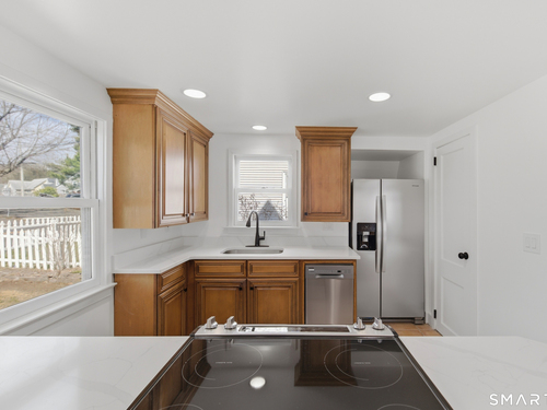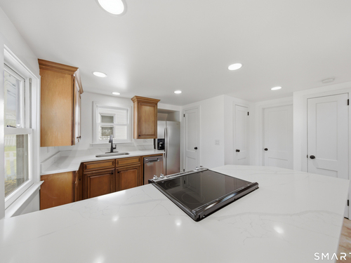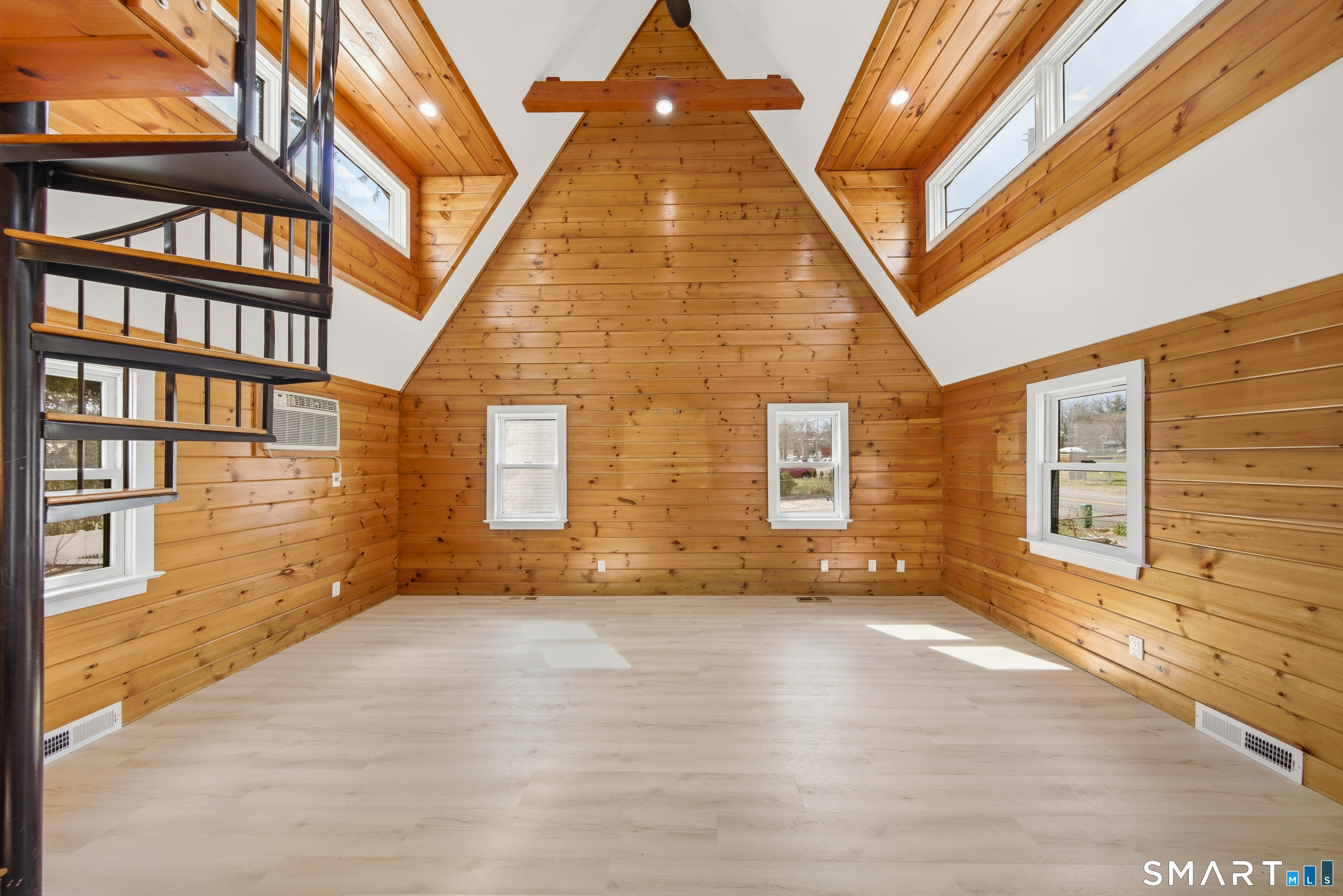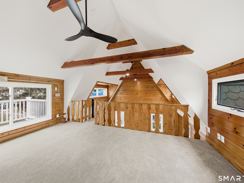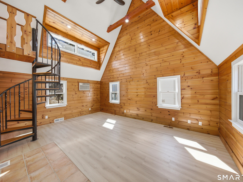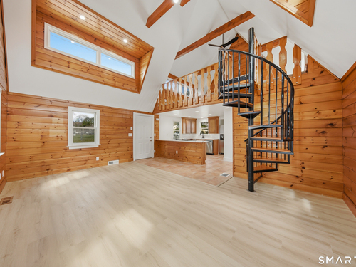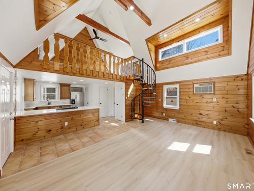 Tucked in Norwalk's Broad River neighborhood, this distinctive single-family home offers the charm of a ski chalet with the convenience of an in-town location. Soaring vaulted ceilings and abundant natural light define the main living space, creating an airy and inviting atmosphere. The recently updated kitchen features white quartz countertops and new stainless steel appliances, blending modern finishes with the home's warm character. The flexible layout includes a loft area with a private balcony, previously used as a sleeping space, while the home is town-designated as a one-bedroom. A finished walkout lower level adds valuable versatility, ideal for a home office, guest space, or alternative sleeping area. Enjoy peaceful views of Broad River Park just across the street, offering a sense of openness rarely found at this price point. A private driveway and rear patio provide added convenience and outdoor enjoyment. Ideally located near shopping, dining, I-95, and the South Norwalk train station. A rare opportunity to own a unique single-family home as a true alternative to condominium living-offering privacy, independence, and no HOA fees.