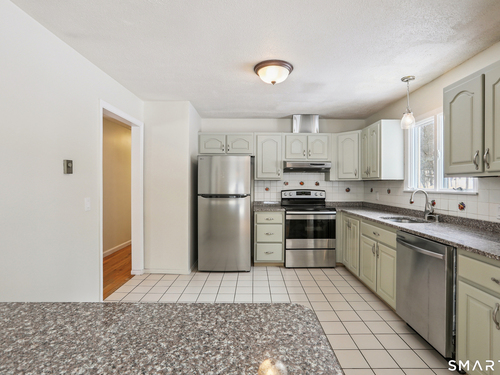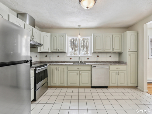 Welcome to this beautifully maintained 4-bedroom, 3-full-bath high ranch in the highly sought-after King Street area of Danbury, set on a quiet cul-de-sac just minutes from I-84 and I-684 for an easy NY or lower Fairfield County commute. Freshly painted and move-in ready, this home offers the space and flexibility today's buyers are looking for. The main level features hardwood floors, a spacious kitchen with stainless steel appliances and granite countertops, and an open dining area with sliders to the deck - ideal for entertaining. The living room is anchored by a classic brick fireplace, adding warmth and character. Down the hall, you'll find a beautifully renovated full bath, two well-sized bedrooms, and a primary suite with its own private bath. The finished lower level adds valuable living space with a bright family room featuring brand-new carpet and a second fireplace, plus a fourth bedroom and full bath - perfect for guests, extended family, or a home office. Enjoy a fully fenced backyard with a stunning stone patio, offering privacy and room to relax or gather. A versatile, well-cared-for home in a prime location with room to grow. Sold as-is.