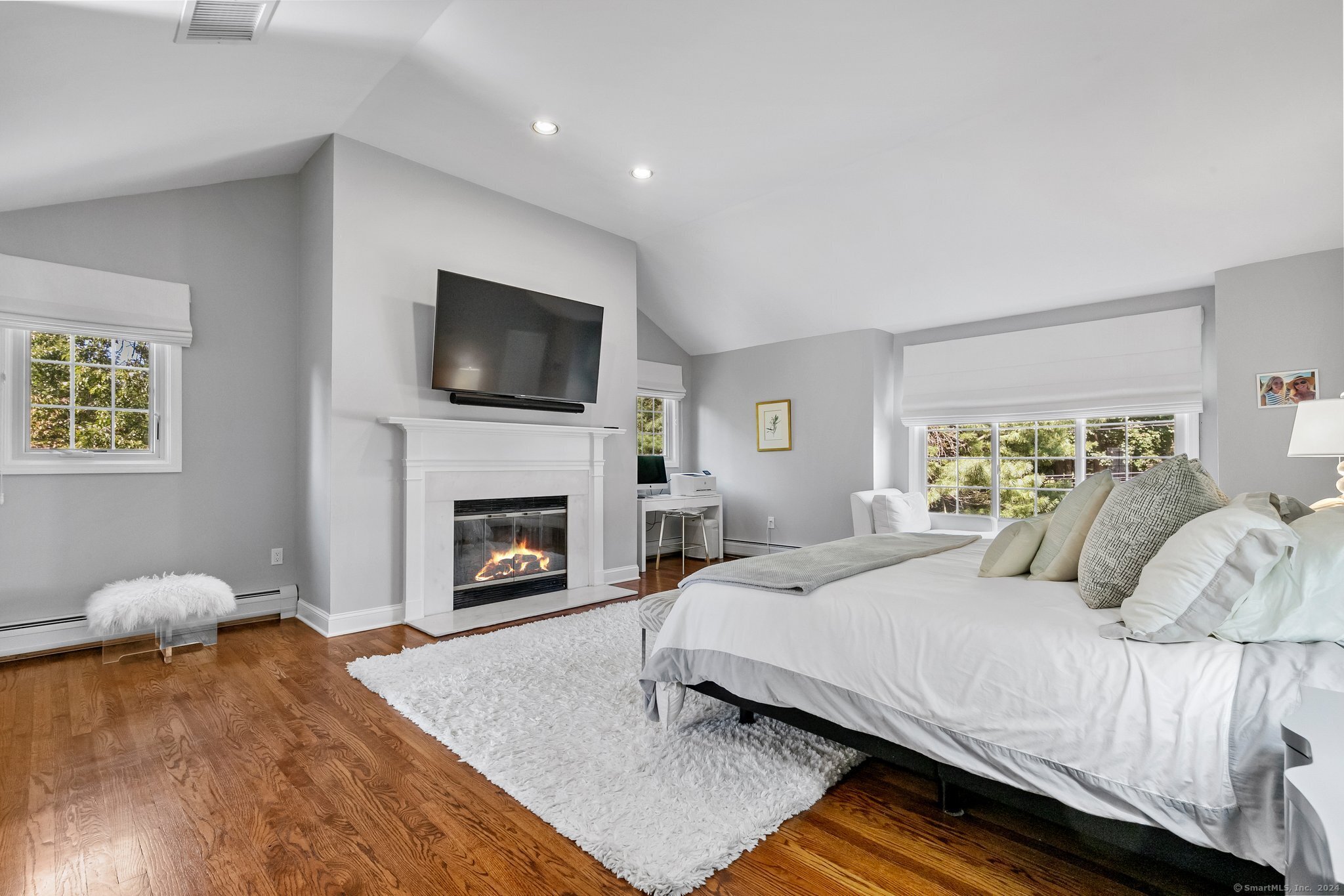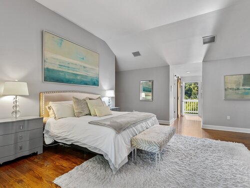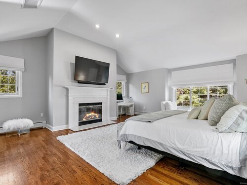 Primary Bedroom (Upper Level)Vaulted Ceiling, Balcony/Deck, Gas Log Fireplace, Full Bath, Walk-In Closet