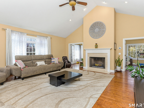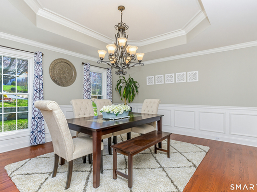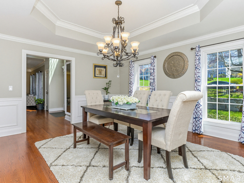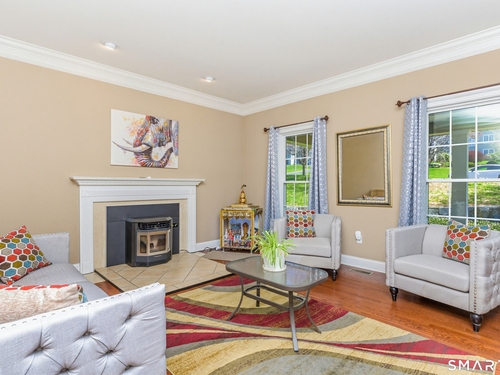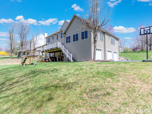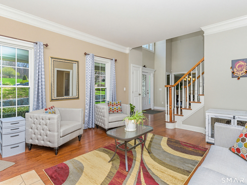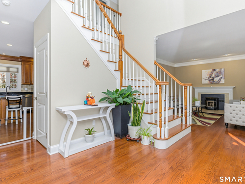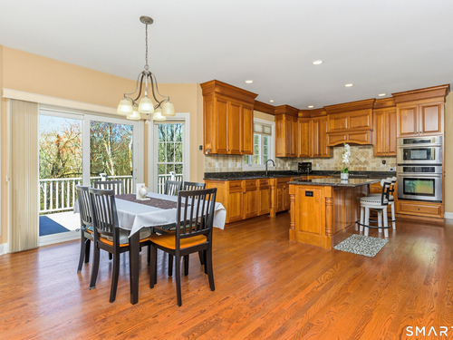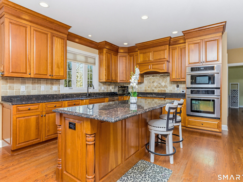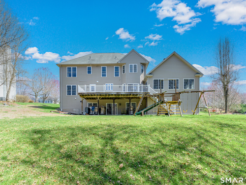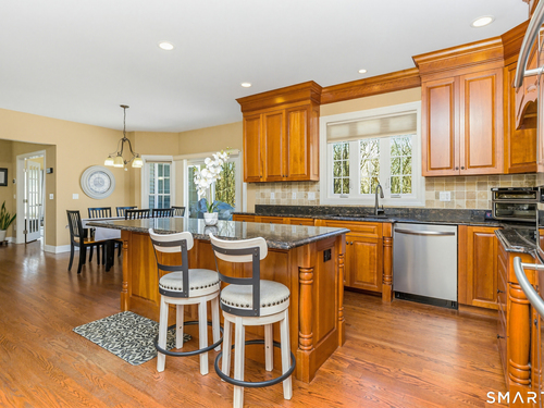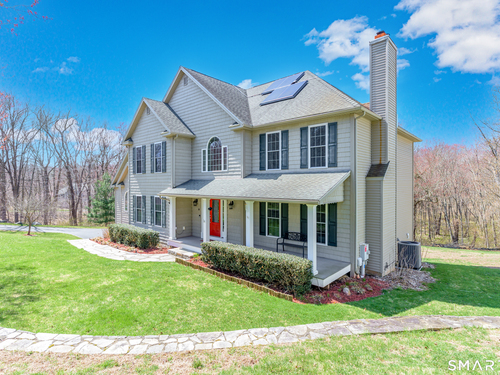 Nestled on a quiet cul-de-sac in Monroe, this stunning 4BR, 3.5-BA Colonial offers the perfect blend of elegance, comfort, and modern living. Featuring an open floor plan and beautiful hardwood floors throughout, this home is designed for both everyday living and entertaining. Step into a dramatic two-story foyer that sets the tone for the home's inviting layout. At the heart of the home is a spacious eat-in chef's kitchen featuring stainless steel appliances, granite countertops, a large center island, dry bar and sliders to an expansive deck for seamless indoor-outdoor living. The impressive great room boasts soaring ceilings and a cozy fireplace. The main level also includes formal living room with fireplace, formal dining room with tray ceiling, private office, powder room, and a sun-filled sunroom. Upstairs, the luxurious primary suite offers a full bath with jacuzzi tub, double sinks, a walk-in shower and his and her walk-in closets. Three additional generously sized bedrooms and a full bath with double sinks and tub/shower complete this upper level. The finished basement provides added versatility with a full bathroom and kitchenette-ideal for extended family living, in-law or au pair. An additional unfinished area provides ample storage. The property backs up to expansive open space, offering added privacy and scenic views. Additional features include a 3-car garage, energy-saving solar panels and smart nest thermostats make this home as efficient as it is beautiful