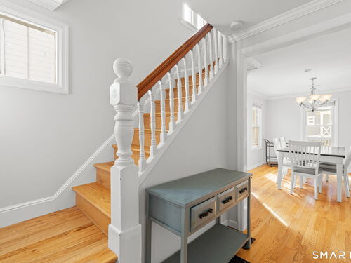 Steps from the iconic Shorefront Park pillars, this charming waterfront community Colonial offers a lifestyle defined by ocean breezes, effortless access to SONO, and coastal walks to restaurants, shops and the Metro-North train. Set in one of Norwalk's most loved neighborhoods, this three-bedroom, two-and-a-half-bath Craftsman blends classic character with flexible living. A separate entrance with an efficiency kitchen creates an ideal opportunity for a possible apartment, in-law, guest suite, or ADU. Architectural details shine throughout, including beautiful hardwood floors, distinctive period woodwork, stained glass windows and an updated kitchen that balances charm and function. Four levels of living space provide exceptional versatility, including a walk-up third floor perfect for a home office, playroom, or creative space with peaceful ocean views. A full basement offers plenty of storage, with laundry conveniently relocated from the second floor (Bathroom Closet is plumbed on second floor). Out back, a sweet screened-in porch creates a private retreat overlooking gardening space and play area. A large shed with work bench, tool storage and electricity adds even more flexibility and storage. Walk to train to NYC, Kayak the Norwalk Harbor and bike to Calf Pasture Beach. This is coastal living with heart, history, and room to grow. Don't miss the video attached.