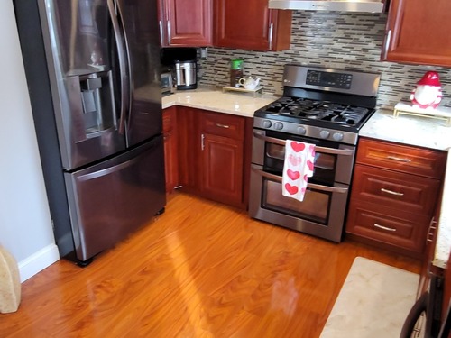 House nestled at a corner lot, close to everything near center of town. Dutch Colonial fenced in home with lots of room, spacious, beautiful floors, spectacular cherry wood kitchen cabinets, with lots of lighting, and top of the line refrigerator, stove, dishwasher and Brazilian granite counters. Five bedrooms, two bathrooms, kitchen, living room and lots of closets and space. New tankless water heater and to top it off, a garage for two cars, the home is on a level lot, a comfortable setting to have plenty of family, and friends over for get togethers. The owners have occupied this house for twenty-five years and updated the home throughout the years.