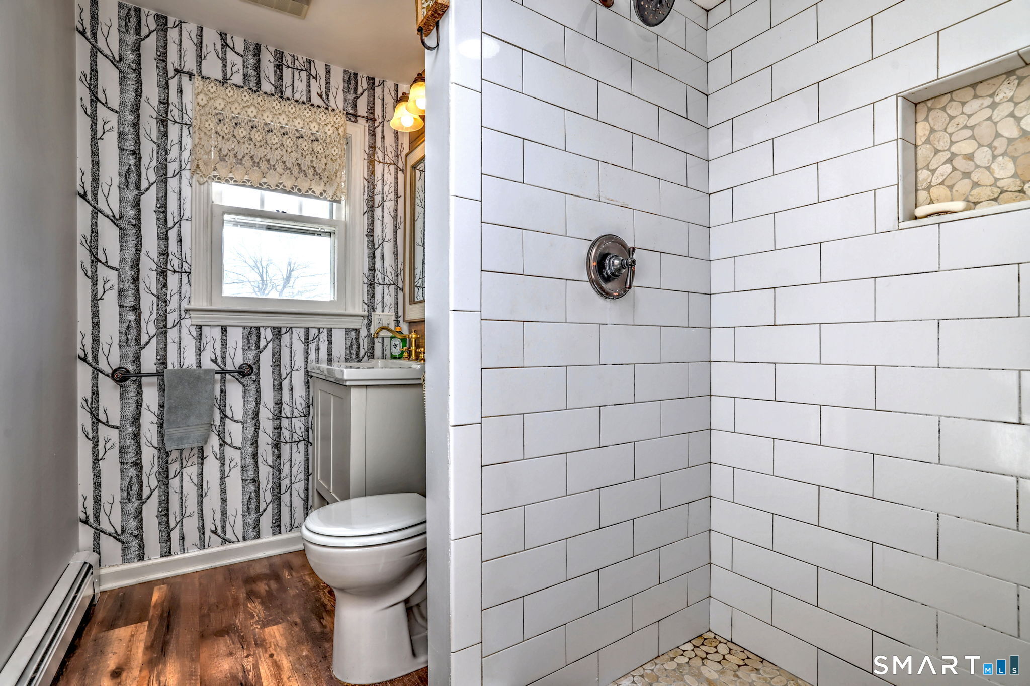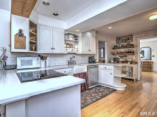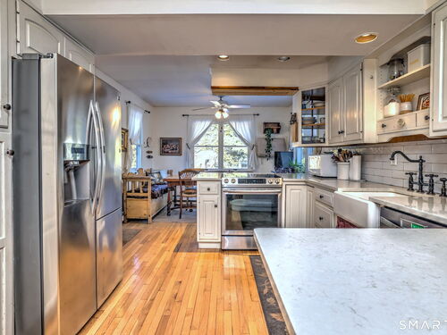 Classic colonial charm meets everyday comfort in this well-appointed 3 bed, 2 full bath home. Enjoy scenic views of Brewster Pond from the front of the home, adding a peaceful backdrop to daily living. The main level offers a welcoming living room with hardwood floors, fireplace and built-in shelves, a formal dining room accented by a bow window and hardwood floors, and a sun-filled family room with walls of windows. The kitchen is designed for both function and style with quartz countertops, stainless appliances, an eat-in area with ceiling fan & access to the backyard. A full bath with tile shower and a convenient mudroom drop zone complete the first floor. Upstairs you'll find three bedrooms, all with hardwood floors, including one with access to the walk-up attic that is ideal for storage, office or playroom space (additional sq ft). A beautifully renovated full bath on this level features a claw-foot tub with shower. The lower level offers abundant storage and the potential to be fully finished for additional living space. Outside, enjoy a level backyard with a stone patio perfect for relaxing or entertaining, plus a two-car garage for added convenience. Ideally located in close proximity to Longbrook Park (pond, playground, tennis courts, splash pad, sports fields) and within walking distance to Paradise Green with restaurants, shopping, and everyday amenities. Roof replaced approx. 7 years ago. Pride of ownership evident throughout. Agent related to seller.