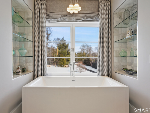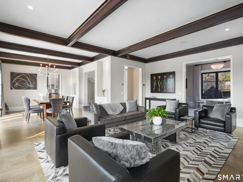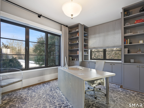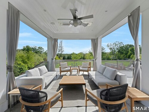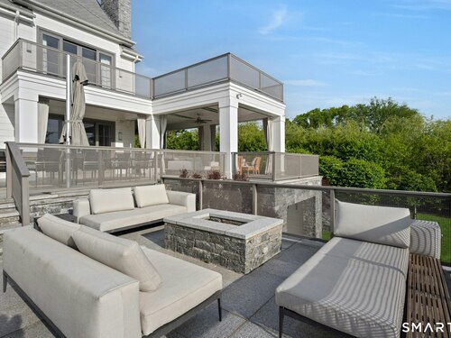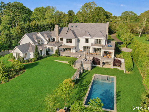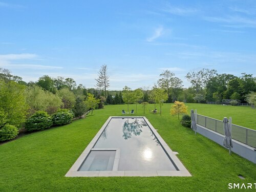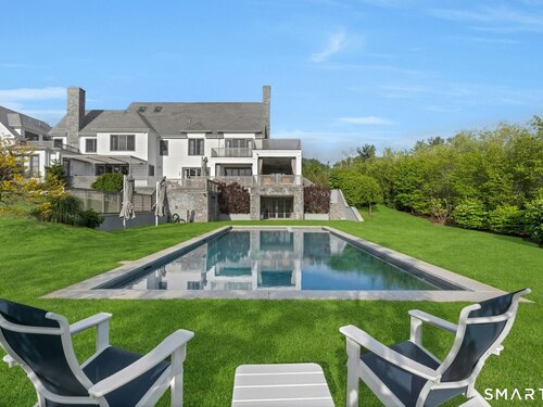 Sited on over two acres of private, west-facing land in the heart of Greenwich's coveted Golden Triangle, this architectural modern masterpiece commands attention. Designed in collaboration with renowned architect William D. Earls, this 11,000+ sq ft six-bedroom estate showcases timeless design, masterful craftsmanship, and refined sophistication. Completed in 2018, the residence blends bold contemporary lines with warm, livable elegance. Inside, soaring ceilings, dramatic steel-framed windows, and sunlit open spaces create an extraordinary sense of volume and light. The chef's kitchen is a showpiece, featuring Sub-Zero, Wolf, and Bosch appliances, HR Woodworking custom cabinetry, and bespoke finishes throughout. The luxurious primary suite serves as a serene retreat, featuring a spa-like bath, dual dressing rooms, fireplace, a private terrace, and sweeping sunset views. Expansive walls of glass open to a resort-style backyard with a Groppa saline pool and spa, sculpted gardens designed by Joseph Pajonas Studio and multiple terraces offering the ultimate in indoor-outdoor living and entertaining.