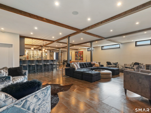 9 ft+ Ceilings, Balcony/Deck, Beams, Wet Bar