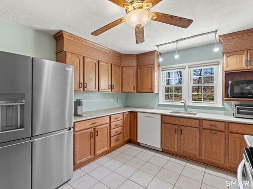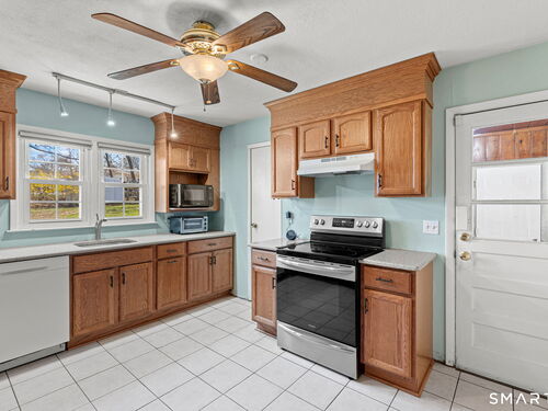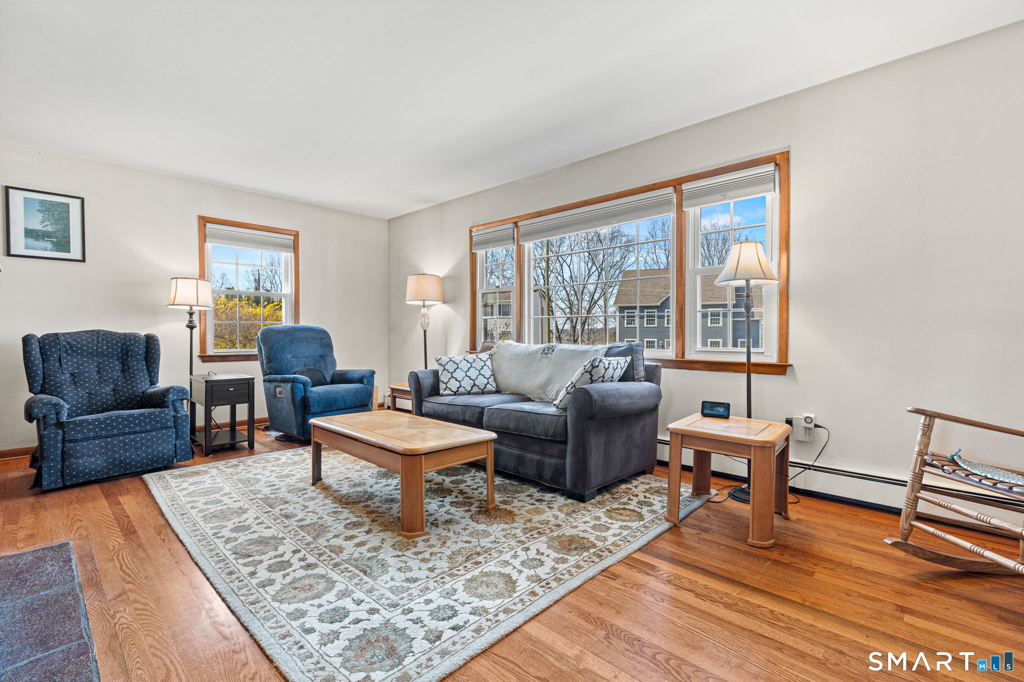Welcome to easy, single-level living in Bethel's charming Chimney Heights neighborhood. This well maintained Ranch offers over 1,500 square feet on the main floor with 3 bedrooms and 2 full baths providing both comfort and convenience. A bright and functional layout flows effortlessly, including a connected breezeway from the attached two-car garage for a versatile bonus space perfect for a mudroom, home office, sunny reading or sitting area. Enter through the front door into a foyer with coat closet. To your right sits the large sun-lit living room with fireplace and adjacent is the dining room. Through the dining room is the kitchen and breezeway. Opposite of the kitchen are 3 bedrooms with hallway full bath and primary with attached full bath. The finished lower level provides excellent additional living space with a ton of potential for future expansion. Think home gym, media room, guest area, man cave or zen den. Set on a spacious lot with generous front and backyard space-ideal for entertaining, gardening, or easily fencing in for pets, this home has it all. And for added convenience, you're just eye shot from Target for shopping, dining, and everyday essentials. Commuter? i85 is less than a minute drive. Major updates including a newer roof, water heater, and oil tank offer peace of mind for years to come. City sewer as well! A fantastic opportunity to enjoy low-maintenance living in a location that truly makes life easy and enjoyable. Additional pics by Tuesday.