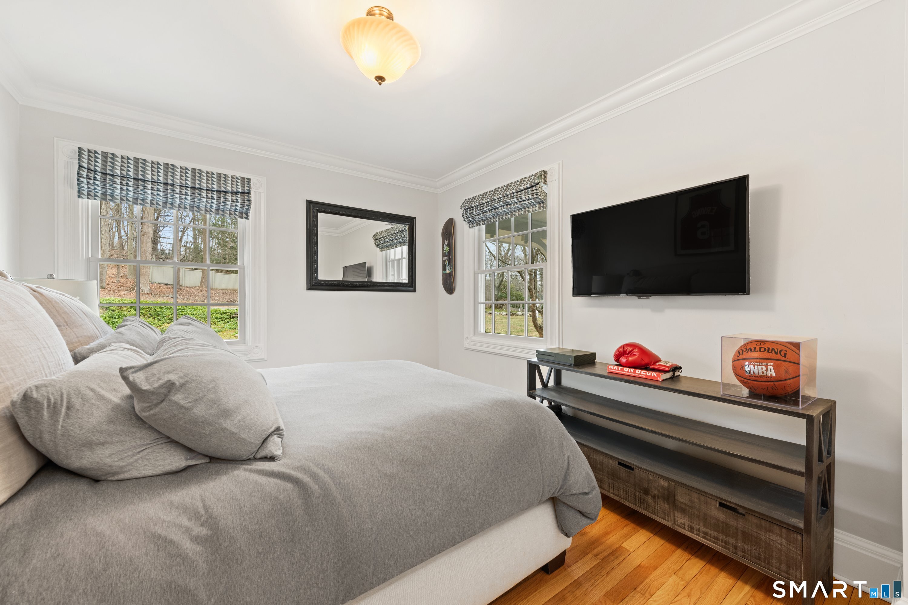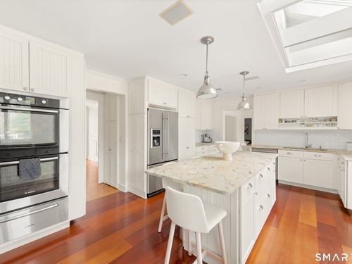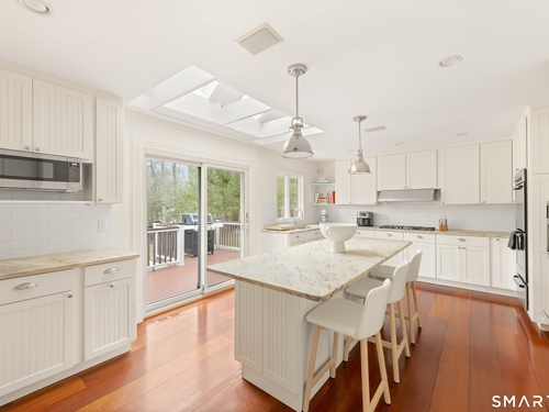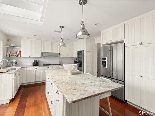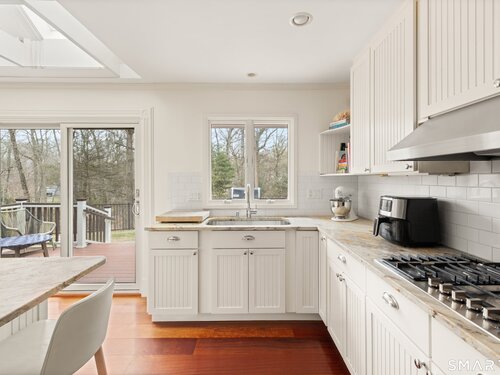 In the heart of Westport, where charm meets modern living, the expanded cape at 32 Berndale Drive delivers the perfect blend of space, style, and location. Nestled on a quiet, sought-after street just moments from Bedford Middle School and Staples High School, this 5-bedroom, 4-bath residence offers exceptional versatility for today's lifestyle. A welcoming foyer leads into inviting living spaces-including a sun-filled living room with a fireplace, a spacious dining room perfect for gatherings, and a cozy den anchored by a second fireplace. The updated kitchen impresses with top-of-the-line stainless steel appliances, granite countertops, plus ample workspace and storage. Upstairs, the primary suite is a serene retreat featuring a spa-inspired bath with radiant heated floors and a luxurious steam shower. Additional bedrooms, including three on the main floor, provide plenty of room for family, guests, or dedicated office space. The lower level expands your options with a recreation area, workout room, bedroom, laundry, and a full bath-ideal for guests or extended family. Additional highlights include a 2-car attached garage, whole-house generator, and mudroom entry with thoughtful built-in cabinets for easy daily living. An adjacent sunroom makes a perfect home office or studio, overlooking the private backyard. This exceptional home combines comfort, style, and one of the best locations in town-just minutes to schools, downtown, and all that Westport has to offer.