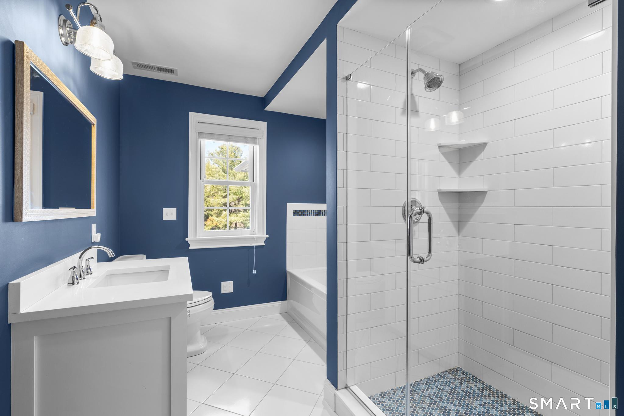 Quartz Counters, Double-Sink, Stall Shower, Tile Floor