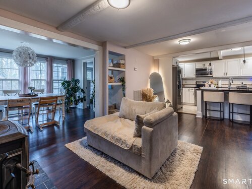 Welcome to 33 Jerusalem Hill Road in Trumbull, a charming 4-bedroom, 2 full bathroom home located in a highly sought-after neighborhood. Featuring exposed beams and an open flow from the kitchen to the sitting area and dining room, this home offers a warm and inviting layout perfect for everyday living and entertaining. The sitting area includes a cozy wood-burning stove, while the living room boasts a fireplace for added comfort. Enjoy a level yard ideal for outdoor activities, all conveniently located close to major highways. Make your appointment today, don't miss out !!