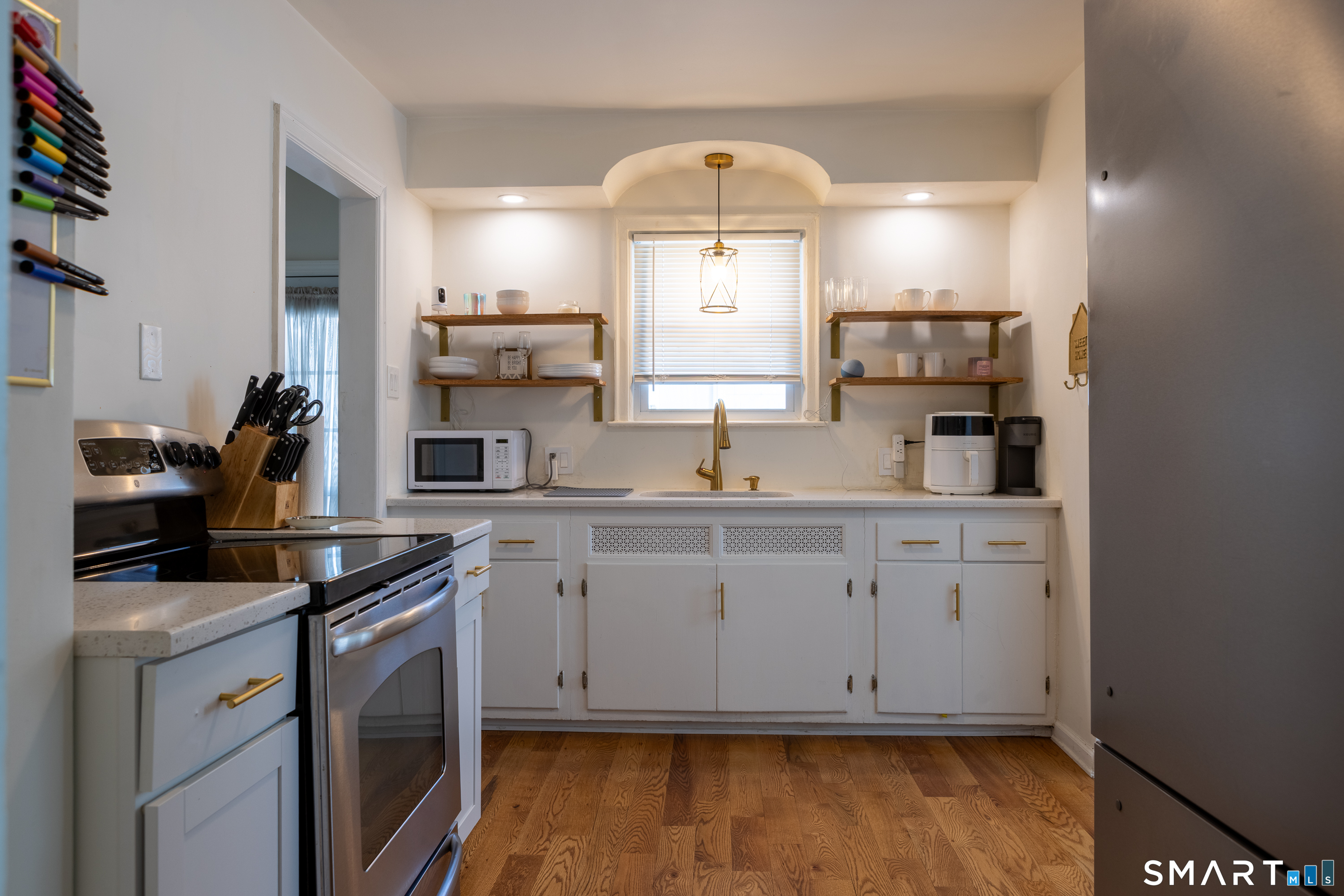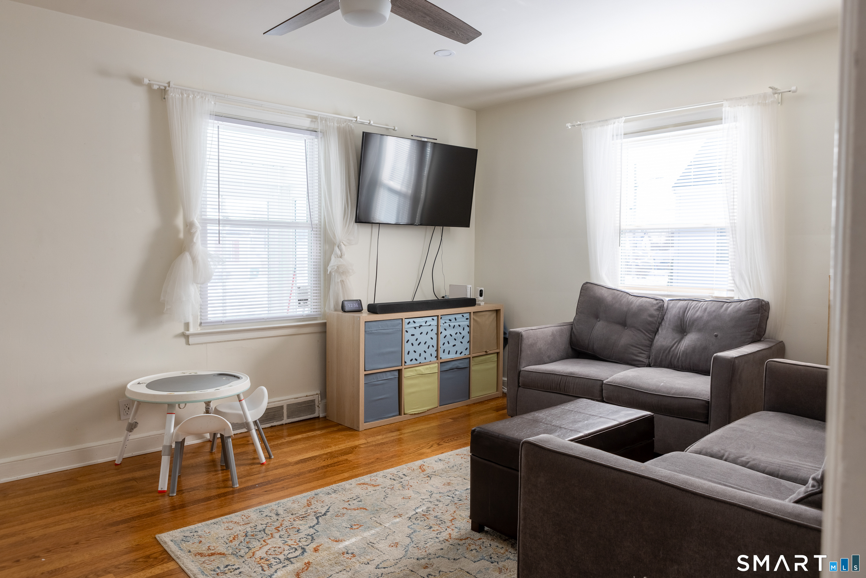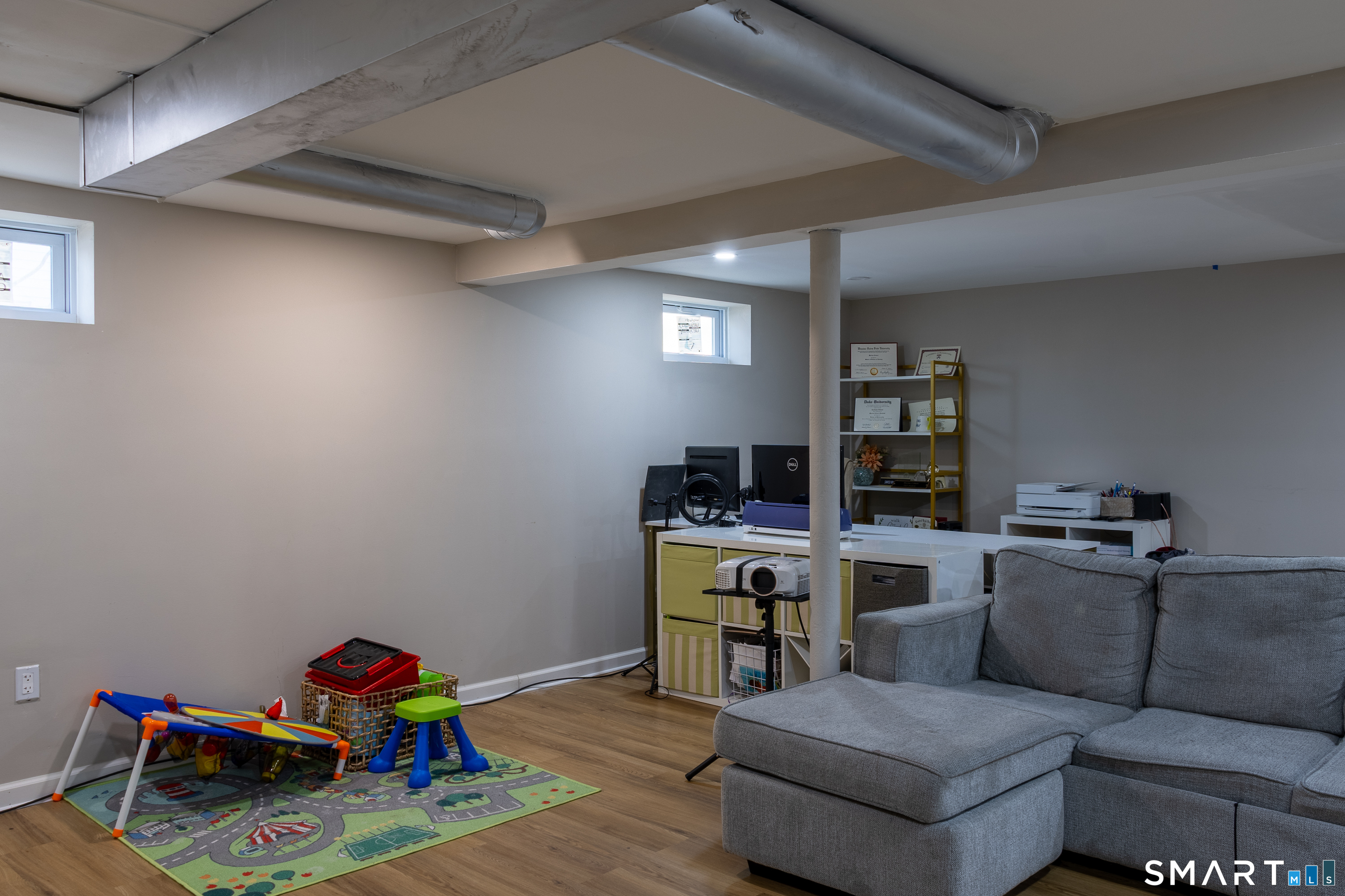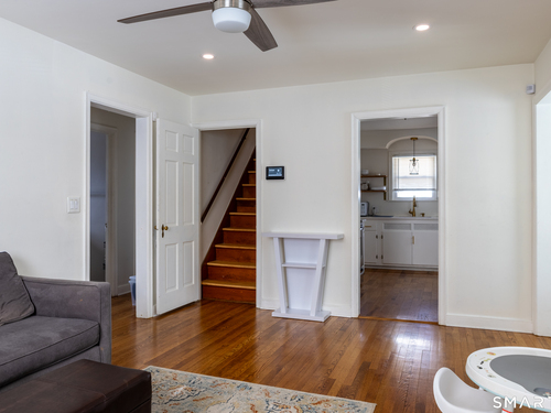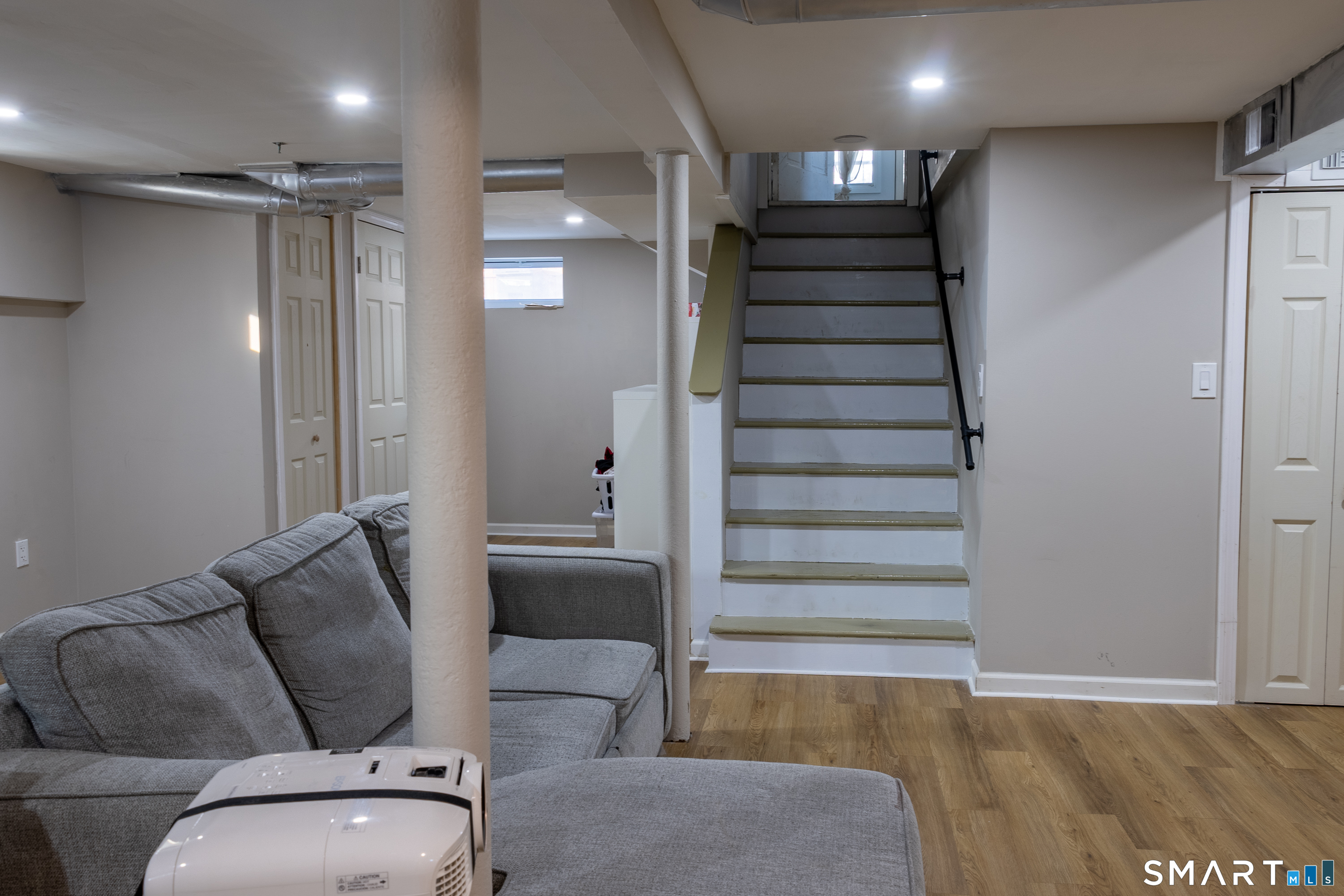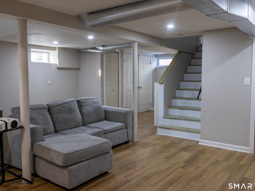 Welcome to 33 Sands place, a beautifully updated cape cod home offering great value and proximity to all that Stratford has to offer. Upon stepping through a sun filled porch and the main entrance door, you are invited into a warm, light and bright living room with fresh paint and refinished hardwood floors. From there, a hallway leads to the two (2) comfortable main level bedrooms and an updated full bathroom. A set of stairs off the main level also leads to spacious primary bedroom upstairs. Back on the main level you can appreciate an updated kitchen which features new flooring, fresh paint, quartz countertops and stainless appliances making it both stylish and functional. Next to this is a nice sun filled and versitile dining nook with built-ins for seating & storage. Also off the kitchen is the landing that leads to the lower level where you can enjoy the extra fully permitted finished space with new durable vinyl flooring; ideal for a recreation room, office or additional living area. A laundry room and a separate mechanical room houses a newer furnace and water heater. Outside, a large fenced backyard provides ample space to enjoy private gatherings and also includes a 1-car garage. So there you have it; a lovely home, close to downtown, shopping, train, major highways and other town amenities such as boat dock, beaches, parks/trails and Two Roads Brewing Co (just to name a few). Book your showing today and make it yours!