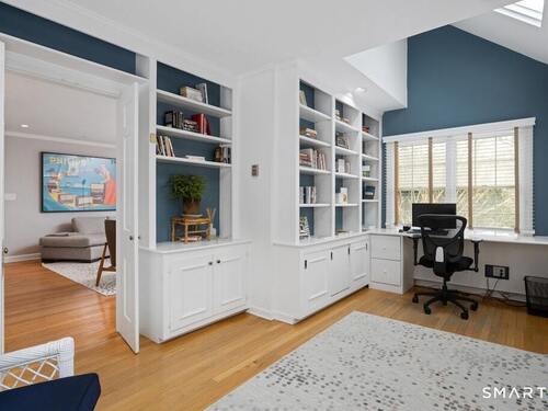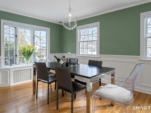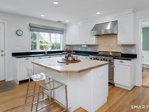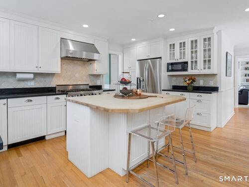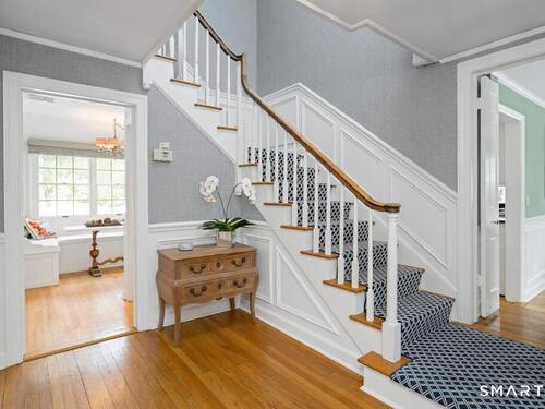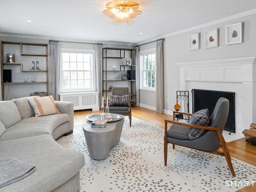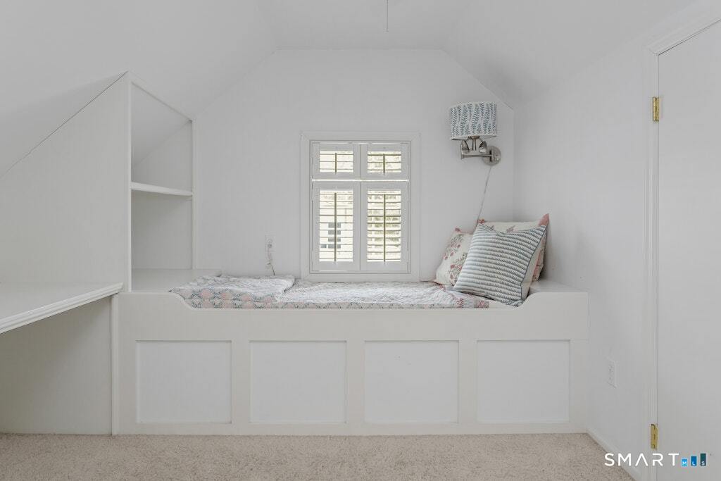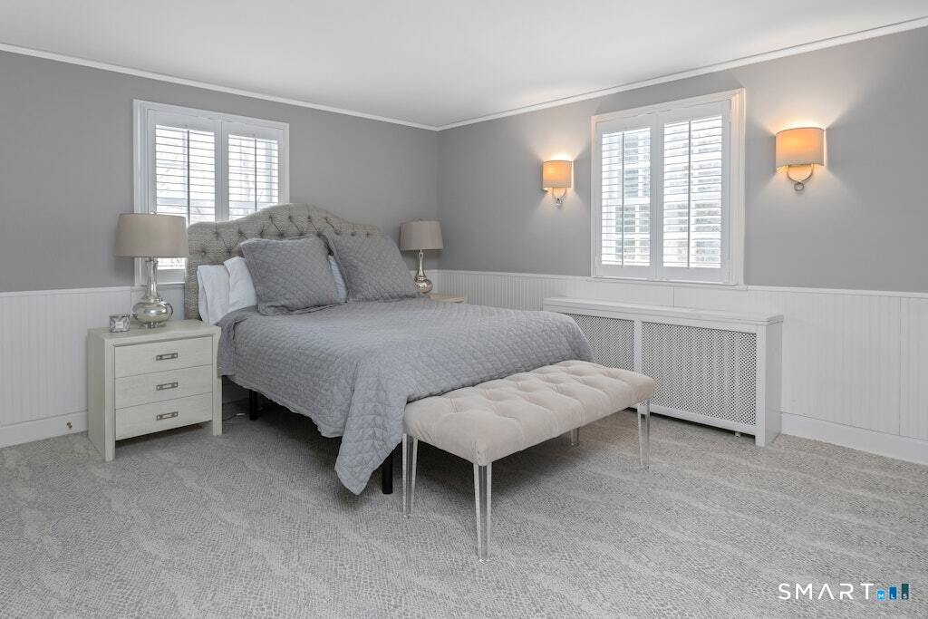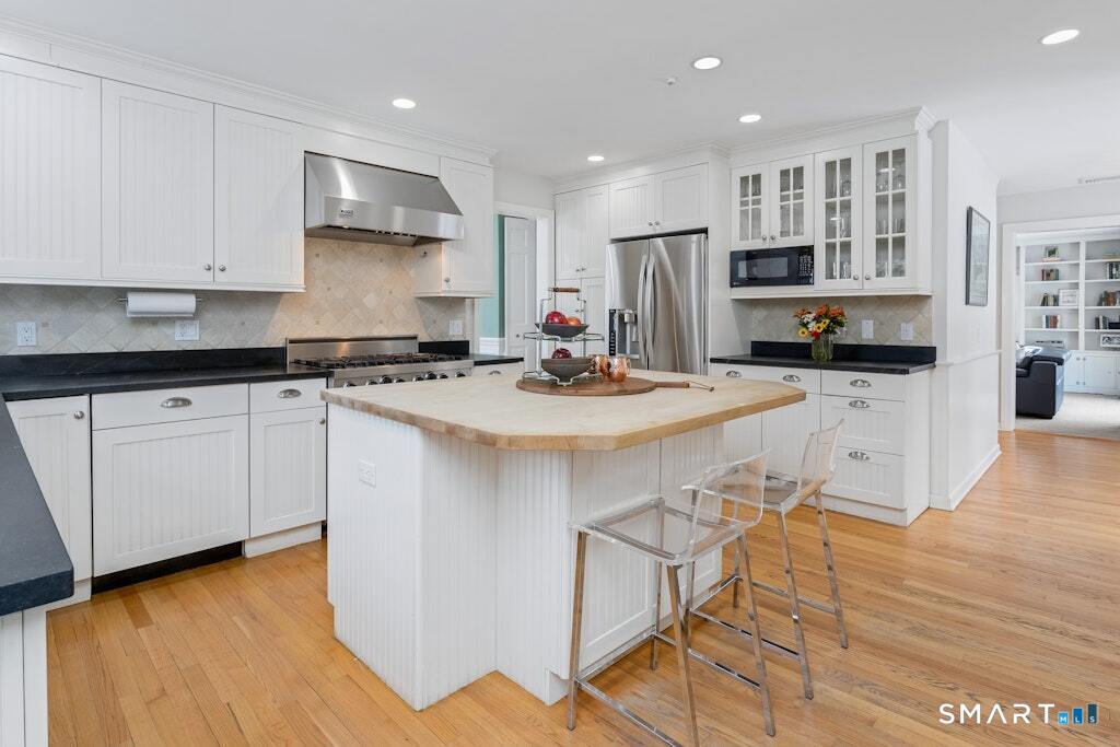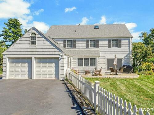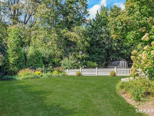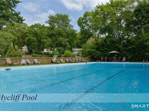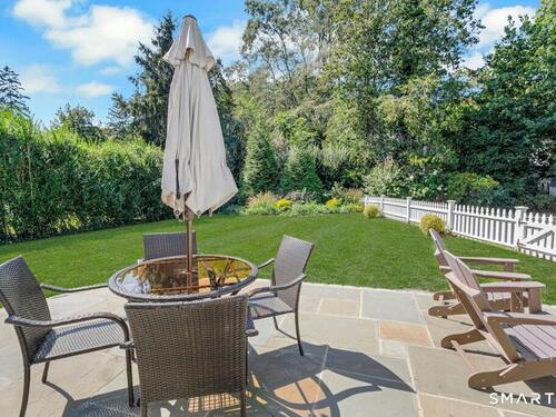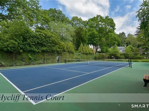 Nestled at the end of a tranquil cul-de-sac in the prestigious Hycliff neighborhood, this remarkable five-bedroom Colonial presents a sophisticated blend of timeless elegance and modern comfort. A gracious foyer introduces beautifully scaled interiors, including a refined living room with fireplace, a sun-drenched first-floor office, and an inviting formal dining room designed for memorable gatherings. The gourmet eat-in kitchen showcases rich soapstone countertops, center island, and seamless access to the two-car garage for effortless daily living. The expansive family room opens to a private patio and a fenced, level backyard - an idyllic setting for entertaining and serene outdoor relaxation. The second level features a luxurious primary suite offering three closets and a spa-inspired bath, accompanied by three generously proportioned bedrooms - one enhanced by a whimsical hidden playroom - and a well-appointed hall bath. A versatile third-floor suite or fifth bedroom provides exceptional flexibility for guests, a home office, or creative retreat. The finished lower level further elevates the home with a media/recreation lounge, full bath, guest/nanny suite, and a convenient walk-out laundry room. Residents enjoy access to coveted neighborhood pool, tennis courts, and playground. Ideally positioned near downtown conveniences & Stamford/Old Greenwich Metro North