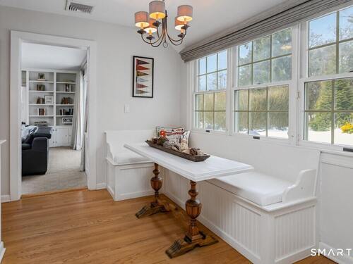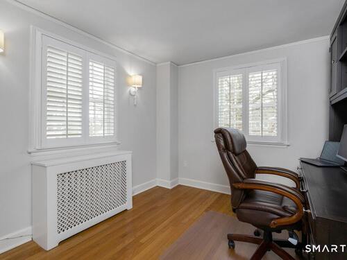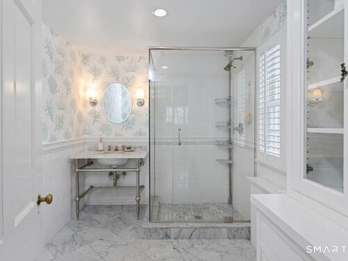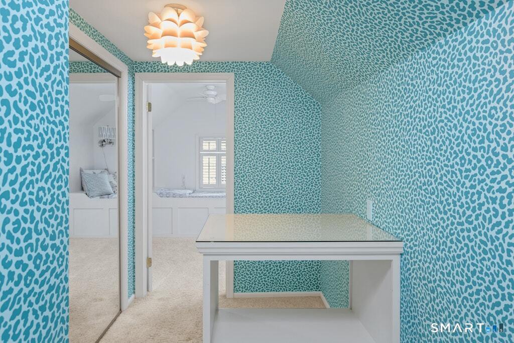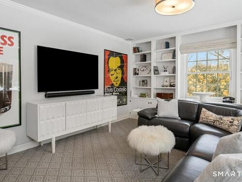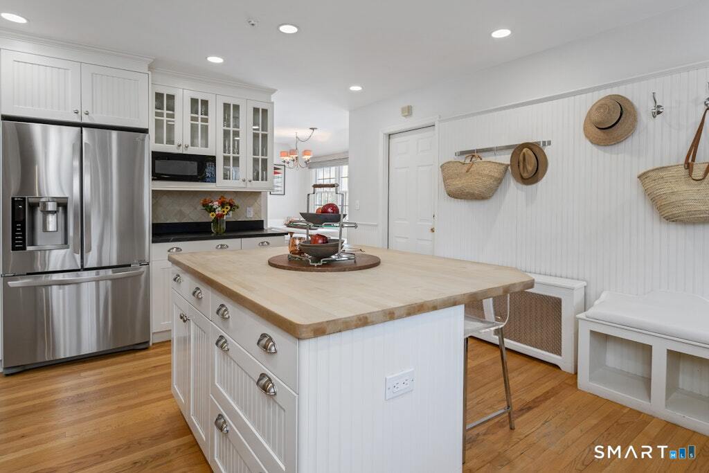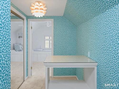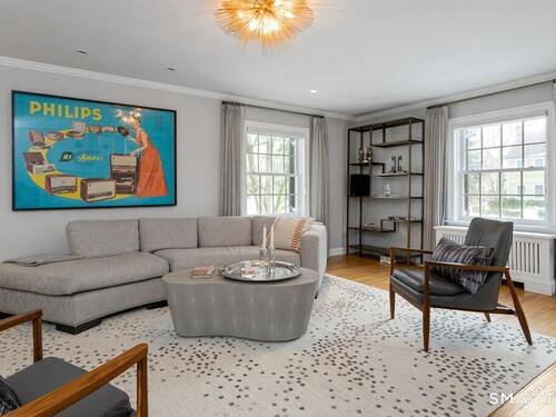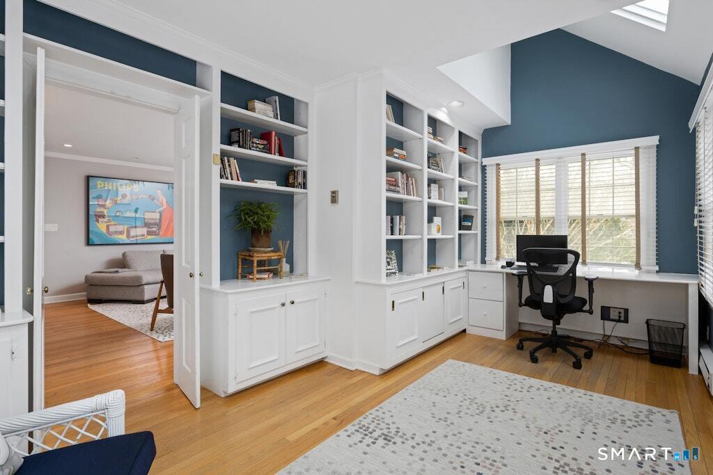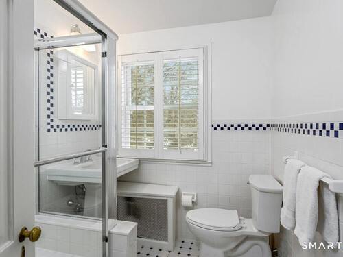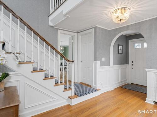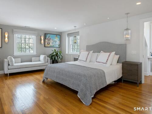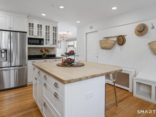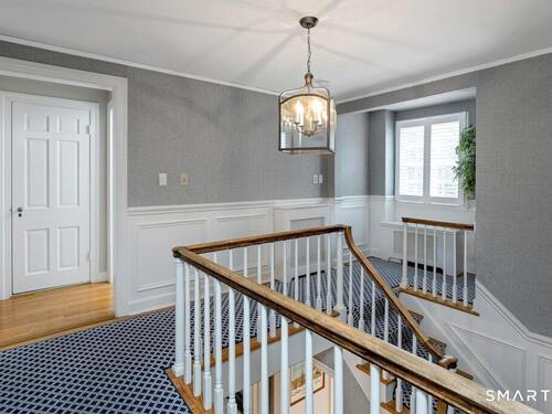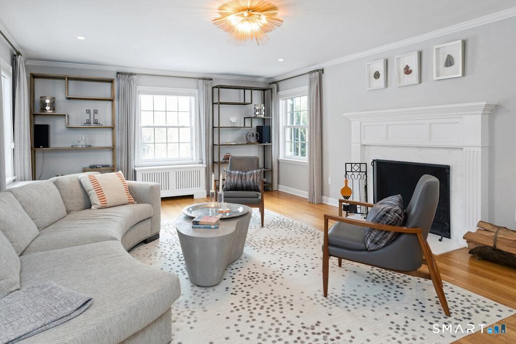 Nestled at the end of a tranquil cul-de-sac in the prestigious Hycliff neighborhood, this remarkable five-bedroom Colonial presents a sophisticated blend of timeless elegance and modern comfort. A gracious foyer introduces beautifully scaled interiors, including a refined living room with fireplace, a sun-drenched first-floor office, and an inviting formal dining room designed for memorable gatherings. The gourmet eat-in kitchen showcases rich soapstone countertops, center island, and seamless access to the two-car garage for effortless daily living. The expansive family room opens to a private patio and a fenced, level backyard - an idyllic setting for entertaining and serene outdoor relaxation. The second level features a luxurious primary suite offering three closets and a spa-inspired bath, accompanied by three generously proportioned bedrooms - one enhanced by a whimsical hidden playroom - and a well-appointed hall bath. A versatile third-floor suite or fifth bedroom provides exceptional flexibility for guests, a home office, or creative retreat. The finished lower level further elevates the home with a media/recreation lounge, full bath, guest/nanny suite, and a convenient walk-out laundry room. Residents enjoy access to coveted neighborhood pool, tennis courts, and playground. Ideally positioned near downtown conveniences & Stamford/Old Greenwich Metro North