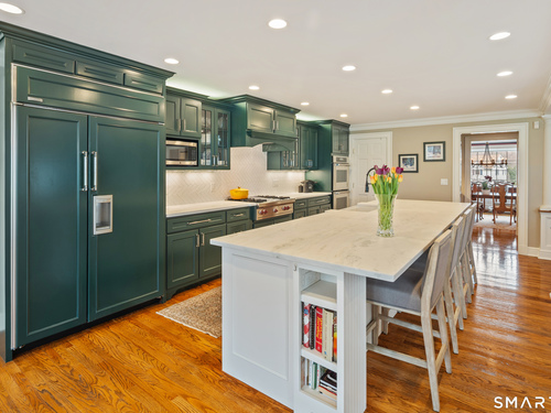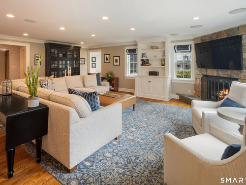 An exceptional opportunity to own in the desirable South of the YMCA neighborhood featuring four bedrooms & 4 1/2 baths, this home is a perfect mix of elegance and practicality. Taken down to the studs and rebuilt in 2006 - this home has it all. From the moment you step inside, you'll be captivated by the sophisticated details, including elegant moldings and wainscoting, rich hardwood floors and sunlit living spaces. The Living room boasts a wood burning fireplace and both LR and DR feature large bay windows. The library accessed off the LR has a trey coffered ceiling and a door to the terrace. Step through to the incredible oversized family room with gas fireplace which is wide open to an updated kitchen complete with top of the line stainless steel appliances, a walk-in pantry and a huge quartzite island. The breakfast nook opens to a charming terrace with a built-in gas grill and a large pergola with retractable shades. Upstairs an incredible primary suite is accented by another gas fireplace, a gorgeously updated bath and huge walk-in closet. There is a large bonus room with vaulted ceiling and three additional bedrooms, two with walk in closets and their own bath and one with access to a hall bath. The unfinished basement is 1784 square feet and is completely dry awaiting your finishing touches! But the piece de la resistance is the over 1 acre of beautifully landscaped level yard perfect for family gatherings, or peaceful relaxation!