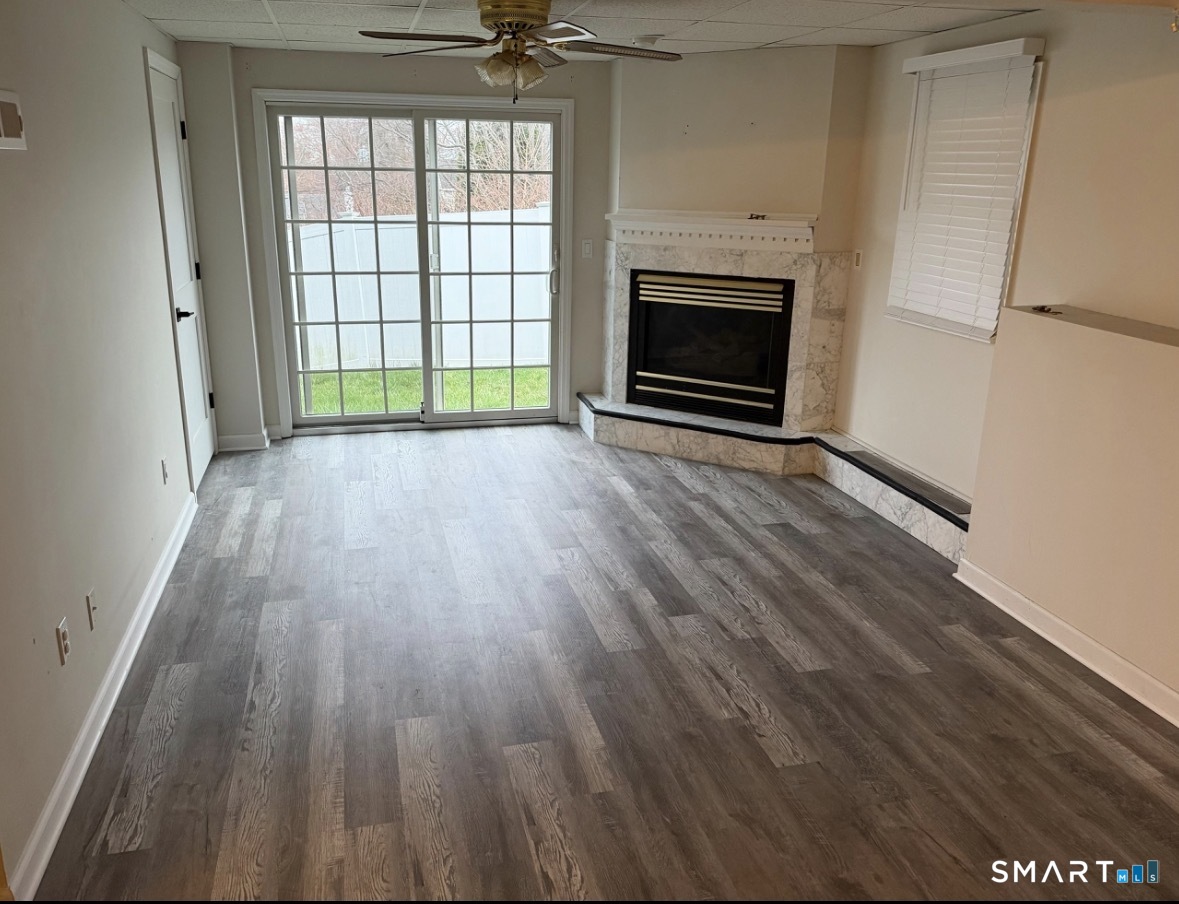 Ceiling Fan, Gas Log Fireplace, Sliders