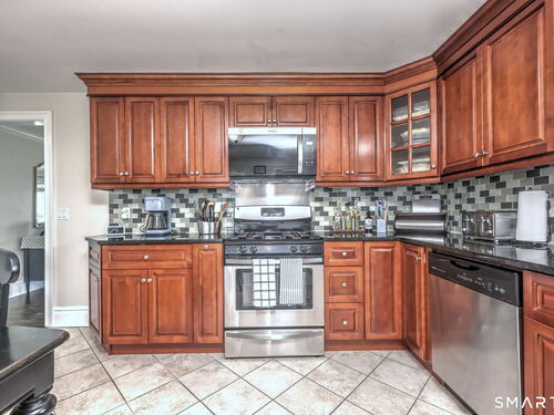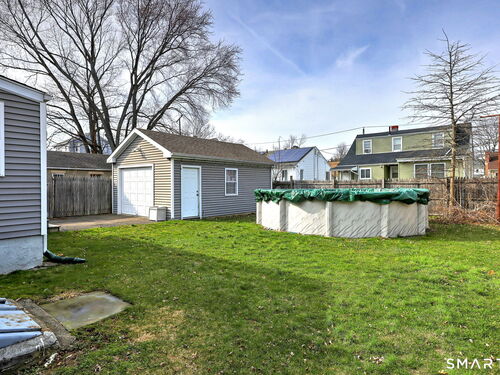 Home Sweet Home! Welcome to this beautifully updated 2 bedroom, 2 full bath ranch, ideally located on a quiet cul de sac. The main level offers an inviting living room with a wood burning fireplace, creating a comfortable and welcoming gathering space. The large eat in kitchen is truly the heart of the home, featuring stainless steel appliances, granite countertops, a tiled backsplash and tiled flooring. Just off the kitchen, the light and bright sunroom provides additional space, perfect for relaxing and everyday enjoyment. Two generously sized bedrooms and a full hall bath complete the main level. The partially finished lower level adds flexibility with space for a family or recreation room, a second full bath, laundry area, and ample storage. Outside, enjoy the level, fenced backyard with an above ground pool, along with a detached one car garage for added convenience. Additional features include gleaming hardwood floors and central air. A wonderful opportunity for easy one level living -don't miss this home!