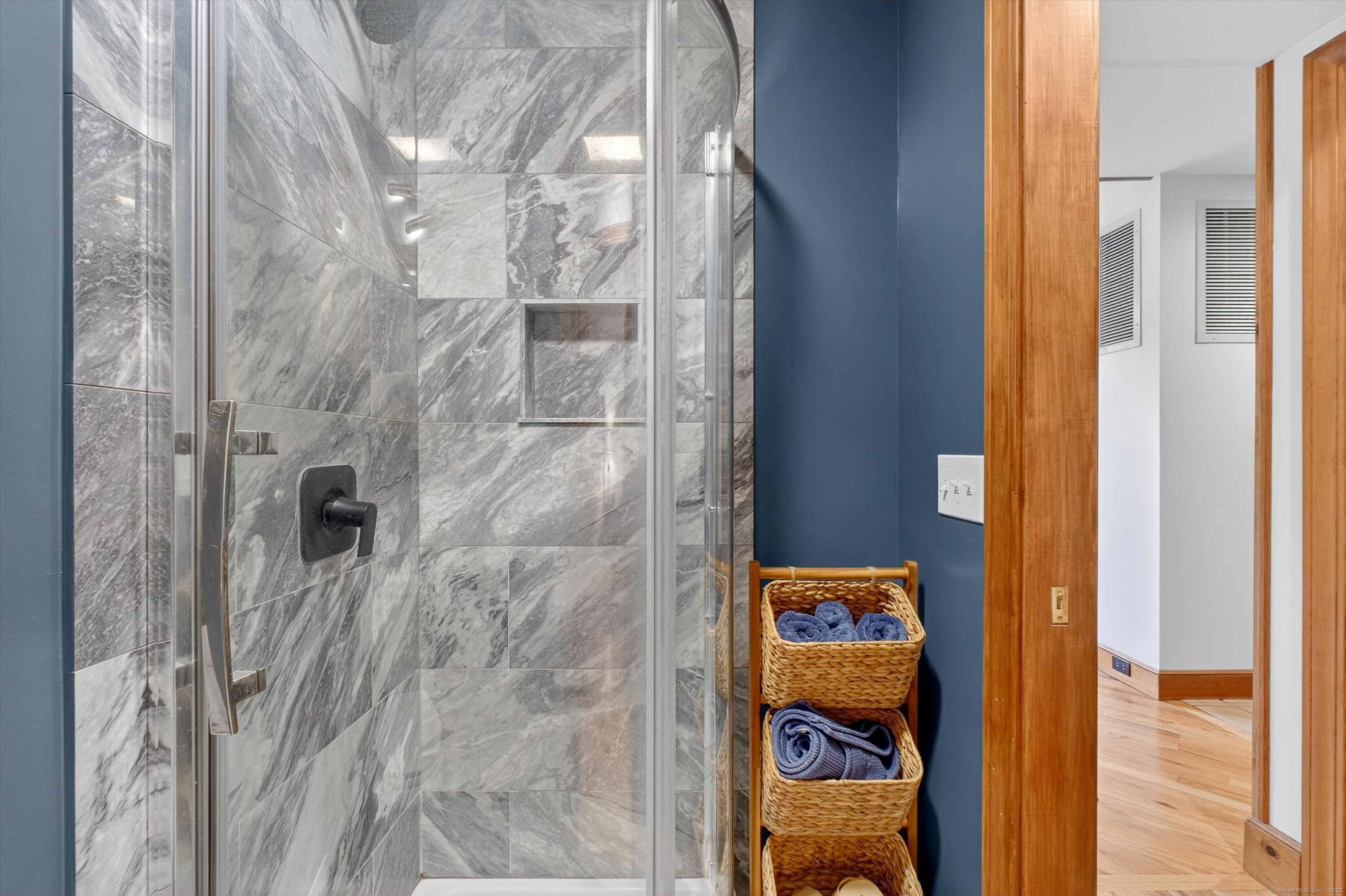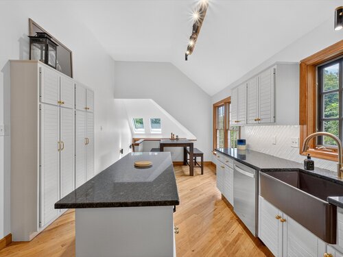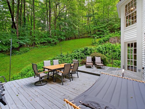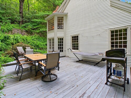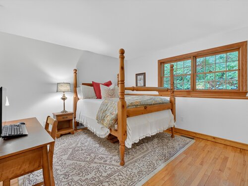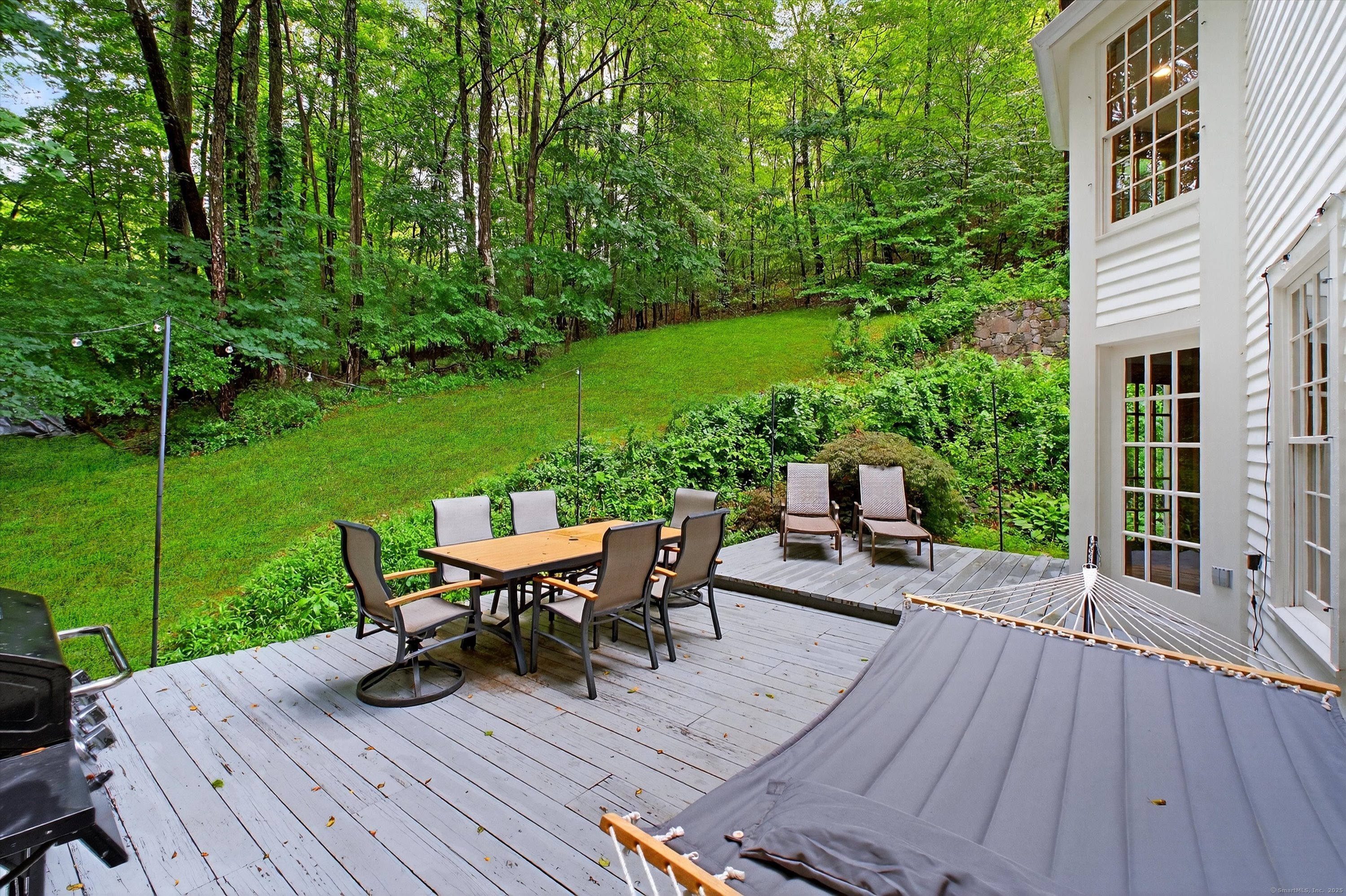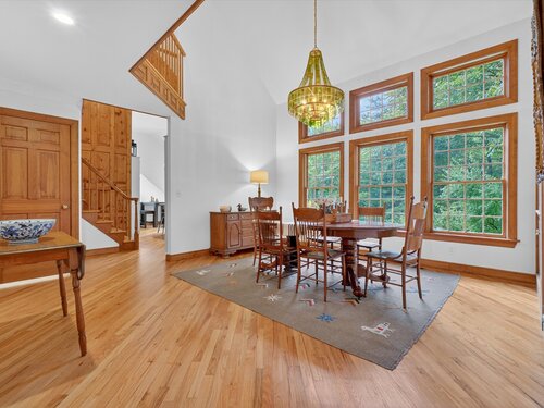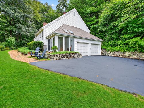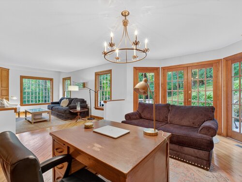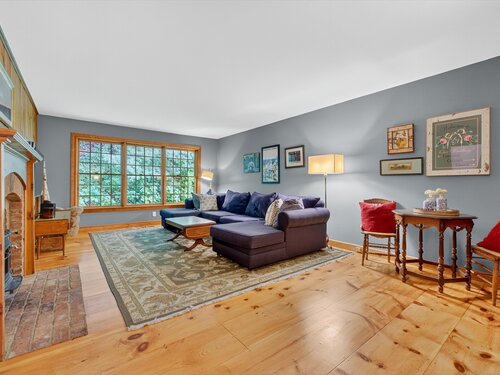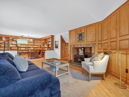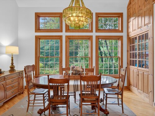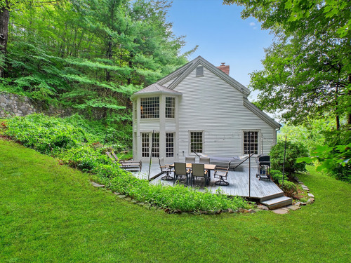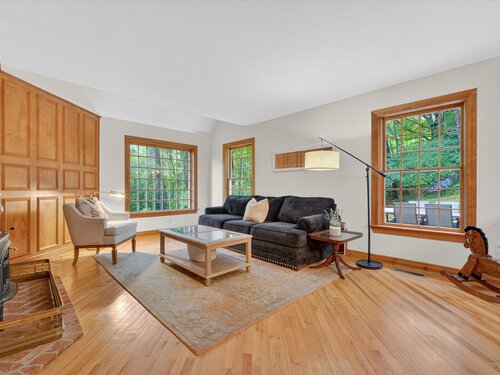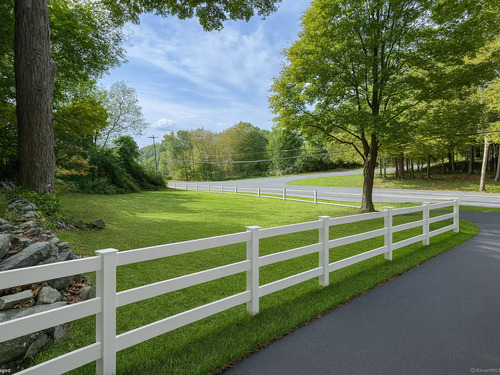 Welcome to 35 Poverty Hollow Road, an idyllic retreat nestled in southwest Newtown with sweeping views of the scenic Red Gate Farm. This beautiful hilltop home offers privacy, timeless charm, and modern updates, making it truly move-in ready. Inside, the open floor plan highlights custom woodwork and built-ins throughout, with a spacious family room featuring wide-plank hardwood floors and two fireplaces with Vermont Castings wood stoves, the perfect backdrop for cozy New England evenings. Walls of glass in the sunroom invite natural light and year-round views of the serene property, while the formal dining room and updated eat-in kitchen with new counters, backsplash, appliances, and under-mount lighting create ideal spaces for both casual living and entertaining. Upstairs, the primary suite is a peaceful retreat with a new skylight in the bath, while additional bedrooms provide flexibility for guests, family, or a home office. Vaulted ceilings add architectural character and volume, enhancing the sense of openness in every room. This home has been extensively improved, offering buyers peace of mind with modern updates. Recent enhancements include a new roof, new septic system, renovated kitchen, refinished hardwood floors, new carpets in the bedrooms, freshly painted interiors including ceilings, and updated smoke and carbon monoxide detectors, outlets, and light switches.