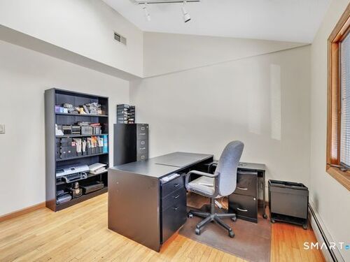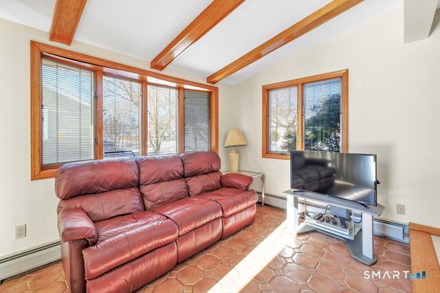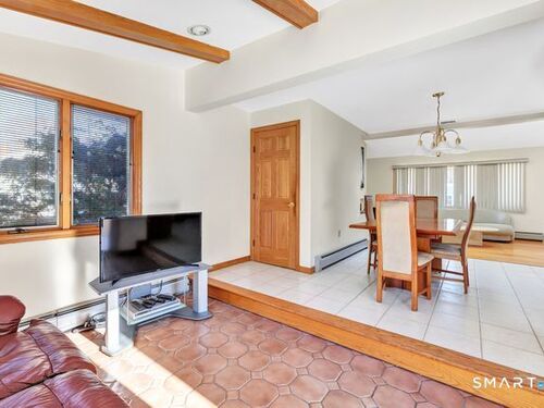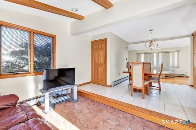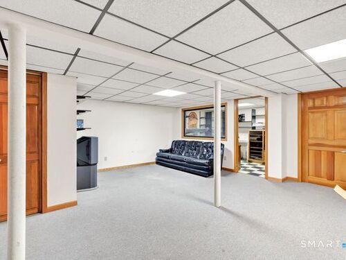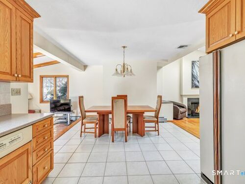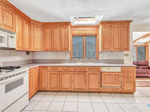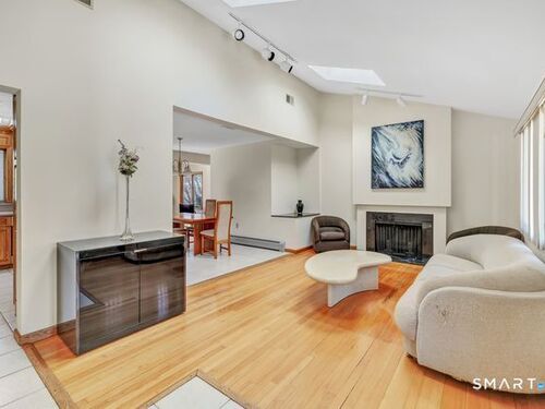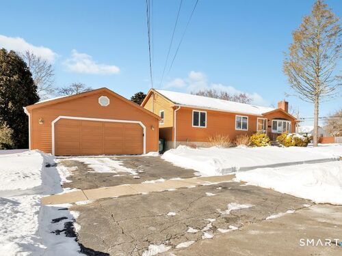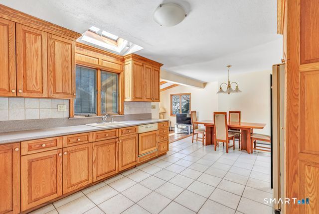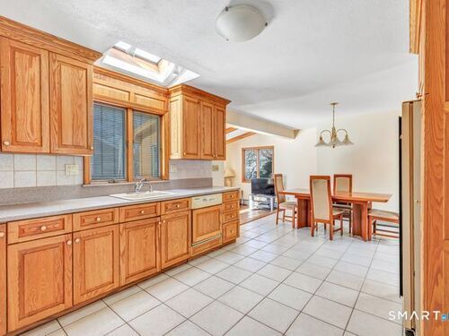 Discover the charm of this beautifully maintained ranch, offering effortless one-level living and an inviting, open feel throughout. The sun-filled living room features hardwood floors, a cozy fireplace, vaulted ceiling, and dual skylights that create a bright, airy atmosphere. The spacious kitchen, also enhanced by a skylight, includes a tile floor and a dedicated dining area perfect for everyday meals or gatherings. A warm and comfortable family room opens directly to a brand new deck overlooking the level backyard, ideal for relaxing or entertaining. The renovated bathroom offers a spa-like touch with a stall shower and jacuzzi. All three bedrooms feature hardwood floors; one is currently used as an office and showcases its own skylight and vaulted ceiling. The finished lower level provides fantastic bonus space, including a playroom, a separate music room, a walk-in closet, and an expansive workshop/storage area. A generous two car garage with a convenient rear door adds even more functionality. Situated on a corner lot on a quiet, no thru street, this home offers privacy while remaining close to local conveniences. It's an excellent option for down-sizers, first time buyers, or anyone seeking a condo alternative without sacrificing space or comfort. Pride of ownership shines throughout! Subject to probate court approval.