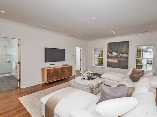 Excellent opportunity to walk into this completely finished new home and put your final touches on it. This 6 bedroom residence is set on a flat, level.70 acre property in a Greens Farms neighborhood embodying a perfect synergy of architectural excellence and an enviable location. Crafted for modern living by the esteemed architect Judith Larson, this 7,000+ square-foot home showcases unparalleled design and meticulous construction across two main levels that optimize light and space. The main level features a designer kitchen, formal dining room, family room, office, and living room. An additional laundry and changing room are on the first floor. Enhanced by Redcoat's signature oversized windows, doors, and 10-foot ceilings. The second level boasts 4 bedrooms, including a luxurious primary suite, along with the main laundry area. The third floor includes an additional family space and an office. The lower level includes a sixth bedroom, gym, and playroom. Additional amenities comprise of three-car garage, and a pool site.
