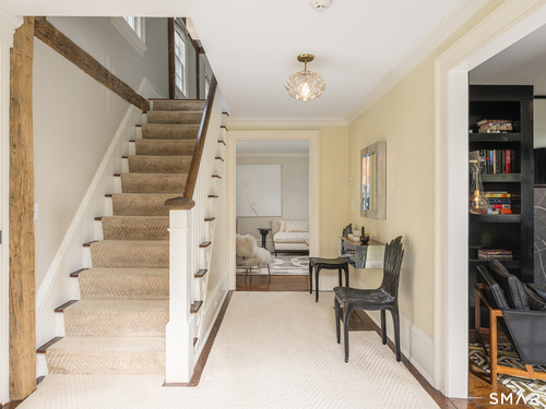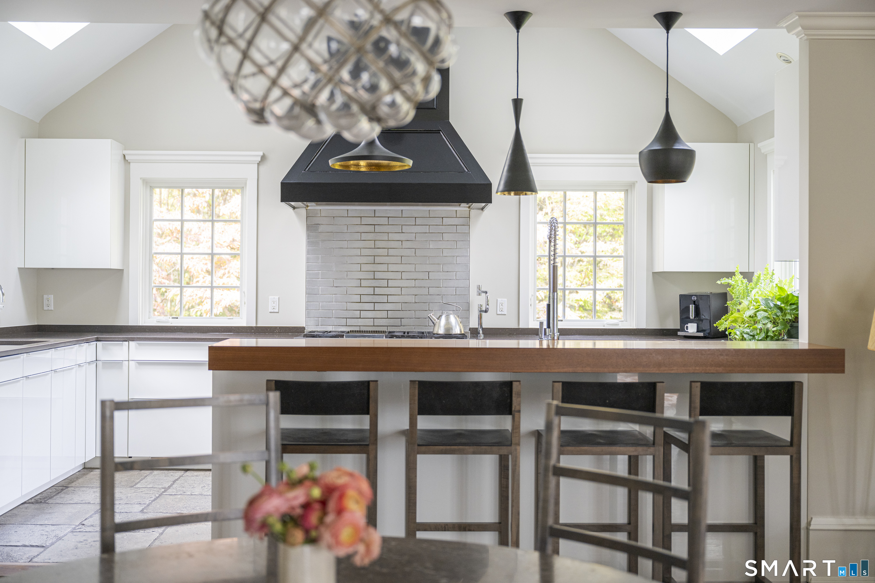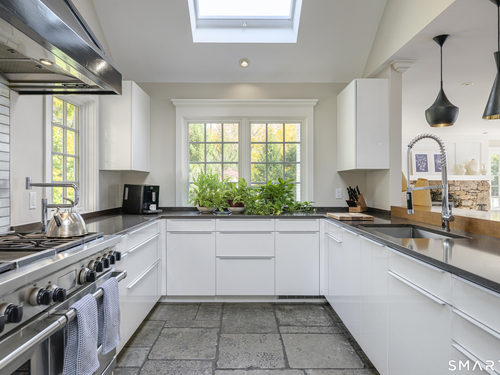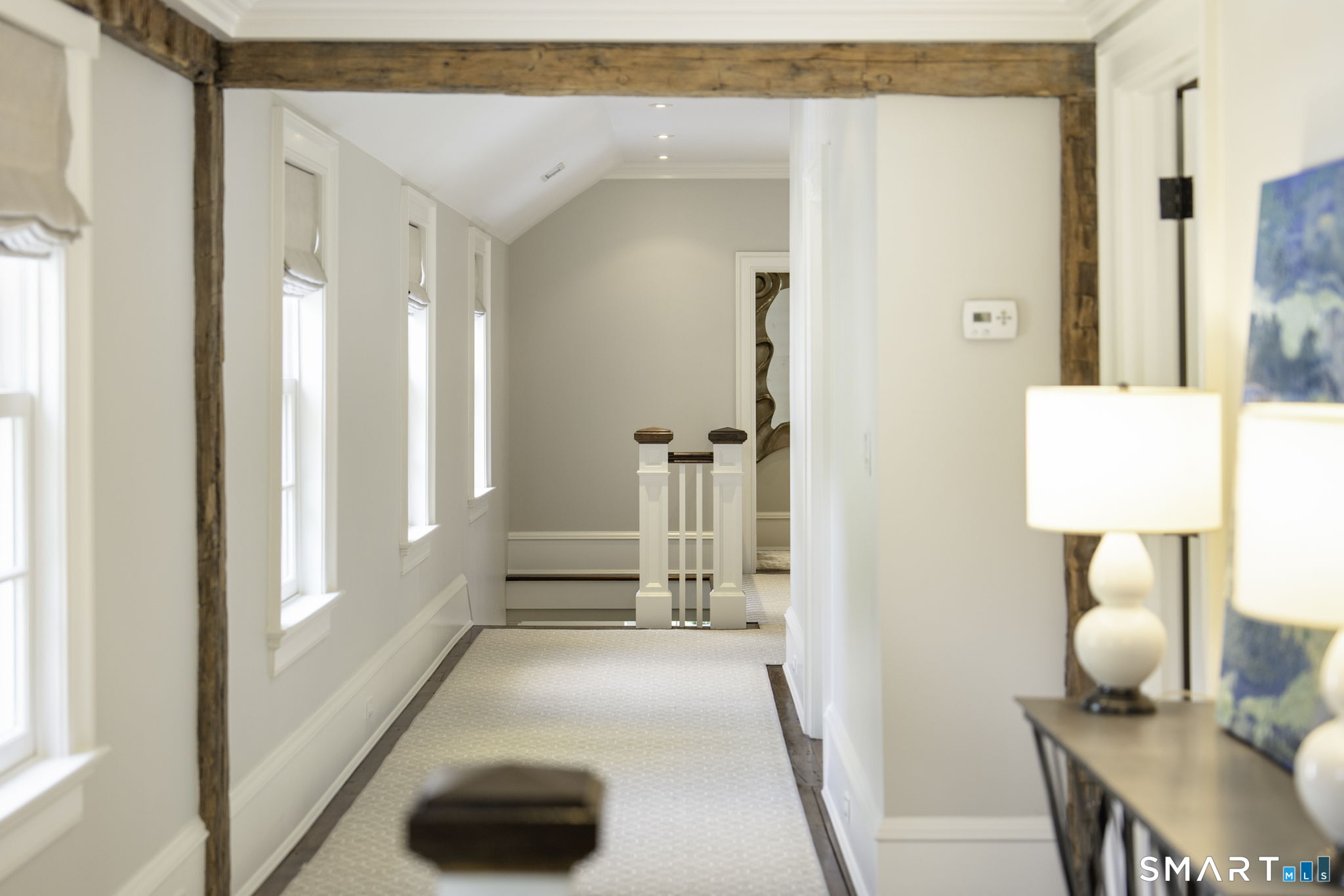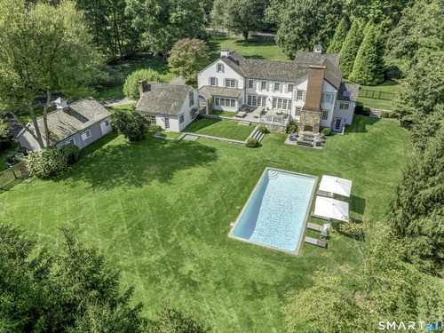Set along one of Hollow Tree Ridge Road's most desirable stretches, 366 Hollow Tree Ridge Road is a masterfully restored and expanded residence that artfully blends historic character with refined modern living. Reimagined by renowned builder Bo Malpass, the home offers 6 bds, 5.1 baths across 7,356 sq feet. Original character is preserved through antique beams and wide plank wood floors, while modern updates introduce a seamless flow and elevated functionality. Interiors curated by Kristen Fine enhance the home's cohesive aesthetic with understated luxury and timeless finishes. Sun-drenched living spaces unfold effortlessly, creating an ideal setting for both everyday living and elegant entertaining. The custom-designed Poggenpohl kitchen serves as the heart of the home, complemented by multiple inviting gathering spaces. A spacious primary suite and well-appointed secondary bedrooms provide comfort, scale, and flexibility. Set on 1.75 acres of beautifully landscaped grounds, the property features a Gunite pool and a charming guest cottage connected by a breezeway ideal as an in-law suite, private retreat, or dedicated work-from-home space. Ideally located with convenient access to town, train, and Darien's top-rated schools, this exceptional offering presents a rare opportunity to own a turnkey home where historic integrity and modern sophistication converge.