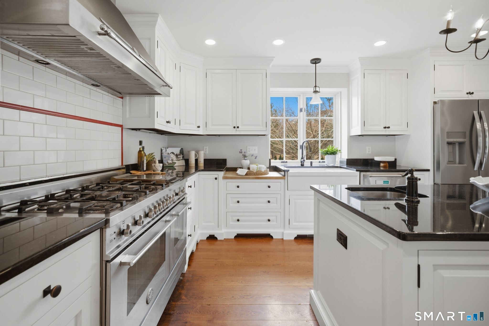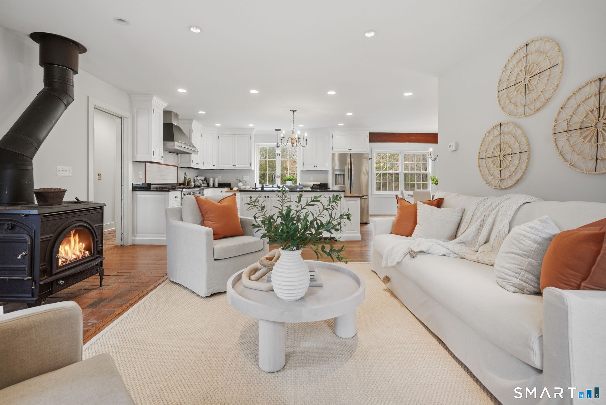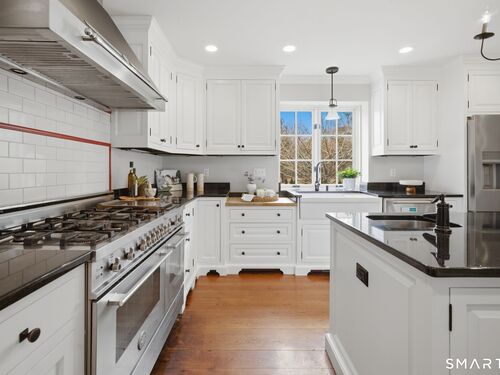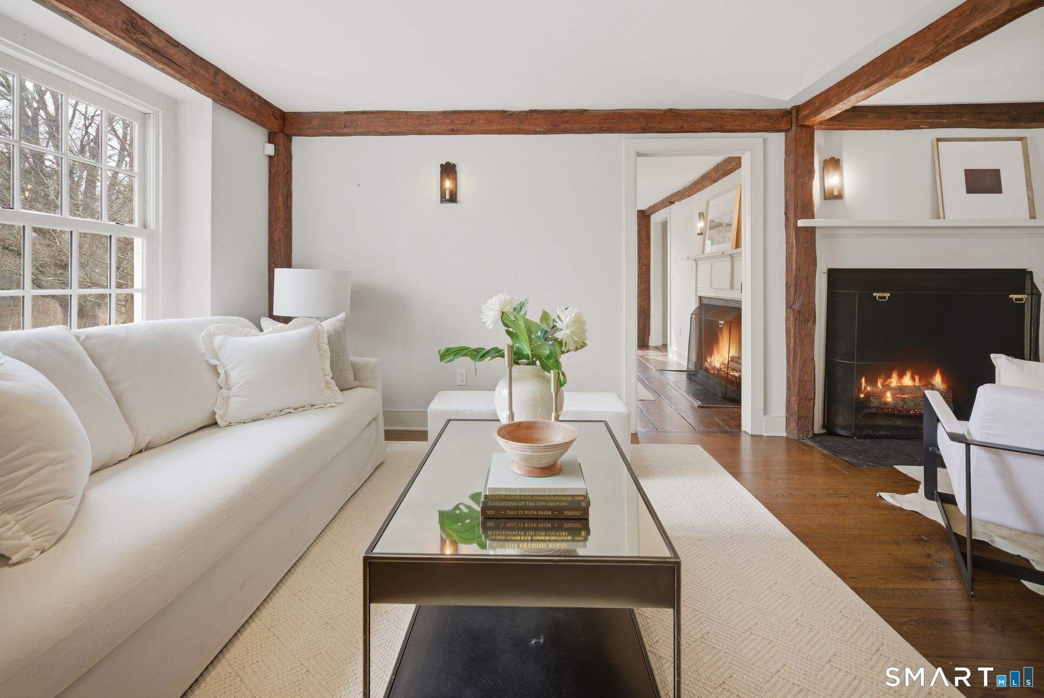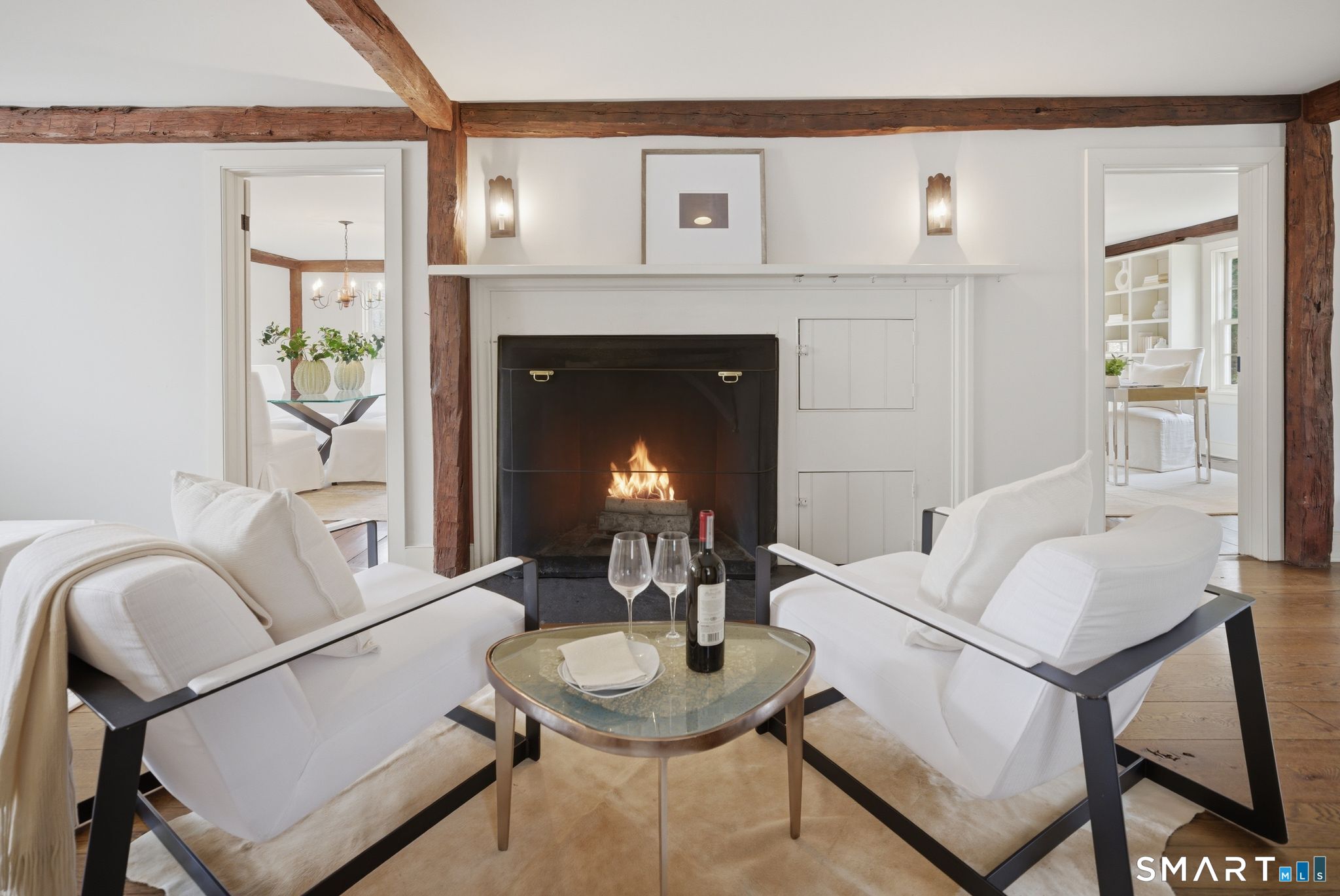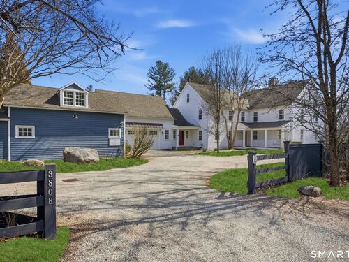 3808 Redding Road is the kind of property that feels discovered rather than found. A place where time has softened the edges, and the landscape tells its own story. Dating to 1769 and set on nearly eighteen acres of open fields and mature trees, this is one of Fairfield's earliest homes, thoughtfully rebuilt in 2008 to preserve its character with modern ease. Inside, the home unfolds with warmth and authenticity. Original beams and centuries-old wood floors ground each space, while natural light moves through refreshed interiors. At the center is a rare three-fireplace hearth - not just an architectural feature, but where the home gathers and winter evenings settle in. Four bedrooms and four and a half baths offer comfort and retreat, with a private balcony off the primary overlooking the property. Outdoors, the experience is equally compelling. Open land gives way to orchard rows planted with heirloom apple varieties, woodland edges, and a landscape long suited to small-scale farming. A historic barn, carriage house, and chicken coop continue the story, offering flexibility for guests, creative pursuits, or a return to its agricultural roots. It's a setting defined not only by its history, but by the space it provides - for gardens, horses, or simply privacy. Close to town yet entirely its own world, 3808 Redding Road is more than a home. It's a place to gather, slow down, and settle into something everlasting.