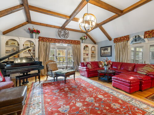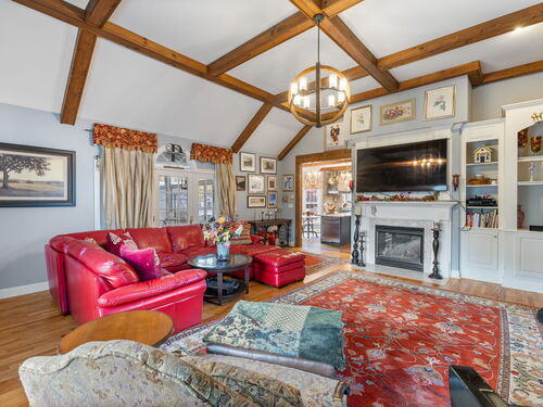 This traditional Newtown Colonial delivers space, quality, and versatility. Move-in ready with key updates already in place, it offers a comfortable layout with plenty of room to personalize. Inside, you'll find a spacious 5-bedroom, 3.5-bath design anchored by an updated kitchen with dual center islands, quartz counters, and high-end appliances. The open floor plan provides great flow for gathering and entertaining, including a huge 24x24 family room that connects directly to the kitchen. The home is currently arranged to support a home-based business, offering flexible office options for today's lifestyle. Enjoy year-round relaxation in the enclosed porch with a swim spa, or head to the lower level, thoughtfully redesigned to include an additional office or potential in-law setup with a full bath and a fireplace-equipped living room. Outside, on two peaceful acres in a cul-de-sac, you'll find a heated inground pool, spa, pool house, koi pond, and firepit-features that make the property feel like a private retreat. With a few cosmetic updates, this home can easily be elevated to its full potential. Bring your vision and make this property the showpiece of the cul-de-sac. Priced for a quick sale, the seller will make no repairs.