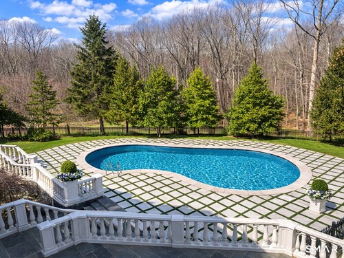 Situated within the gated enclave of Conyers Farm in backcountry Greenwich, this elegant French Chateau embodies architectural distinction, privacy, and resort-style living. Here, heritage and pastoral elegance converge, framed by rolling polo grounds, preserved countryside, and an atmosphere defined by quiet exclusivity. Set gracefully on more than 13 acres, comprised of mature woodlands, and formal gardens, the estate blends timeless European elegance with modern luxury amenities. Designed to accommodate both intimate living and large-scale entertaining, the residence offers thoughtful gathering spaces that balance grandeur with warmth. A dramatic two-story reception hall with a sweeping staircase is most inviting. The formal rooms include a ballroom-style salon, formal living and dining rooms, each anchored by a fireplace, creating a convivial atmosphere. Fine architectural details that include plaster moldings, boiserie library, intricate millwork, and multiple marble fireplaces, further defines the gracious interior. A chef's kitchen equipped with top-tier appliances is supported by a fully equipped butler's pantry, mud porch with tremendous storage +office blends seamlessly into relaxed family areas.