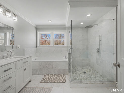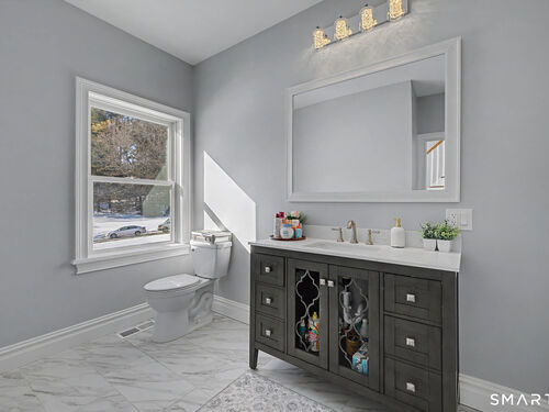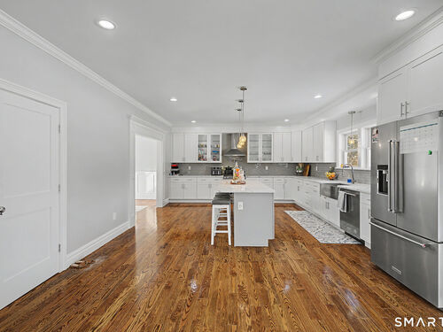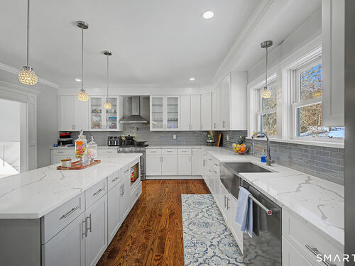 Offering over 4,500 sq. ft. of total living area, this 2020-built 4-bedroom, 4.5-bath Colonial showcases modern design in the heart of Sandy Hook. While town records reflect 3,012 sq. ft., the home features an additional 1,581 sq. ft. of professionally finished walk-out lower level with a full bath. The open-concept main level boasts hardwood flooring and a chef's kitchen with Calacatta-style quartz countertops, flowing effortlessly for entertaining. Four full baths, three-zone central air, and durable Hardie plank siding ensure efficiency and low-maintenance ownership. A rare opportunity for significant newer construction in a prime location