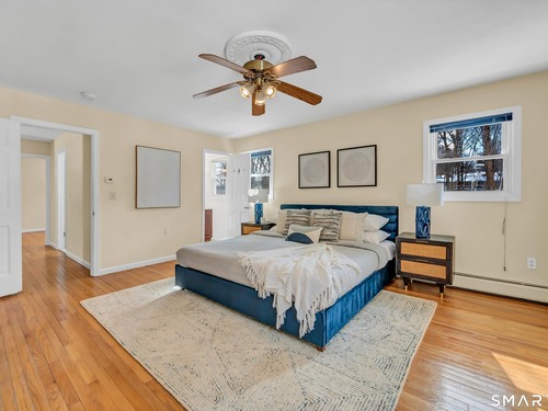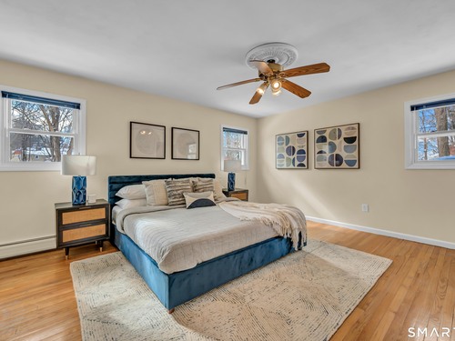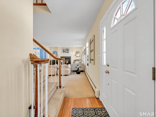 Classic 4 Bedroom Colonial in the coveted Aunt Hack/King Street area of Westside Danbury! Wonderful flow on the main level with an oversized living room with a cozy gas fireplace and large windows, a spacious formal dining room, bright eat-in kitchen with pantry and a separate home office. Additional main level features include a large foyer, convenient half bathroom, laundry closet and easy access to the two car garage. The kitchen walks out to the huge newer back deck overlooking peaceful woods. Upstairs you'll find four good-sized bedrooms and two full bathrooms, including a primary suite with an updated full bathroom, walk-in closet and dressing area, plus hardwood flooring throughout. Downstairs offers a flexible area for entertaining or a potential in-law suite, with a large, sunny finished space with brick fireplace and bathroom that walks out to the back yard, plus multiple unfinished storage areas. Many recent major updates, including a new oil tank and roof in 2021, new deck in 2022, new boiler in 2023, plus updated appliances, well pump and standby generator. Fantastic commute location just 5 minutes to I-84 or the NY line and walk to the West Lake Reservoir's fishing spot and Richter Park golf course, plus easy access to shopping and restaurants on Mill Plain Rd, The Danbury Fair Mall and town beach & boating on Candlewood Lake. Lovingly cared for-just move in and bring your personal touches!