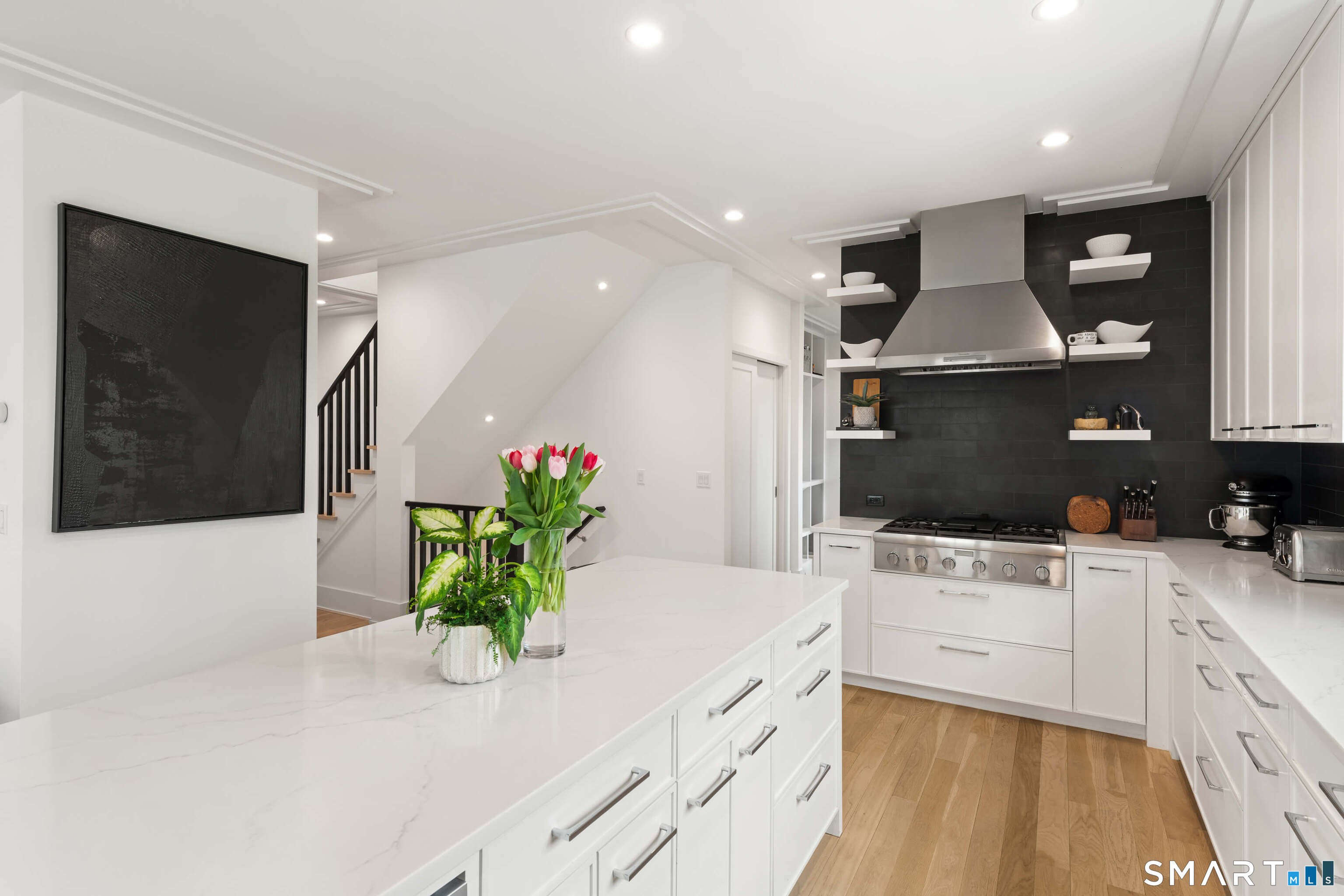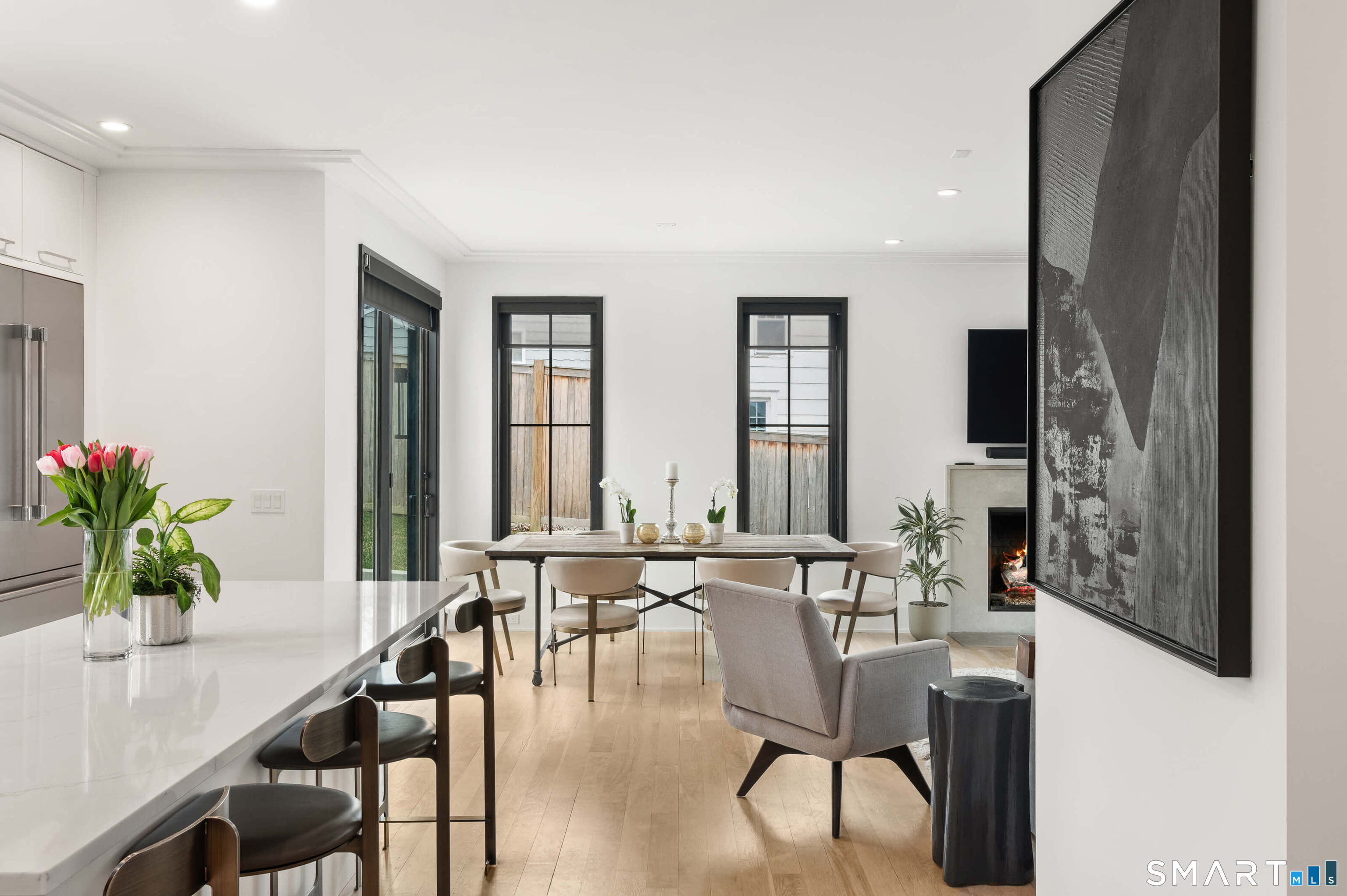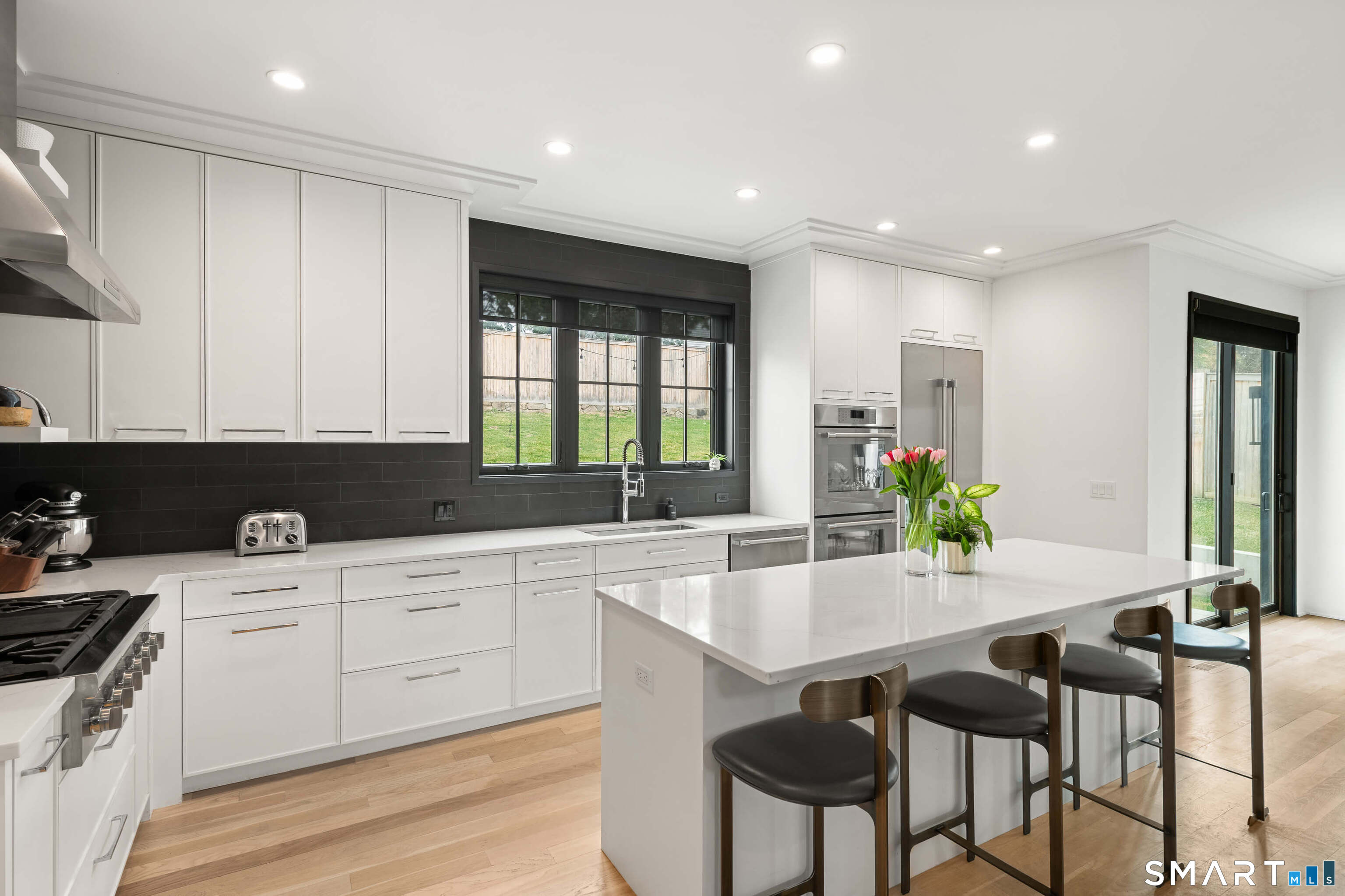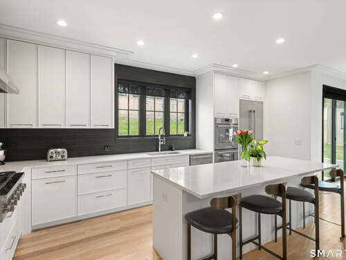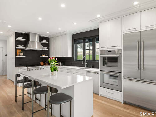 Built in 2022, 40 Richmondville Avenue offers generous scale, a thoughtful layout, and true move-in-ready ease. Bright, open-concept main level connects kitchen, dining, and living spaces, with high ceilings and oversized windows throughout. The kitchen features a full Thermador appliance suite, large island with integrated outlets, extensive cabinetry, walk-in pantry, and mudroom with built-ins. Upstairs includes a spacious primary suite with walk-in closet and spa-like bath with heated floors, soaking tub, and oversized shower. Two bedrooms are connected by a Jack and Jill bath, each with lofted spaces for added flexibility. Additional bedrooms offer options for guests, office, or evolving needs. Third floor provides a private, multi-purpose level, while the finished lower level includes polished concrete floors and a bar/kitchenette area for casual entertaining. Six bedrooms, five-and-a-half baths, and four finished levels offer exceptional flexibility. Located just minutes from downtown Westport, with easy access to shopping, dining, and beaches, in an area experiencing continued growth.
