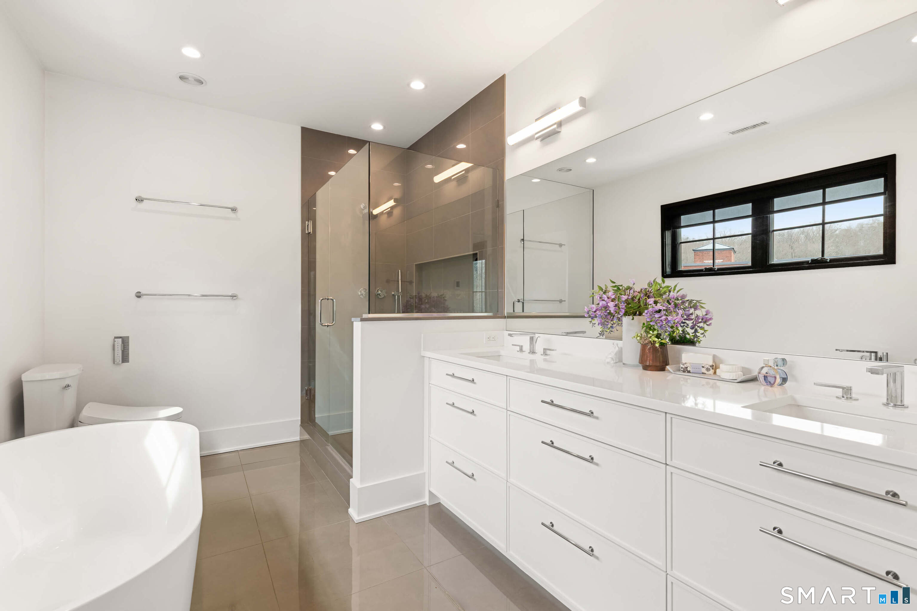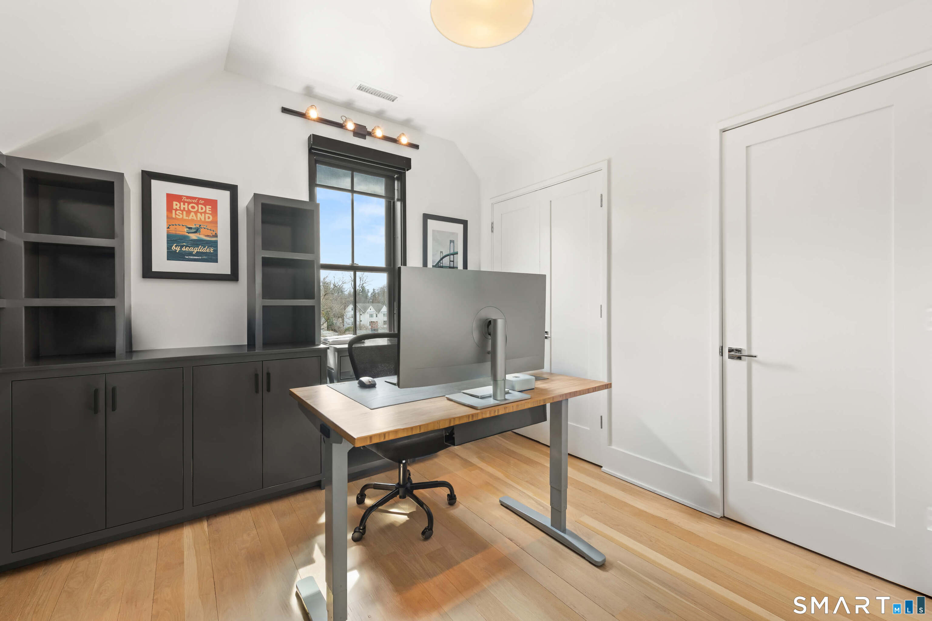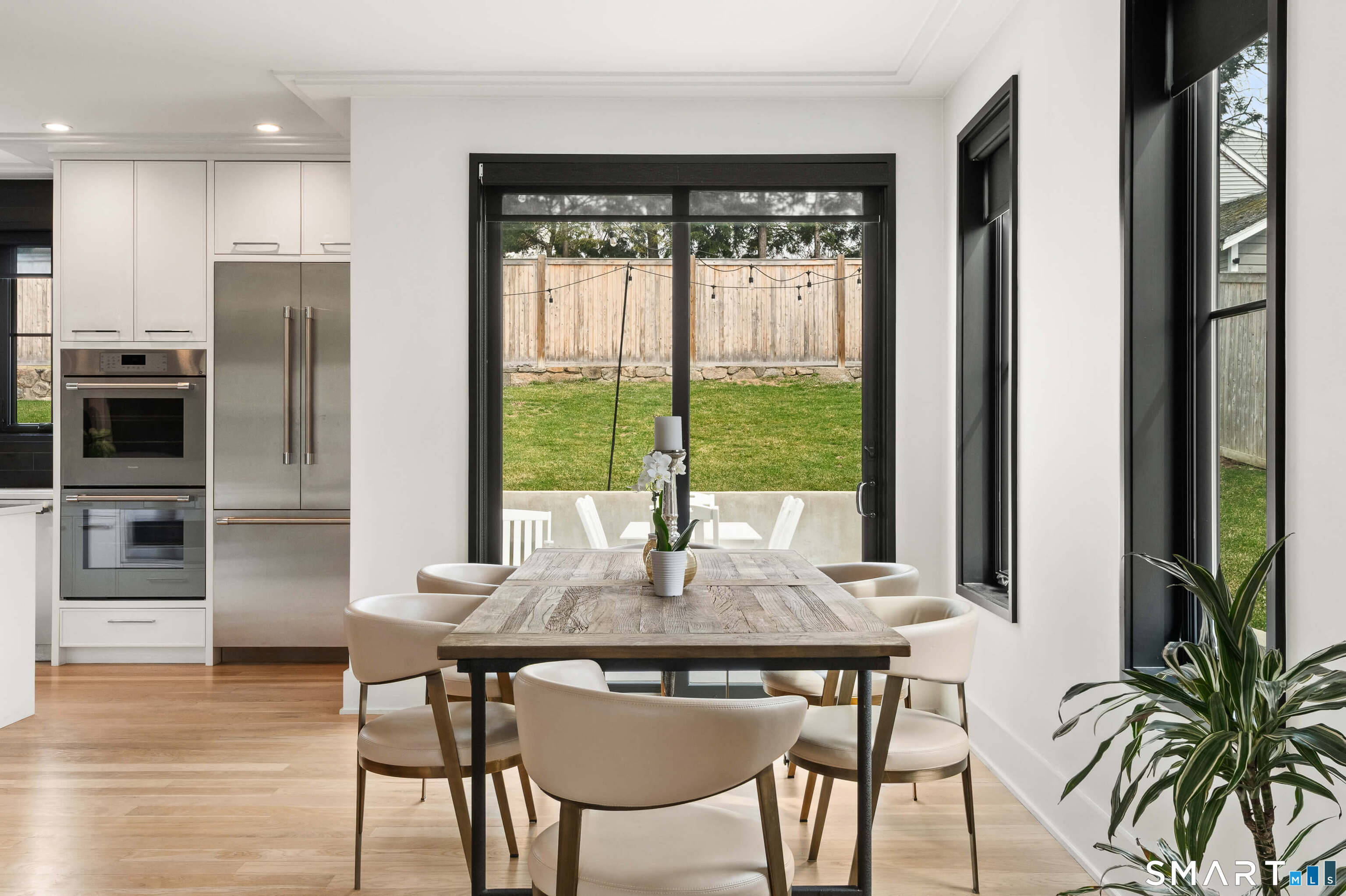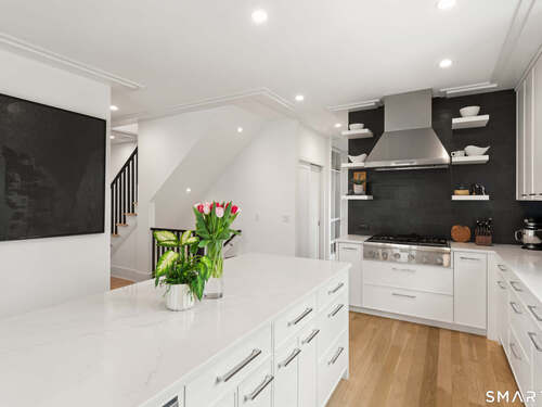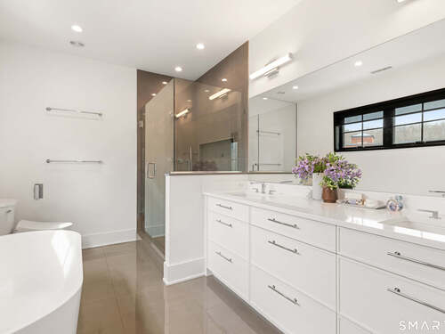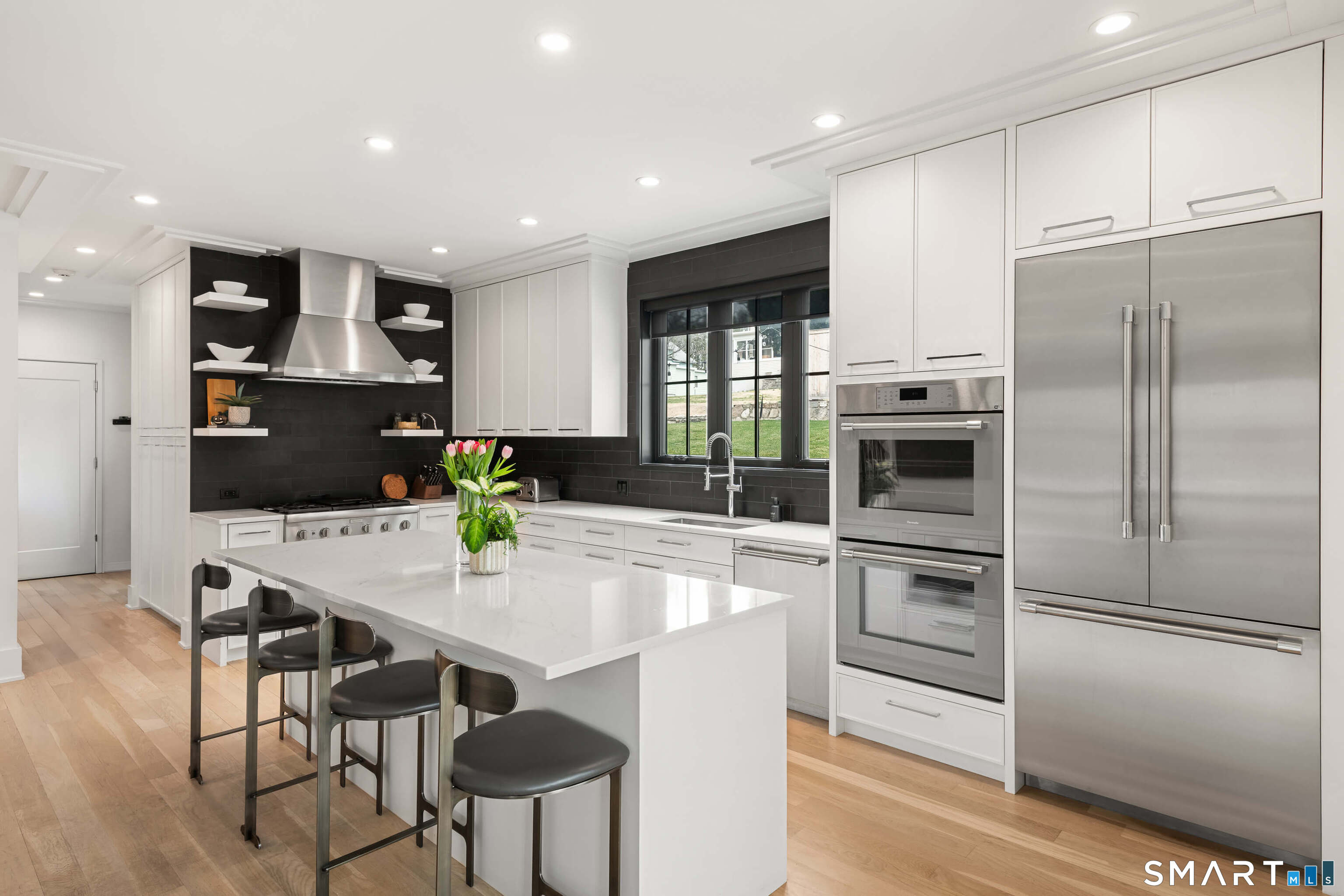 Built in 2022, 40 Richmondville Avenue offers generous scale, a thoughtful layout, and true move-in-ready ease. Bright, open-concept main level connects kitchen, dining, and living spaces, with high ceilings and oversized windows throughout. The kitchen features a full Thermador appliance suite, large island with integrated outlets, extensive cabinetry, walk-in pantry, and mudroom with built-ins. Upstairs includes a spacious primary suite with walk-in closet and spa-like bath with heated floors, soaking tub, and oversized shower. Two bedrooms are connected by a Jack and Jill bath, each with lofted spaces for added flexibility. Additional bedrooms offer options for guests, office, or evolving needs. Third floor provides a private, multi-purpose level, while the finished lower level includes polished concrete floors and a bar/kitchenette area for casual entertaining. Six bedrooms, five-and-a-half baths, and four finished levels offer exceptional flexibility. Located just minutes from downtown Westport, with easy access to shopping, dining, and beaches, in an area experiencing continued growth.