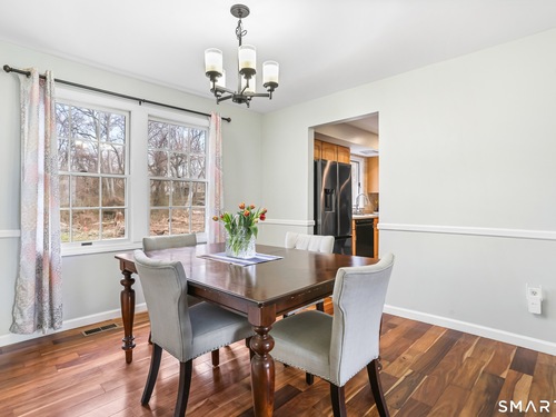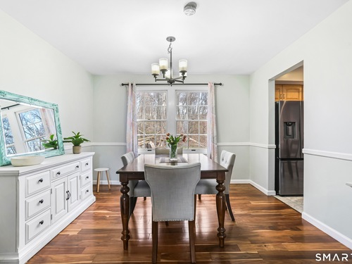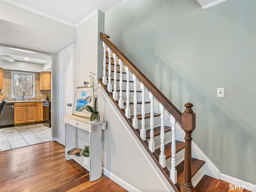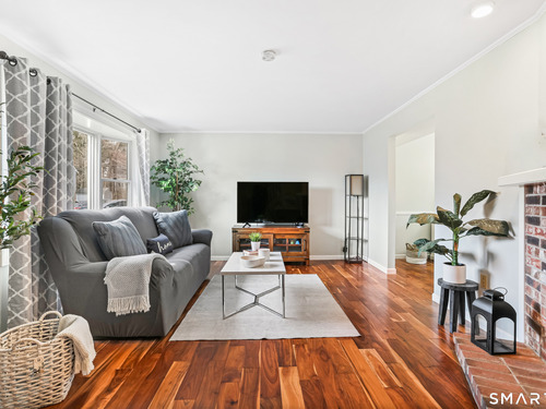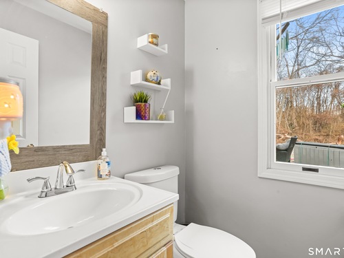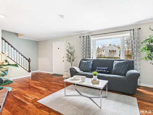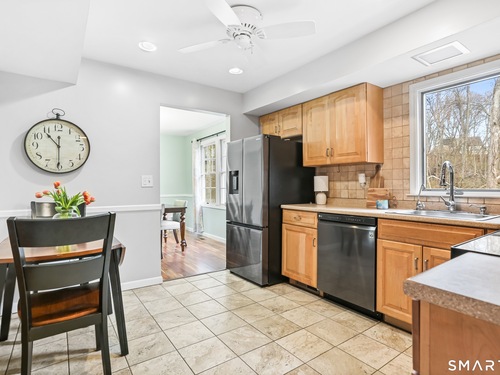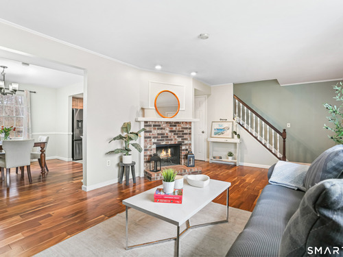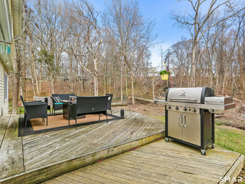 Welcome to this move-in ready Colonial, perfectly situated on a quiet cul-de-sac. The bright and inviting living room features a cozy wood-burning fireplace, creating the perfect space to relax or entertain. A formal dining room flows seamlessly into the eat-in kitchen, complete with updated appliances. A convenient half bath and laundry room complete the main level. Upstairs, you'll find a spacious primary bedroom with a walk-in closet, along with two additional generously sized bedrooms and a full bath. An attic with pull-down stairs provides excellent storage potential. Additional features include a one-car garage and a large wood deck, perfect for entertaining or just enjoying some time outside. The backyard backs up to the woods, giving you a nice sense of privacy. The location is ideal - close to restaurants and shopping, with easy access to Route 8 and the Merritt Parkway.