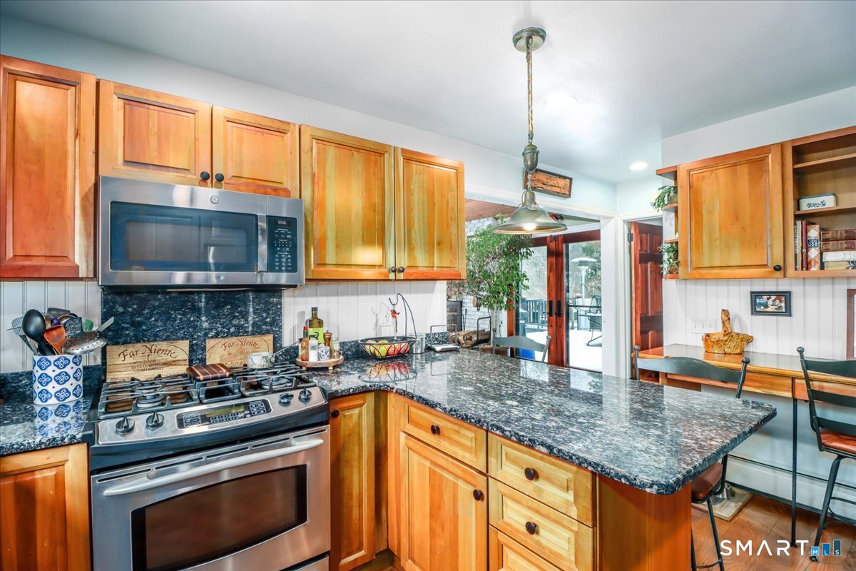 Be ready to be wowed! From professional landscaped lit walkway and gardens....to the custom floor plan of this 3 bed/3bath ranch. 40 Toll House is loved and improved upon by a local contractor. High end finishes from the Hardie board and Batton Board siding finished with Azek trim. The sun filled dining room is inviting. On the right you will find 2 of the 3 bedrooms and baths. The primary suite with a renovated bath with spa-like shower is located at the front corner of the home. There is an office or reading nook with views of the side garden. The second bedroom faces the rear of the home and is tranquil with glimpses of the park-like backyard. This wing of the home is completed with a hall bathroom in traditional grey and white. A glass pocket door opens to a well appointed kitchen with breakfast bar, this is the hub of the home and ideal for entertaining. Gas top burners with electric oven, dishwasher and refrigerator are less than 2 years with warranties in place. The oversized great room gives the feel of a mountain retreat. Think of the roaring fire while watching the snow fall in the backyard. A full bath to one side for guests and the 3rd bedroom to the other makes for a private guest area. The Fiberon deck is ready for outside entertainment with a flat back yard for out door sports. The lower level is ideal for a home office, the heated room is great for media. Current owner uses lower level for workshop can easily become an in law or gym!