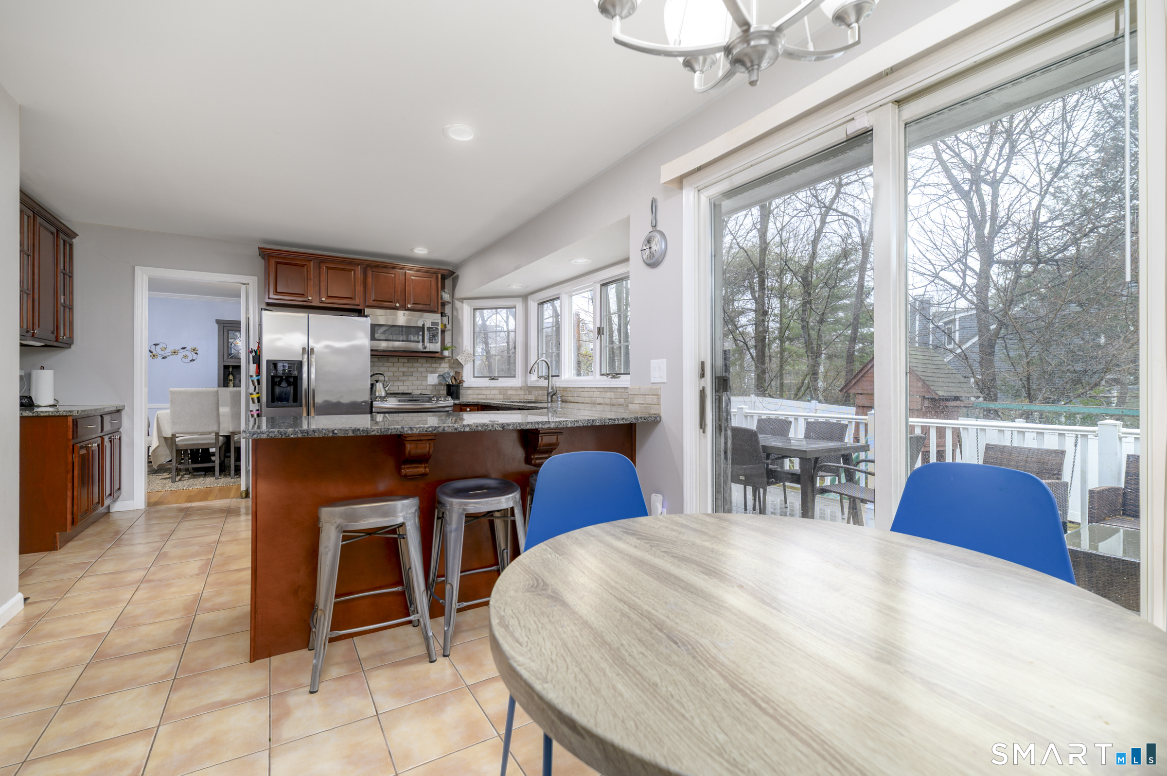 Balcony/Deck, Granite Counters, Double-Sink, Pantry, Sliders, Tile Floor