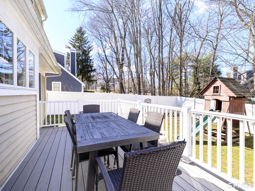 Well cared for Fieldstone colonial in most convenient location. Spacious rooms, living room with fireplace and hardwood floors, formal dining room,large newer eat-in-kitchen with pantry. Sliders open onto the durable maintenance free deck where you can enjoy outdoor dining while you watch loved ones play safely in the fenced in yard. Primary bedroom with tray ceiling, huge en-suite bath and walk in closet. The two additional bedrooms (with Jack and Jill bath) can easily each accommodate 2 persons. Steps away from Barrett Park, bus line, shopping and houses of worship. Fridge and freezer in garage are excluded.