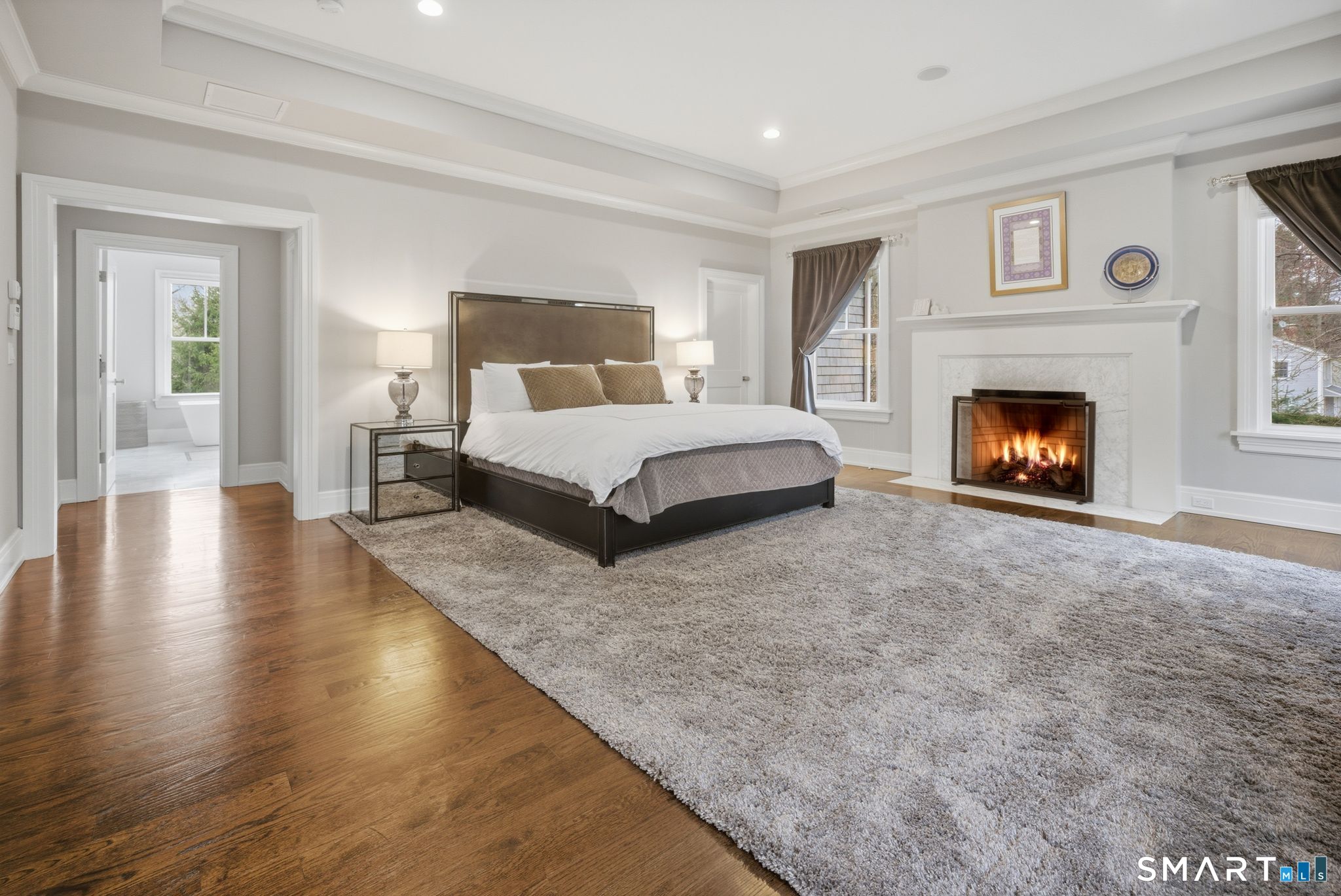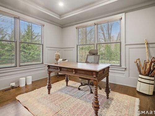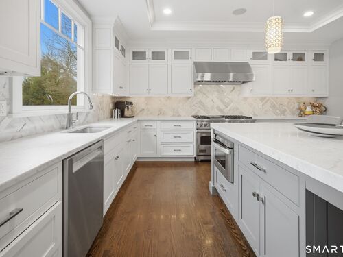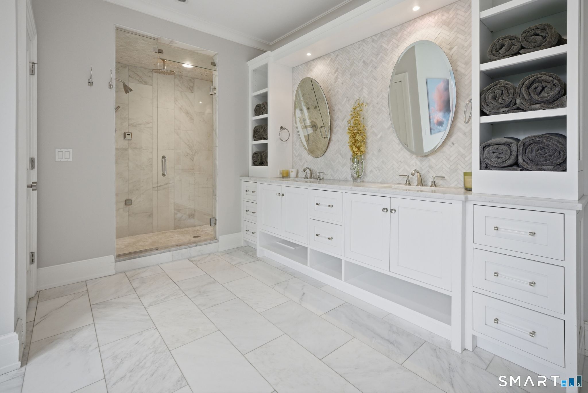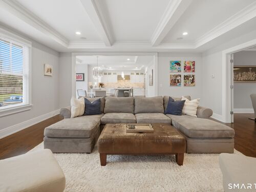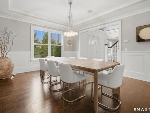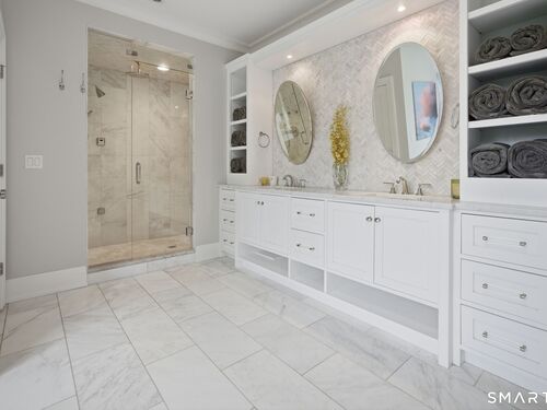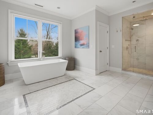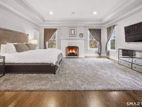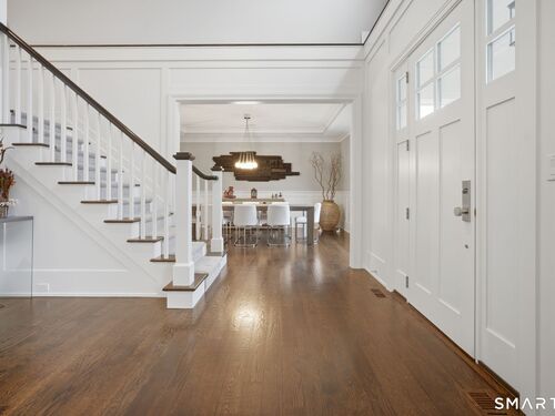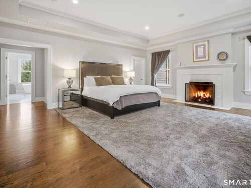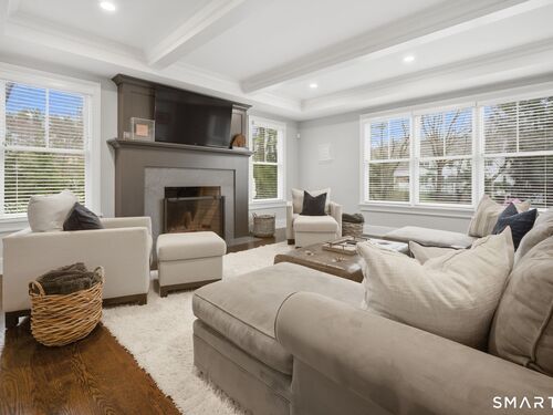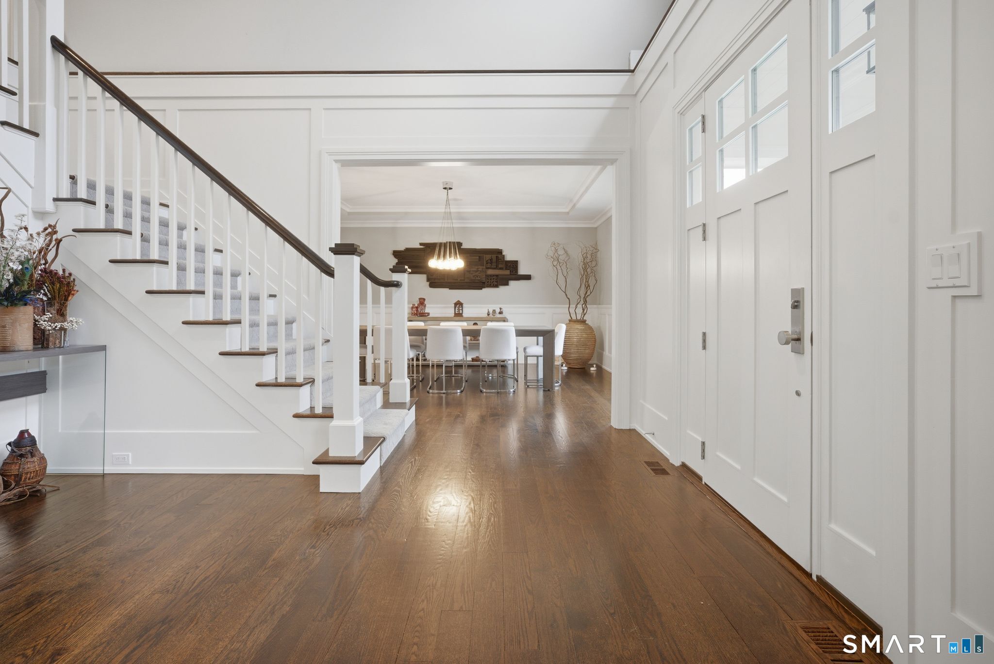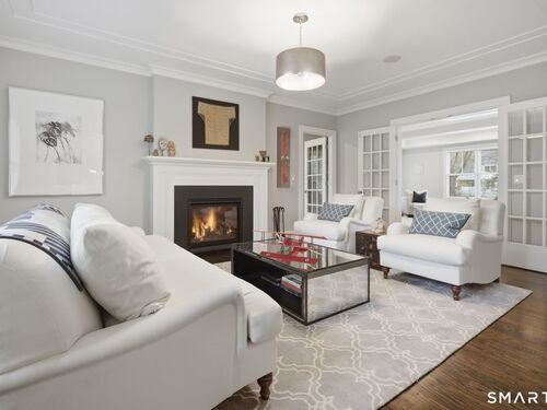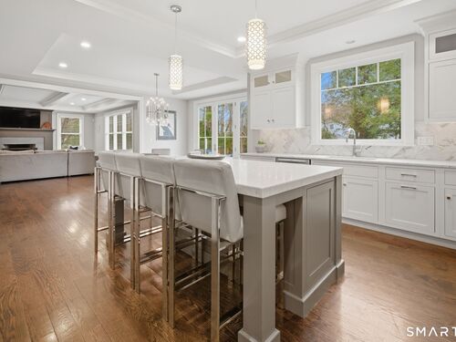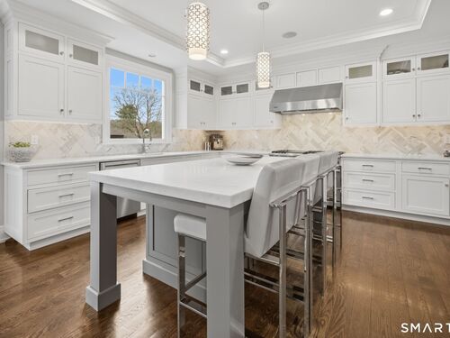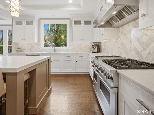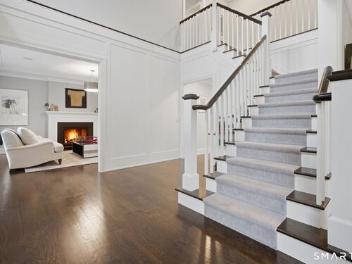 Majestically sited behind a classic stone wall and fence on 1.16 dry flat acres, this exceptional 6-bedroom, 5.2-bath residence offers the perfect blend of elegance, comfort, and modern living. Designed by noted local architect William A. Achilles, the home showcases a dramatic open floor plan filled with natural light and refined architectural detail across three beautifully finished levels. At the heart of the home is a stunning chef's kitchen featuring state-of-the-art appliances, custom cabinetry, and generous gathering spaces ideal for entertaining and everyday living. A private study provides the perfect work-from-home retreat, while the luxurious primary suite offers a serene escape with a spa-like bath and abundant closet space. There are 4 additional Bedrooms on the 2nd floor. The Lower level boasts a legal 6th bedroom and bath, a gym and a perfect spot for an in-home theatre. Thoughtful craftsmanship and high-end finishes are evident throughout, complemented by a 20kw generator for peace of mind. Outdoors, enjoy your own private resort with a gunite pool, spa, and automatic cover, surrounded by expansive lawn, gorgeous patio and mature landscaping with an in-ground irrigation system-perfect for play, relaxation, and entertaining. This is a rare opportunity to enjoy timeless design, modern amenities, and exceptional space both inside and out.