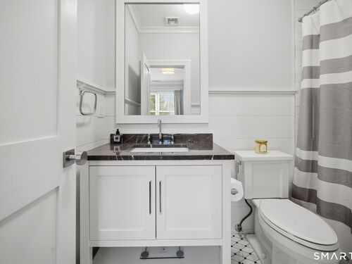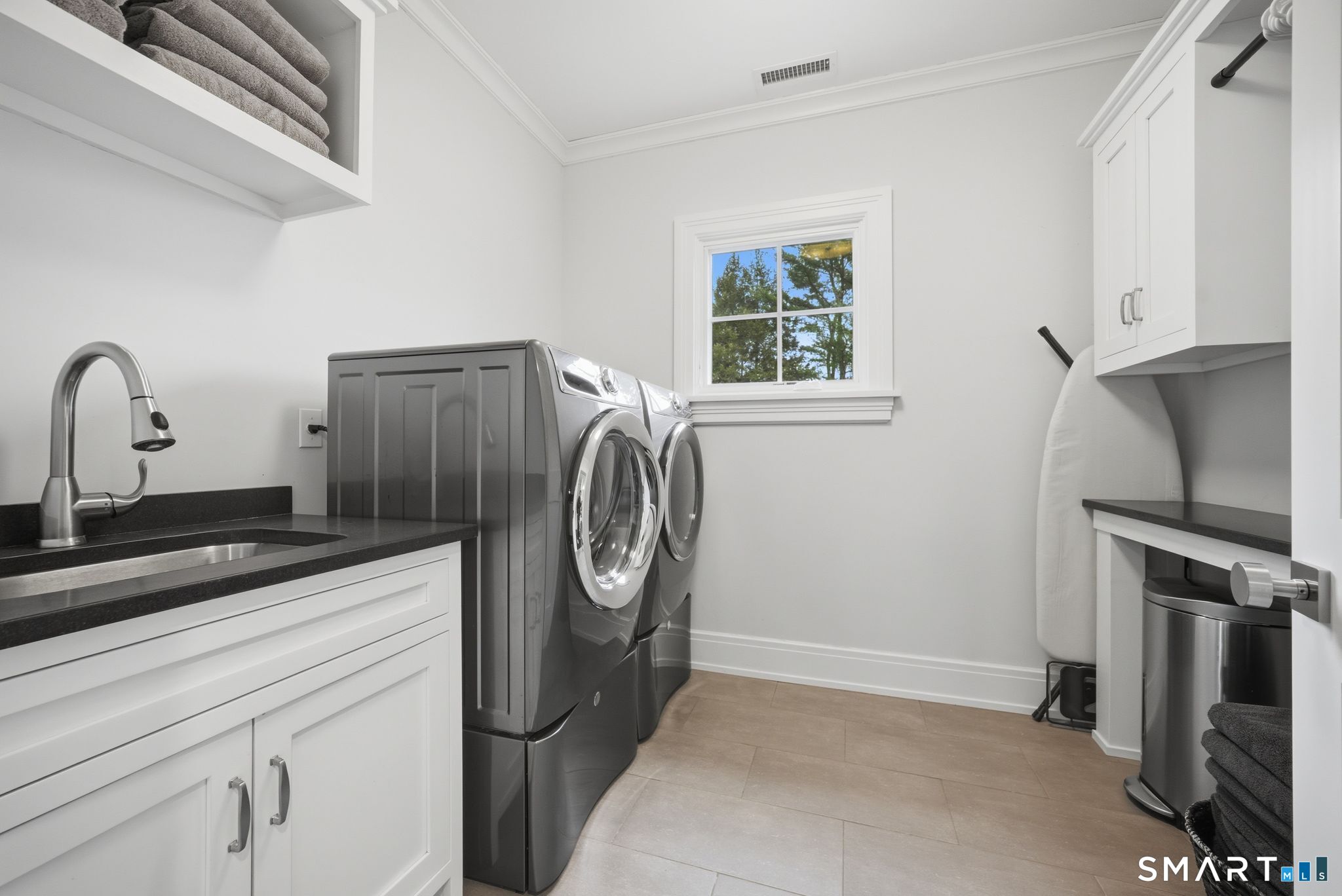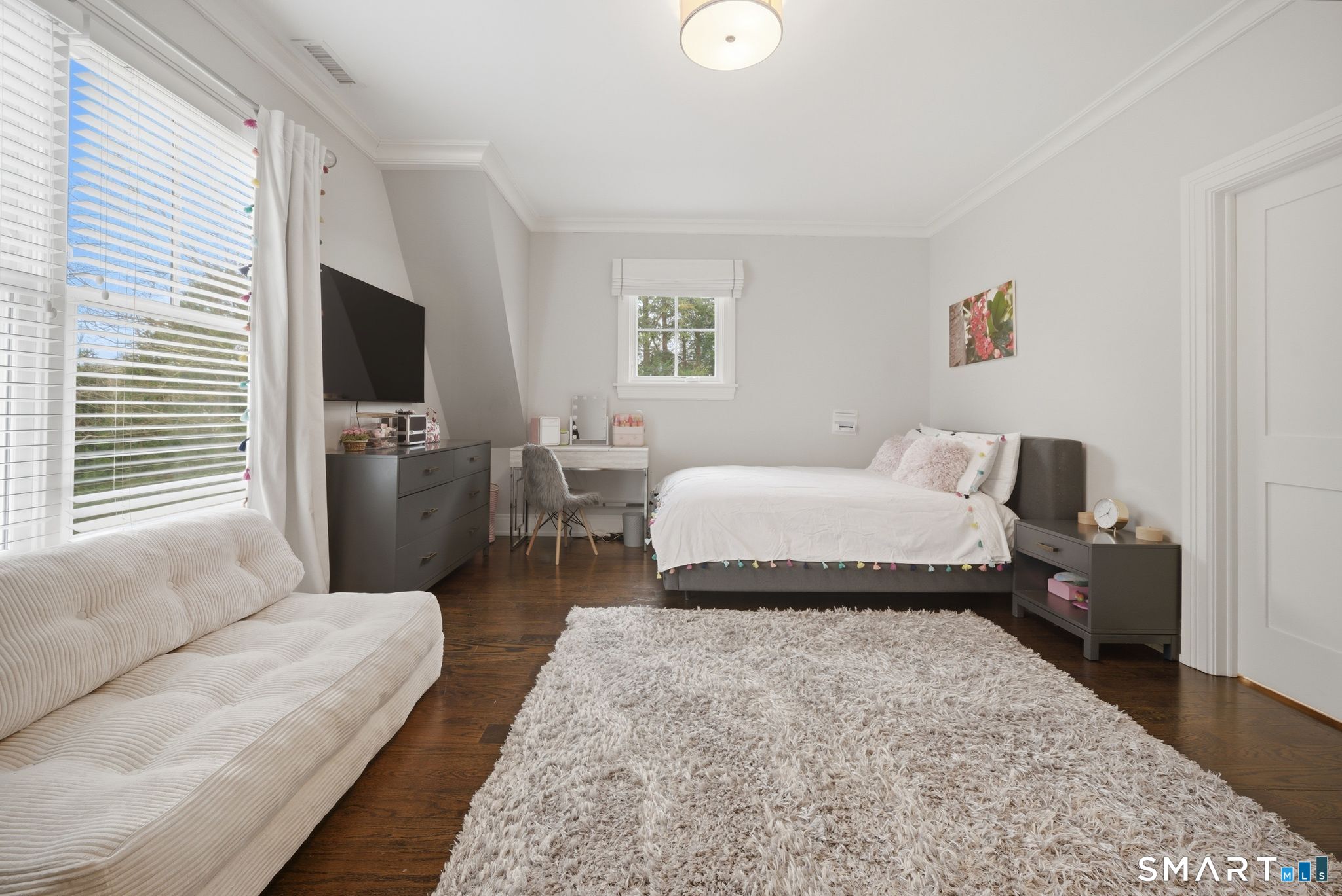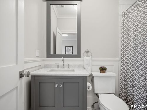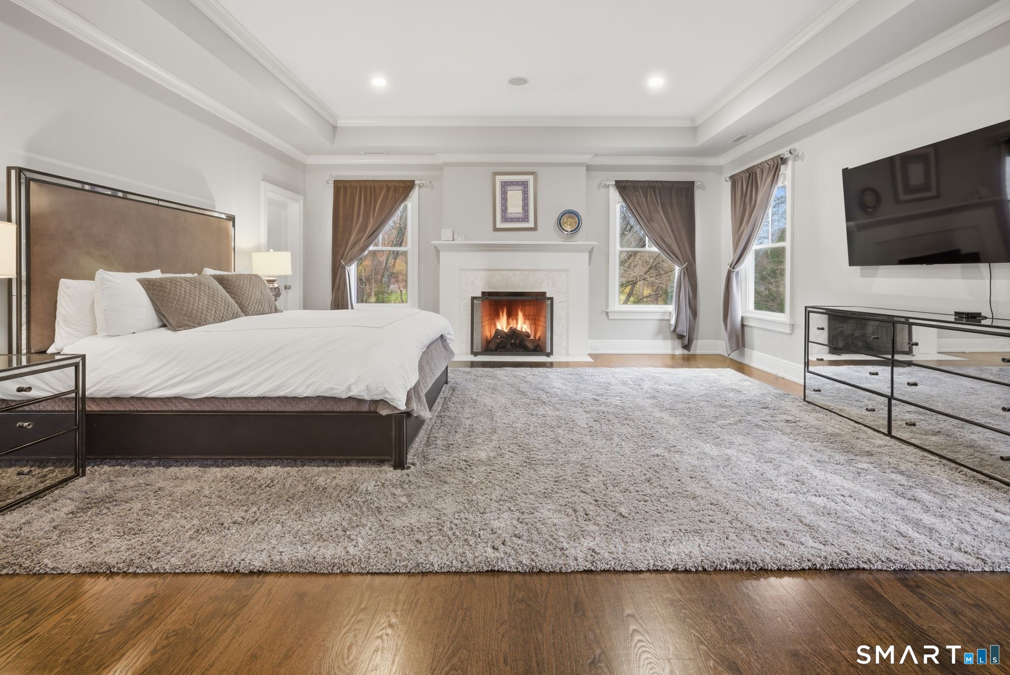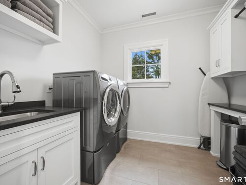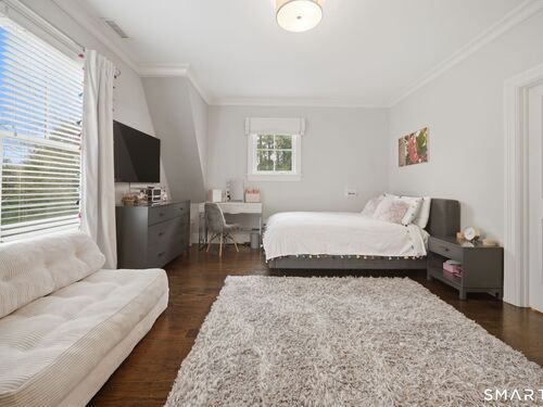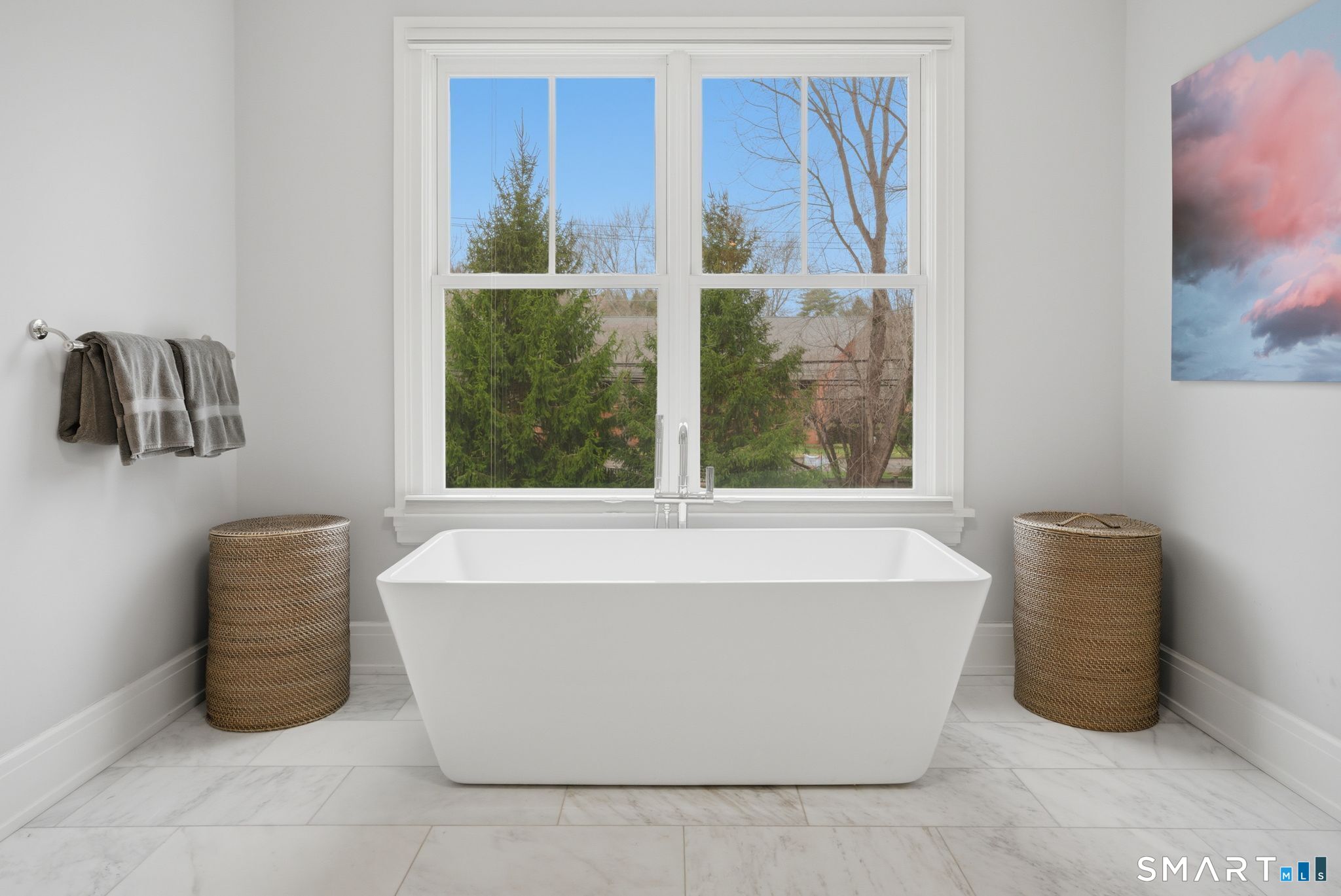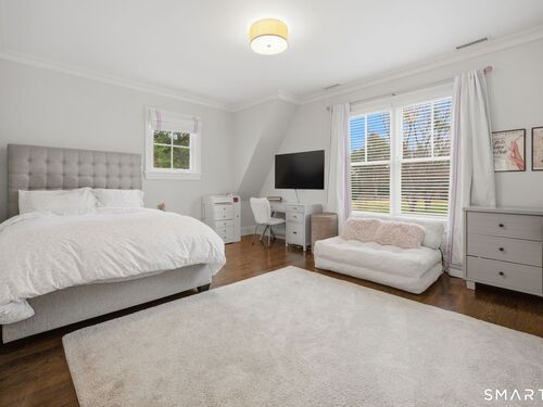 Majestically sited behind a classic stone wall and fence on 1.16 dry flat acres, this exceptional 6-bedroom, 5.2-bath residence offers the perfect blend of elegance, comfort, and modern living. Designed by noted local architect William A. Achilles, the home showcases a dramatic open floor plan filled with natural light and refined architectural detail across three beautifully finished levels. At the heart of the home is a stunning chef's kitchen featuring state-of-the-art appliances, custom cabinetry, and generous gathering spaces ideal for entertaining and everyday living. A private study provides the perfect work-from-home retreat, while the luxurious primary suite offers a serene escape with a spa-like bath and abundant closet space. There are 4 additional Bedrooms on the 2nd floor. The Lower level boasts a legal 6th bedroom and bath, a gym and a perfect spot for an in-home theatre. Thoughtful craftsmanship and high-end finishes are evident throughout, complemented by a 20kw generator for peace of mind. Outdoors, enjoy your own private resort with a gunite pool, spa, and automatic cover, surrounded by expansive lawn, gorgeous patio and mature landscaping with an in-ground irrigation system-perfect for play, relaxation, and entertaining. This is a rare opportunity to enjoy timeless design, modern amenities, and exceptional space both inside and out.