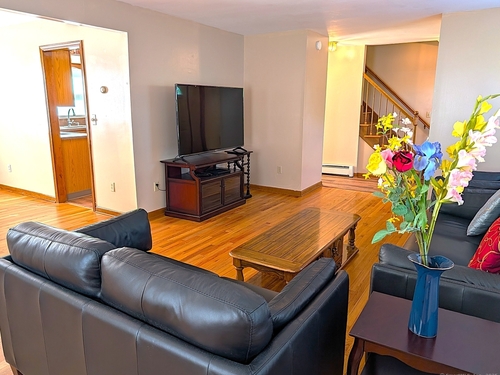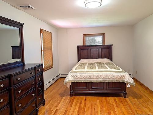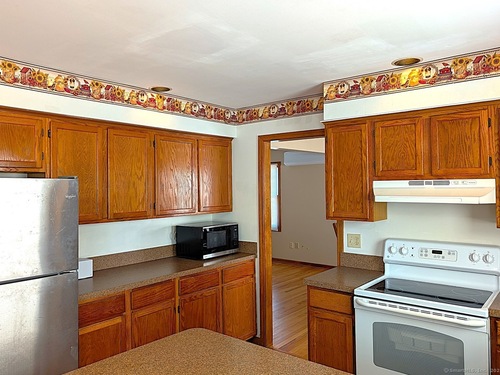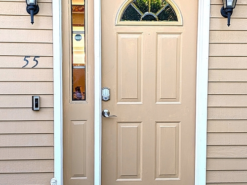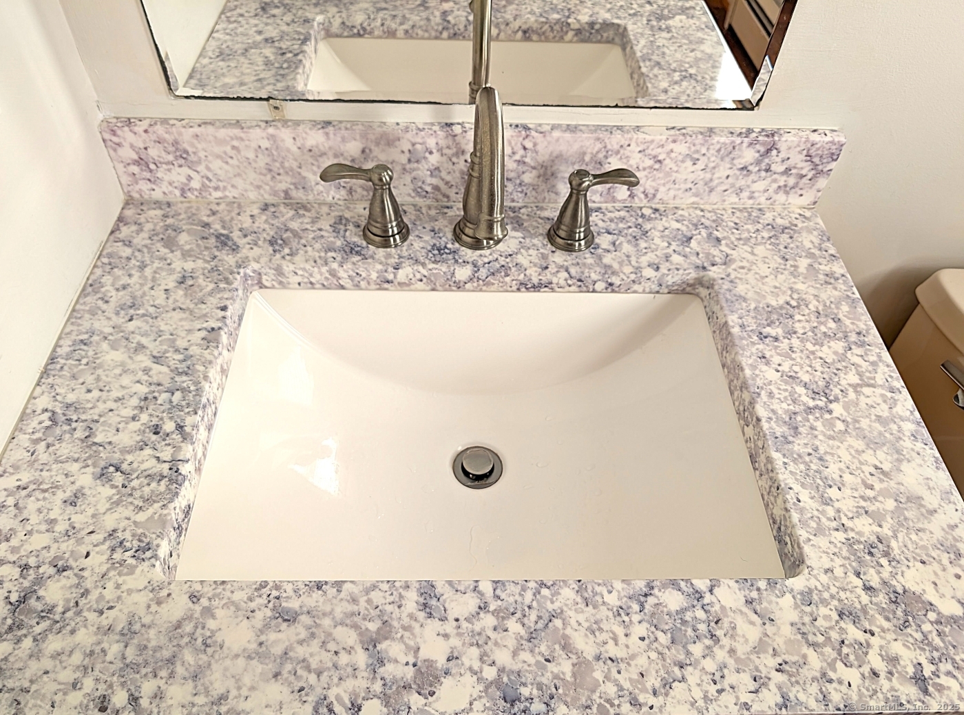 Charming and Fresh-Painted Colonial with Modern Upgrades. This freshly painted colonial home boasts 4 spacious bedrooms, 3.5 baths, a brand-new HVAC system, and a wood-burning fireplace. With 2268 sq ft of living space plus a 520 sq ft finished basement, it includes a large deck, an office or in-law suite and a tall 2-car garage. Built in 1987 on a 0.24-acre lot, this home is in a well-established neighborhood, just minutes' walk to Brooklawn Golf Club, Fairfield Warde High School, and Tunxis Hill Pickleball Courts. Close to I-95 and CT-15, within 11 minutes. Main level: Living room, kitchen, eat-in kitchen, formal dining room, laundry room, half bath, and a family room with a cozy fireplace that opens to a large deck with pretty views. The main entrance has a Ring doorbell and a Schlage electronic lock for enhanced security. Upper level: Master suite with an en-suite bath and walk-in closet, plus three bedrooms, a shared full bath, and multiple closets. Red oak hardwood floors add warmth and elegance throughout. Lower level: Walk-out basement to the backyard with an in-law suite or a private home office, brand-new water- and life-proof luxury vinyl plank flooring, and a sizable two-car garage with remote openers and entry keypads. Access: Use 42 Fairway Green for cul-de-sac and garage access; use 55 Knapps Highway for utilities and service entry.