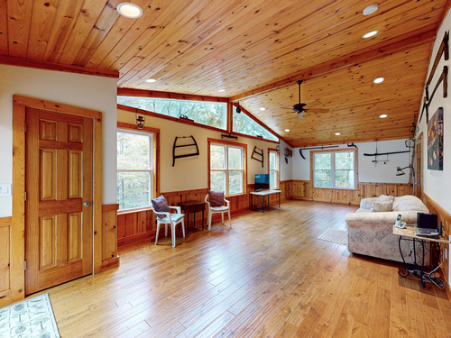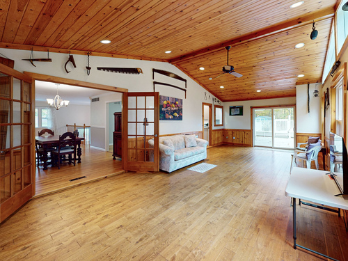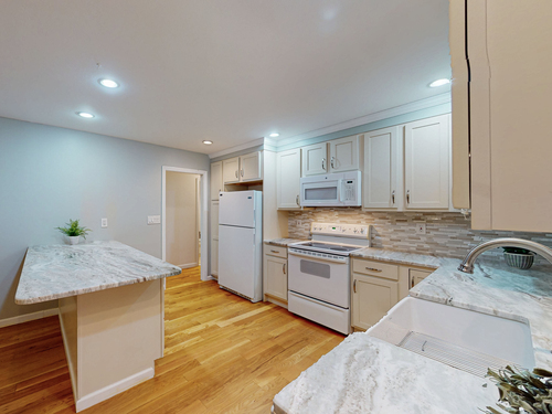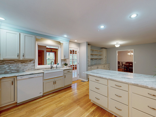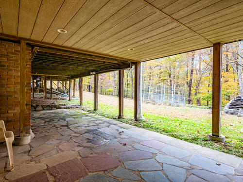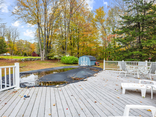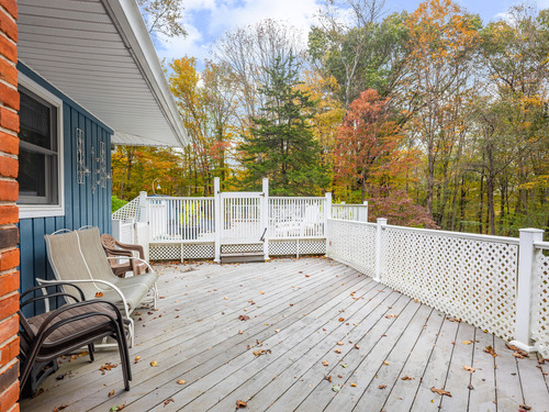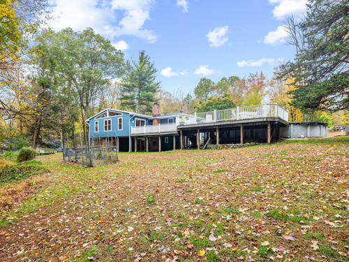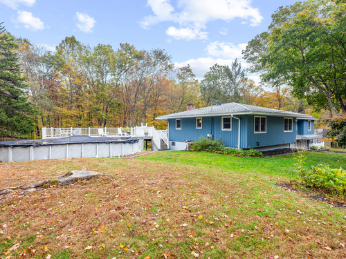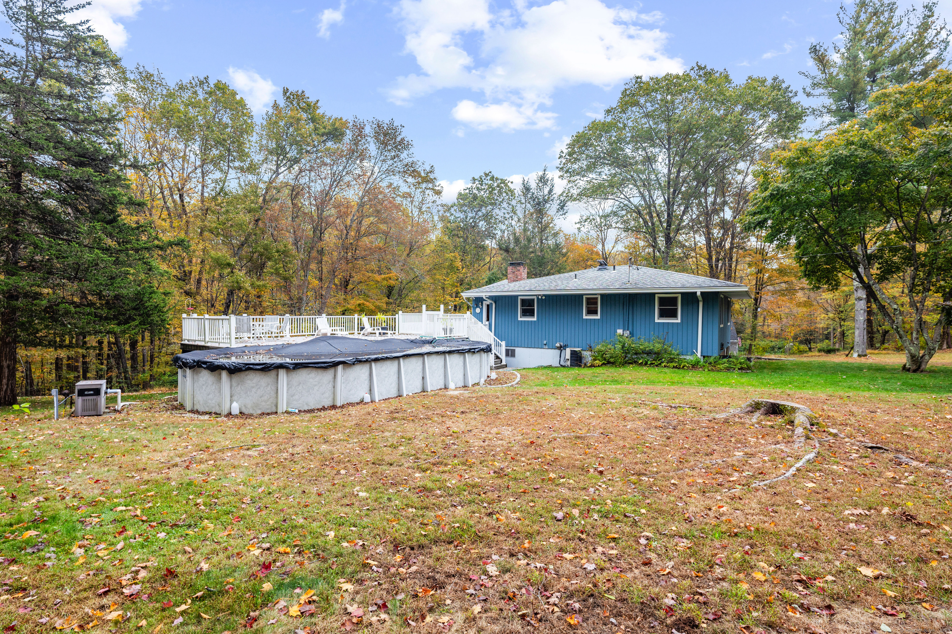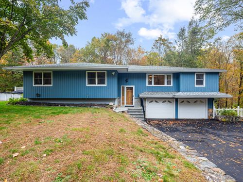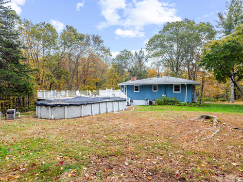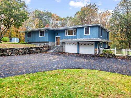A private Brookfield retreat of style and serenity set on 2.8 private acres. This stunning 4-bedroom, 4-bath raised ranch offers a perfect blend of elegance, comfort and modern living. A brand-new driveway framed by stone pillars and extensive stone walls leads to this updated home, complete with a 2-car garage and a heated above-ground pool surrounded by a wrap-around composite deck, ideal for entertaining in style. Step inside to discover an open-concept main level with gleaming hardwood floors, crown moldings, central air, and efficient oil heat. The designer kitchen features a farmhouse sink, granite center island with breakfast bar, neutral mosaic backsplash, built-in hutch with bookshelves, and generous dining space. The sun-filled living and formal dining rooms flow seamlessly into a rustic vaulted sunroom with wood ceilings and access to the deck and pool. The primary suite boasts double closets with a spa-inspired bath featuring heated tile floors and a custom tile shower. Three additional bedrooms and two full baths complete the main level. The lower level offers a spacious tiled family room with built-in wet bar, spacious bonus room and full bath with heated floors and towel bar, ideal for guests or extended family. Meticulously maintained with newer windows, shed and sprawling lawn. This exceptional property combines many recent updates, tranquility and privacy, in one remarkable home. Convenient location close to schools, shopping, restaurants and town center.