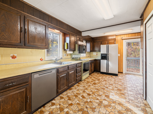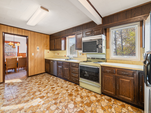 Welcome to 46 South King Street, a charming Cape-style home full of character and original mid-century details. Built in 1941, this five-bedroom, two-full bath residence offers warmth and timeless appeal. With its classic wood paneling, built-ins, and large stone fireplace, this home is a nostalgic nod to an earlier era - perfect for those who appreciate vintage New England craftsmanship. The home features gabled dormers, vinyl siding exterior, an asphalt shingle roof in good condition, as well as updated 200 amp service, hard wiring for a generator, and a new fuel tank. The home's flexible layout, with bedrooms on both the main level and upstairs, is suitable for a multitude of uses including entertaining guests, as a home office, or for multi-generational living. Located on Danbury's West Side, this home is close to schools, shopping, recreation, and easy access to I-84, Route 7, and MetroNorth. Whether you choose to preserve its vintage charm or modernize the space, 46 South King Street offers tremendous potential for those seeking a home with history and heart.